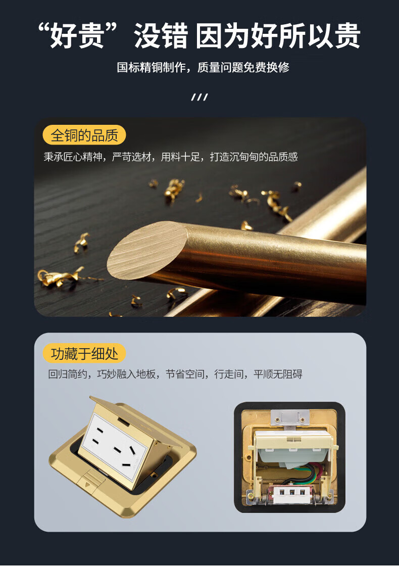 国际电工慢弹式工地插插座隐藏式隐形全铜防水超薄地面盖板五孔网络地插座 五孔【慢弹式】全铜阻尼