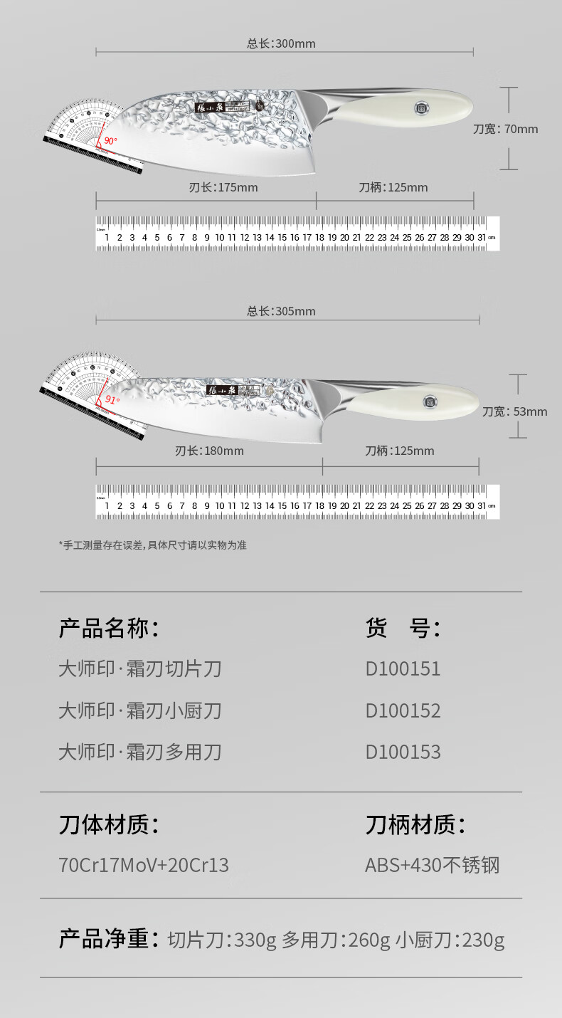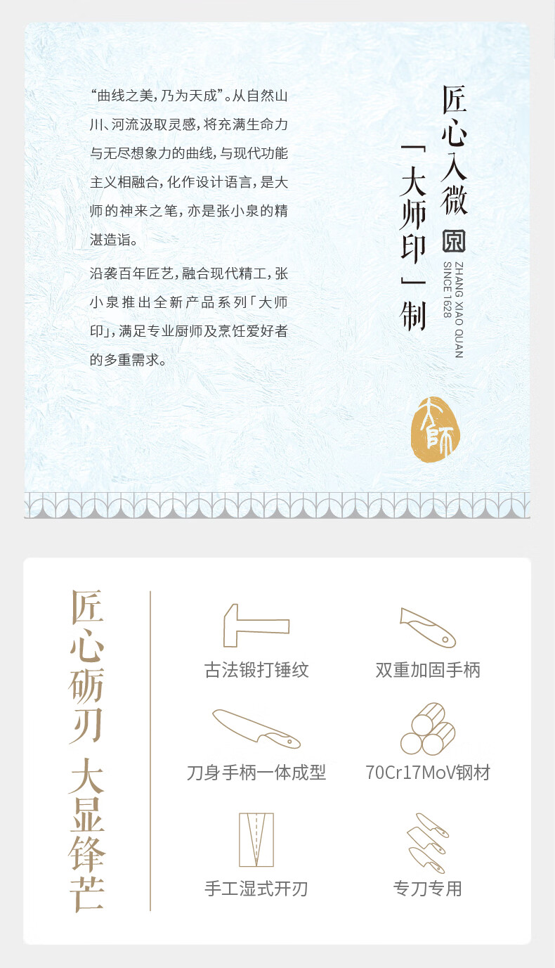 张小泉大师印·霜刃家用不锈钢切片刀 刀具 菜刀 厨师刀 D100151