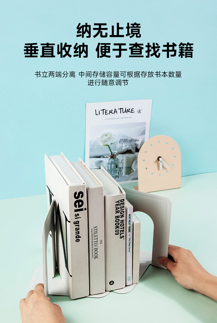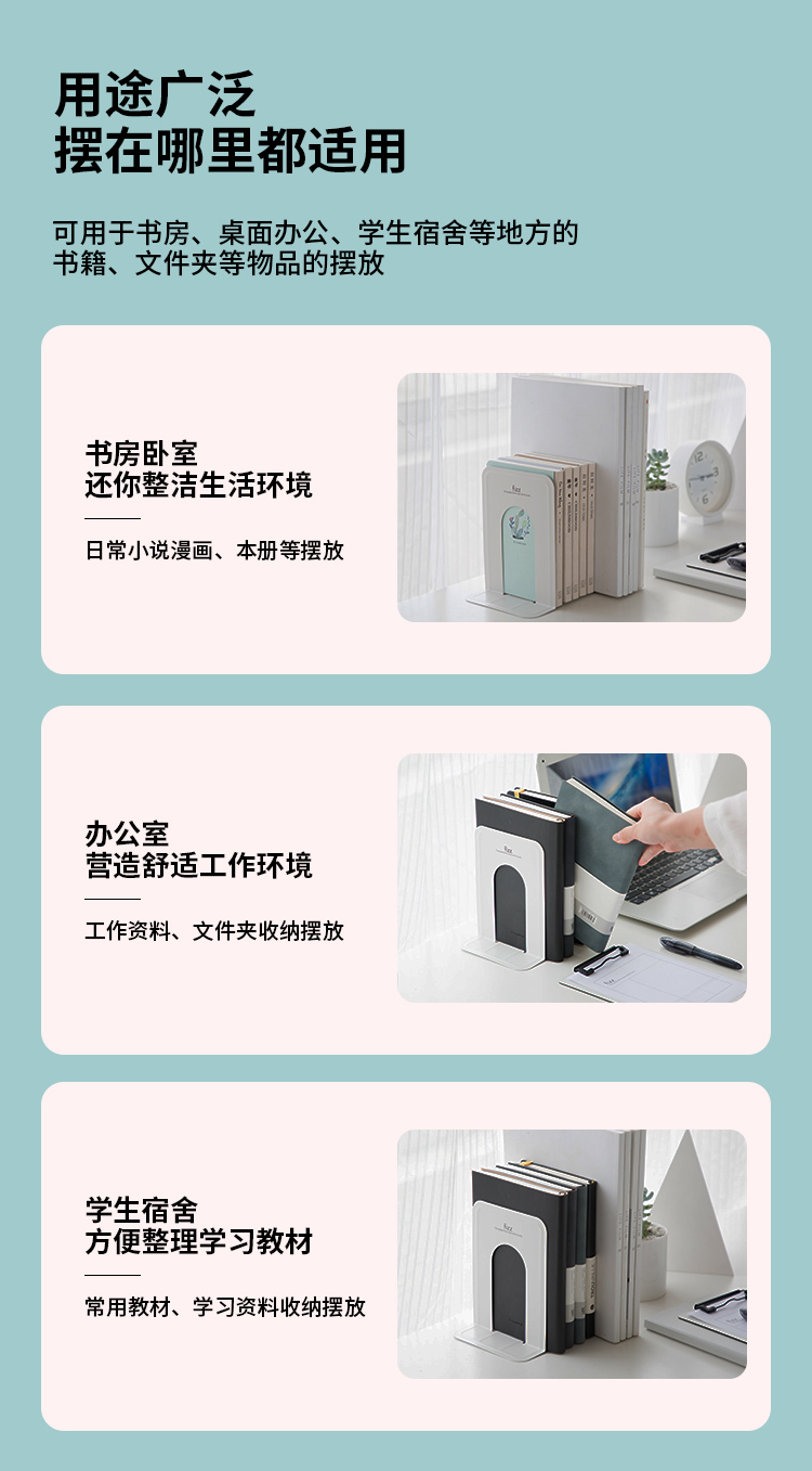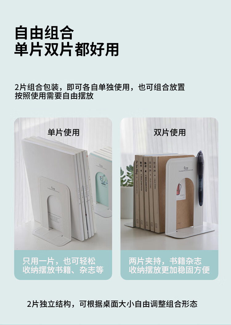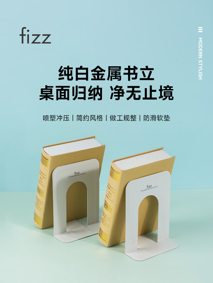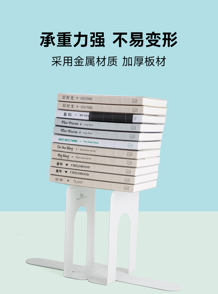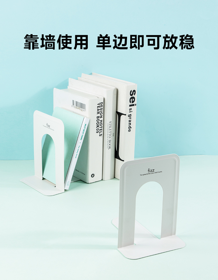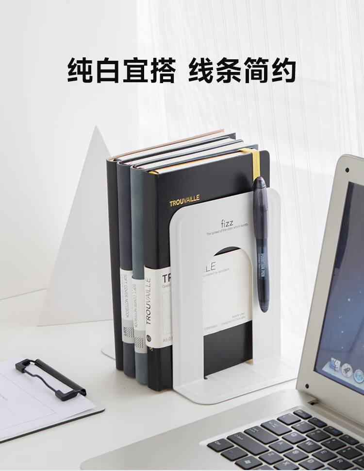 飞兹(fizz)高17.8cm金属铁书立架置物架书收纳桌上隔板书挡书靠板2片/付办公用品/学生文具 白色WZ5960