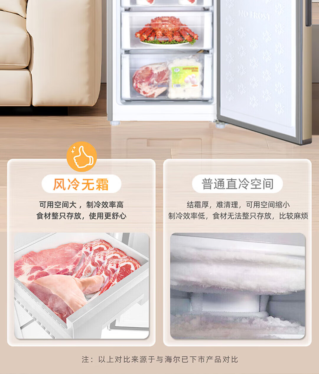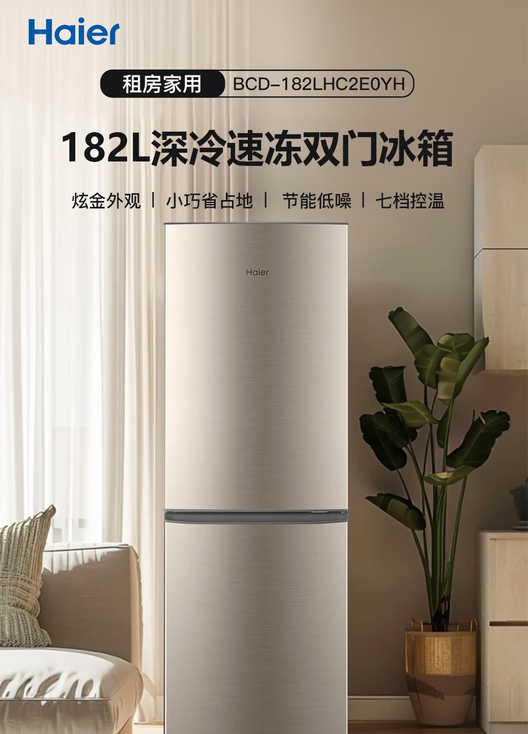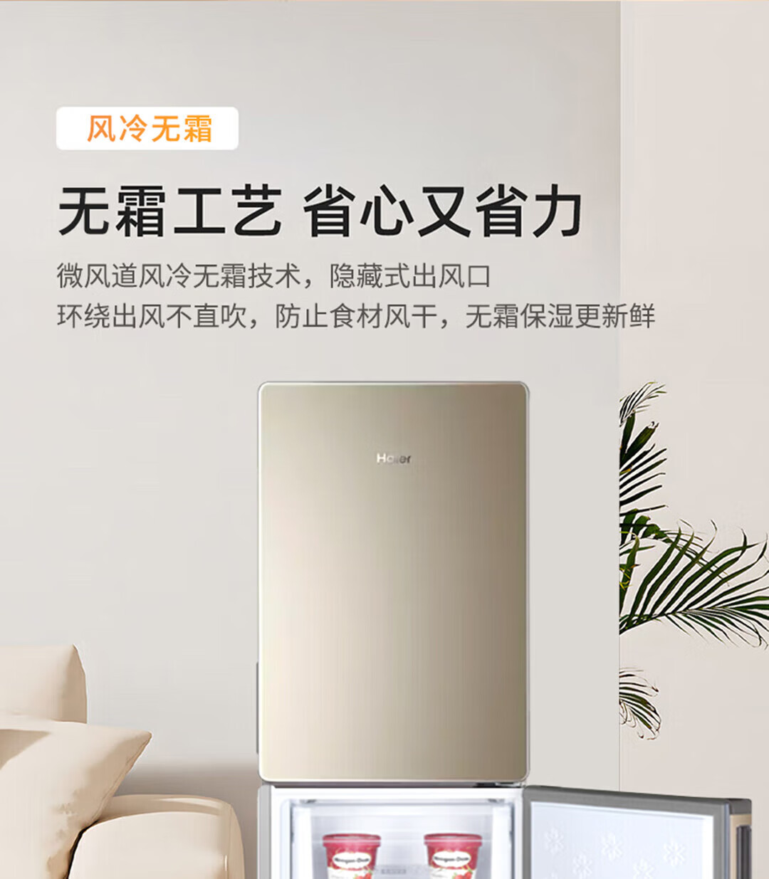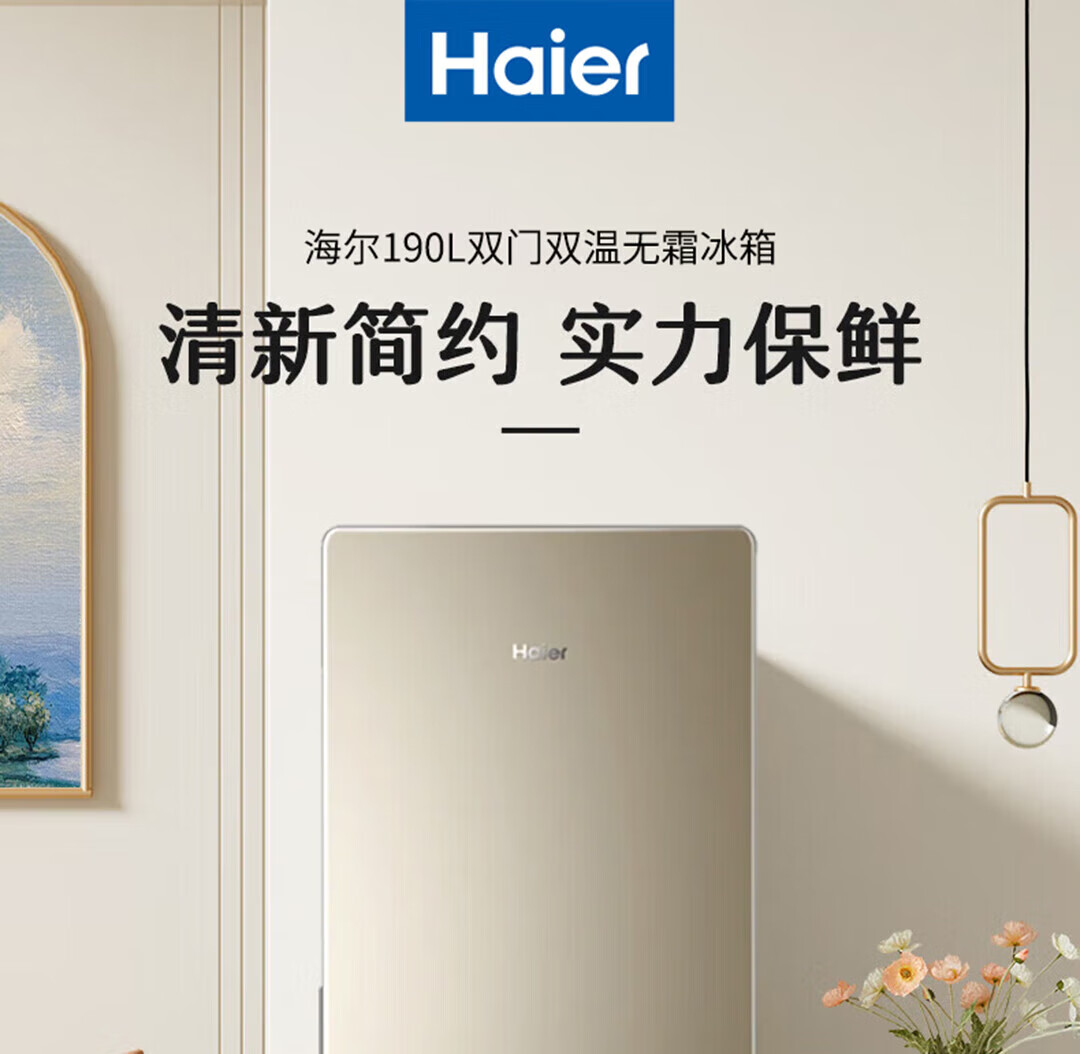 海尔(Haier)冰箱小型双门风冷无霜冷藏冷冻租房公寓家用迷你节能省二门两门 国家补贴换新BCD-190WDPT 【风冷无霜】190升+DEO净味+双门双温