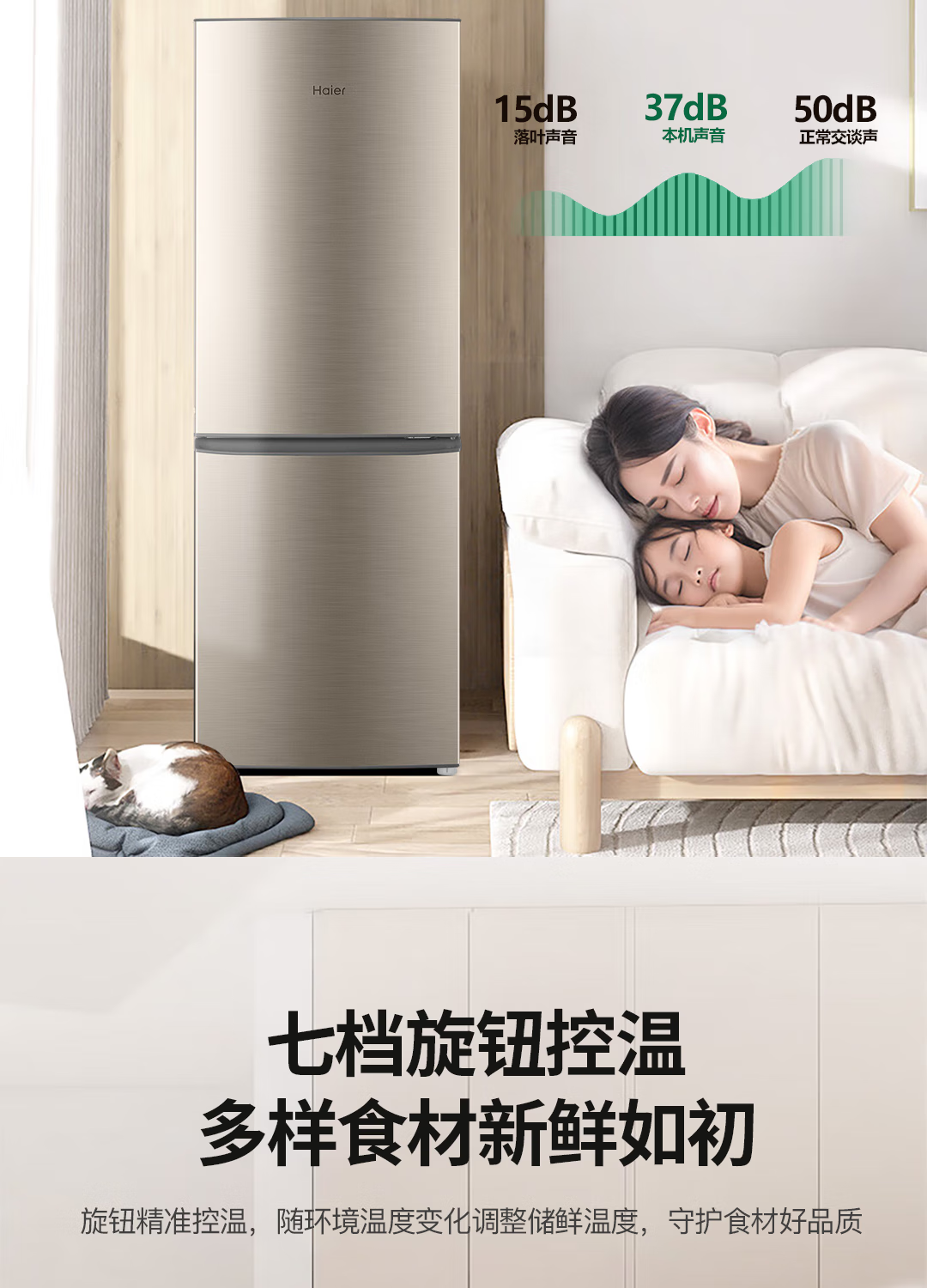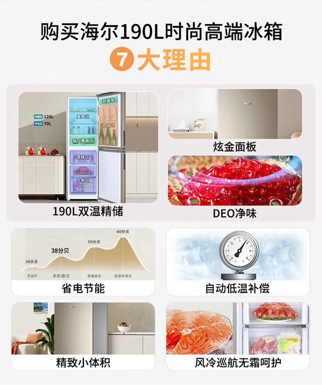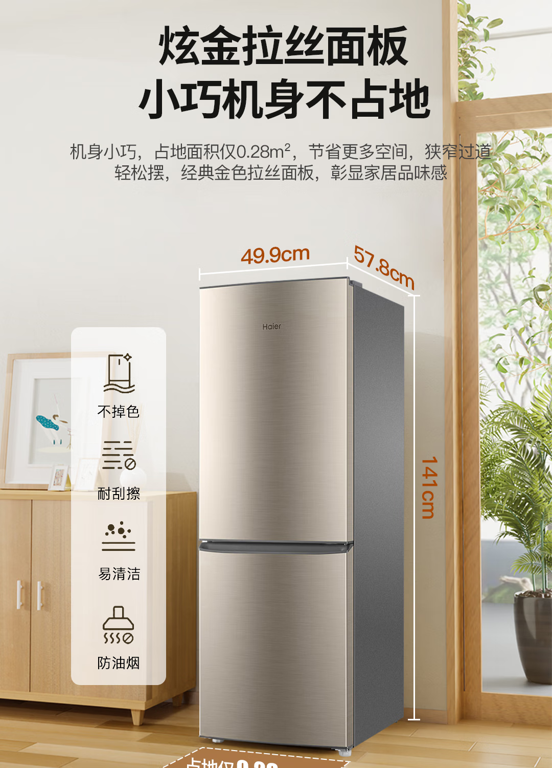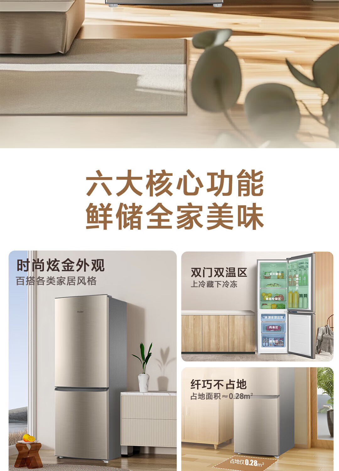 海尔(Haier)冰箱小型双门风冷无霜冷藏冷冻租房公寓家用迷你节能省二门两门 国家补贴换新BCD-190WDPT 【风冷无霜】190升+DEO净味+双门双温