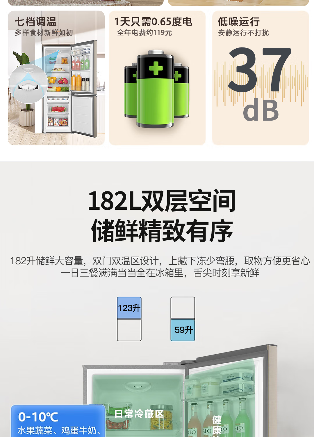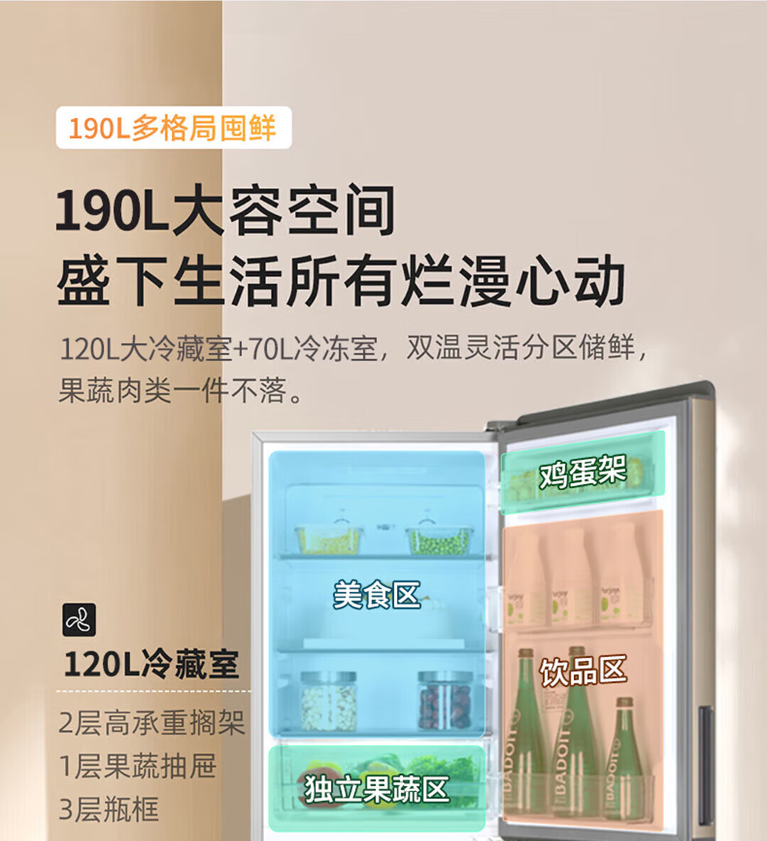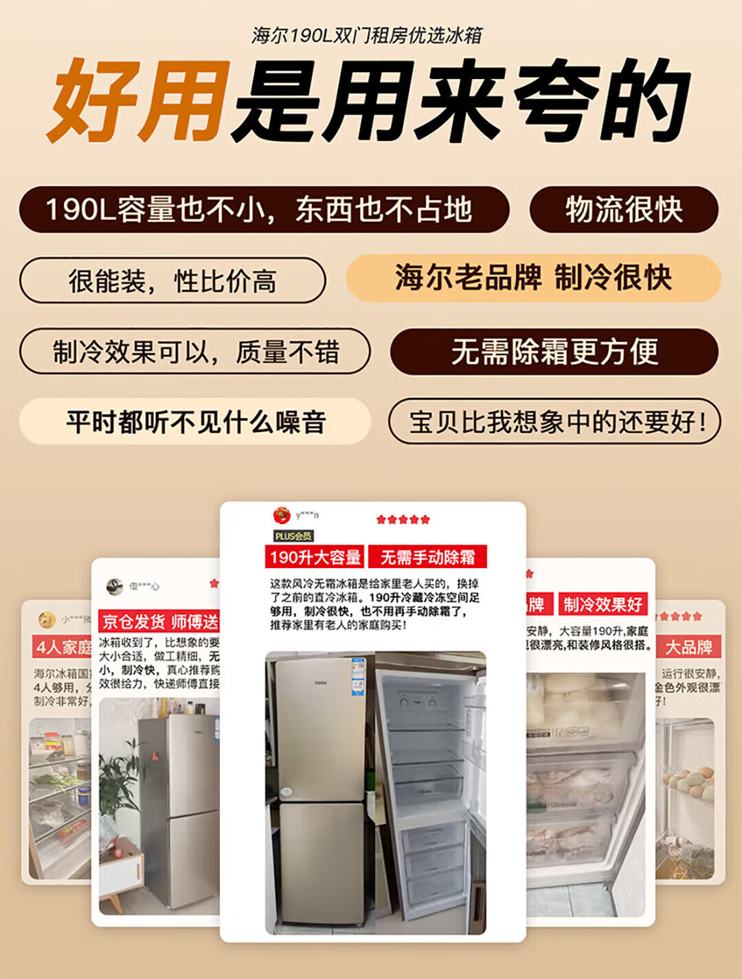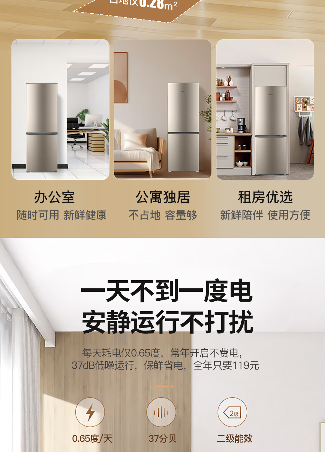 海尔(Haier)冰箱小型双门风冷无霜冷藏冷冻租房公寓家用迷你节能省二门两门 国家补贴换新BCD-190WDPT 【风冷无霜】190升+DEO净味+双门双温