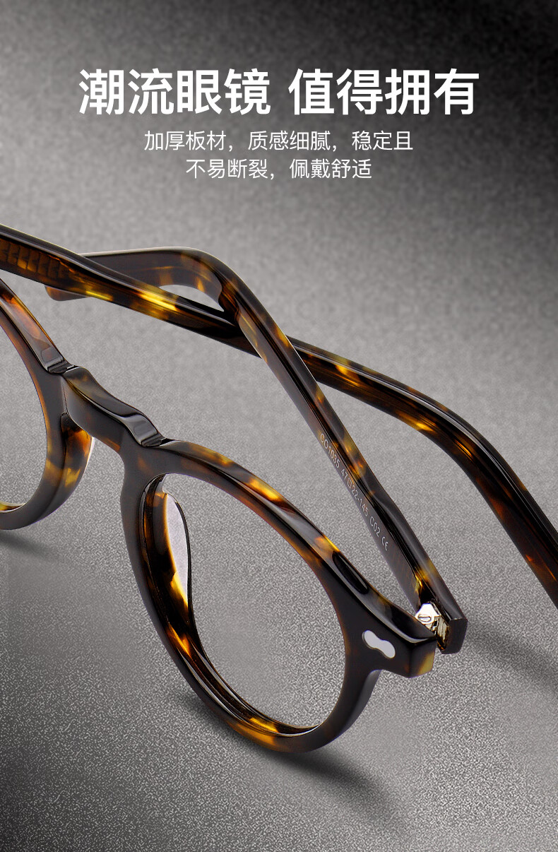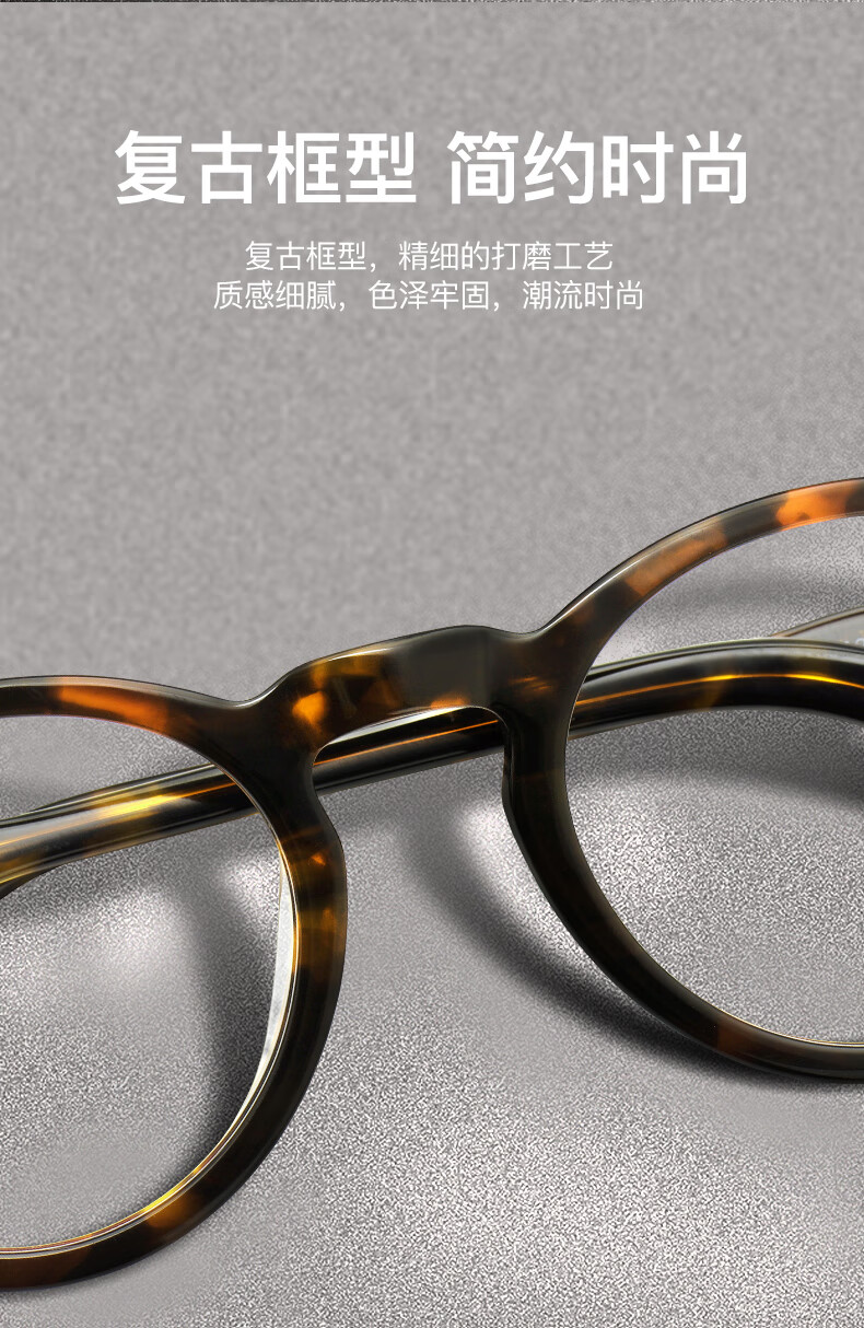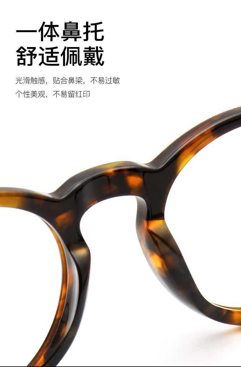 目匠复古豹纹板材近视眼镜框男款小框日系圆框眼镜框小脸镜架女 1035 豹纹 防蓝光配镜1.74防蓝光镜片0-1000