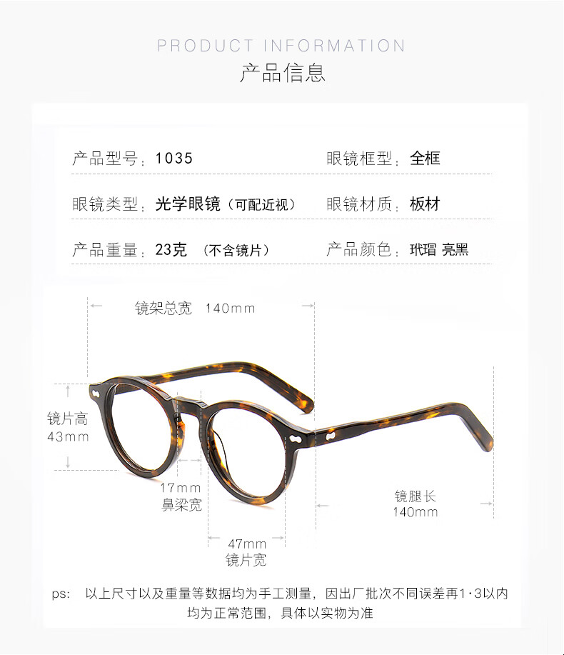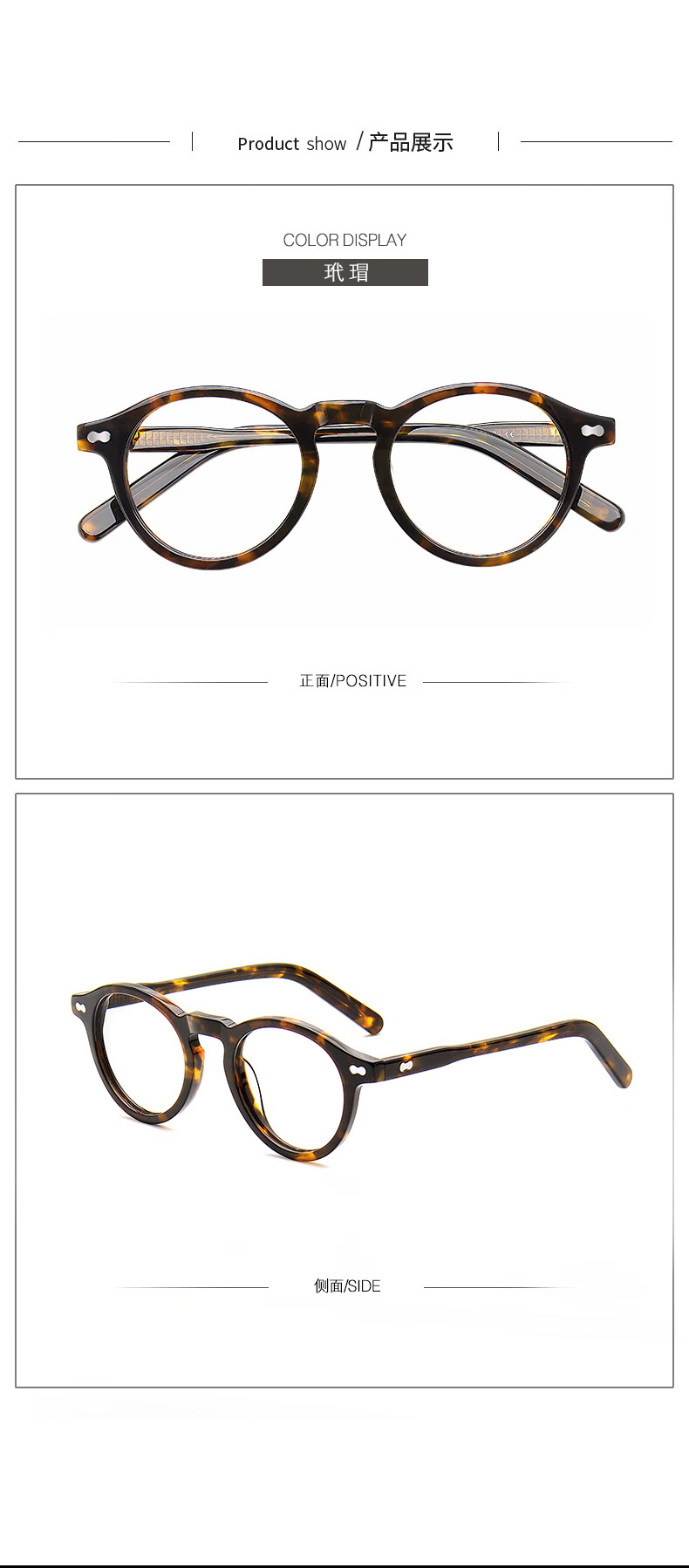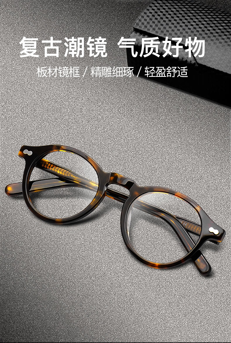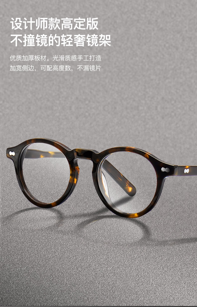 目匠复古豹纹板材近视眼镜框男款小框日系圆框眼镜框小脸镜架女 1035 豹纹 防蓝光配镜1.74防蓝光镜片0-1000