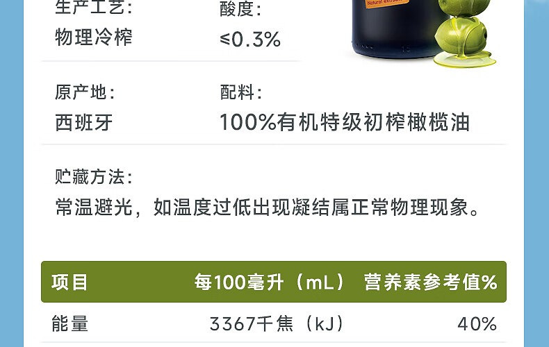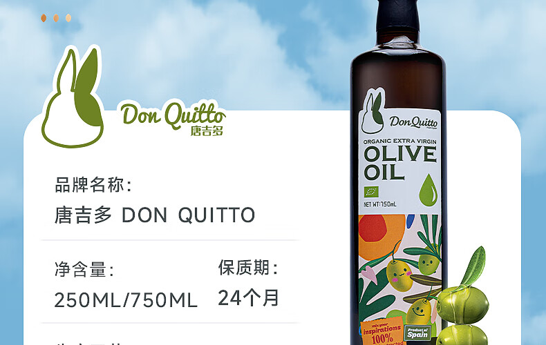 Don Quitto唐吉多有机特级初榨橄榄油高多酚低酸度西班牙原装进口非转基因 250mL效期26/9/2
