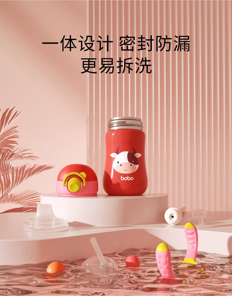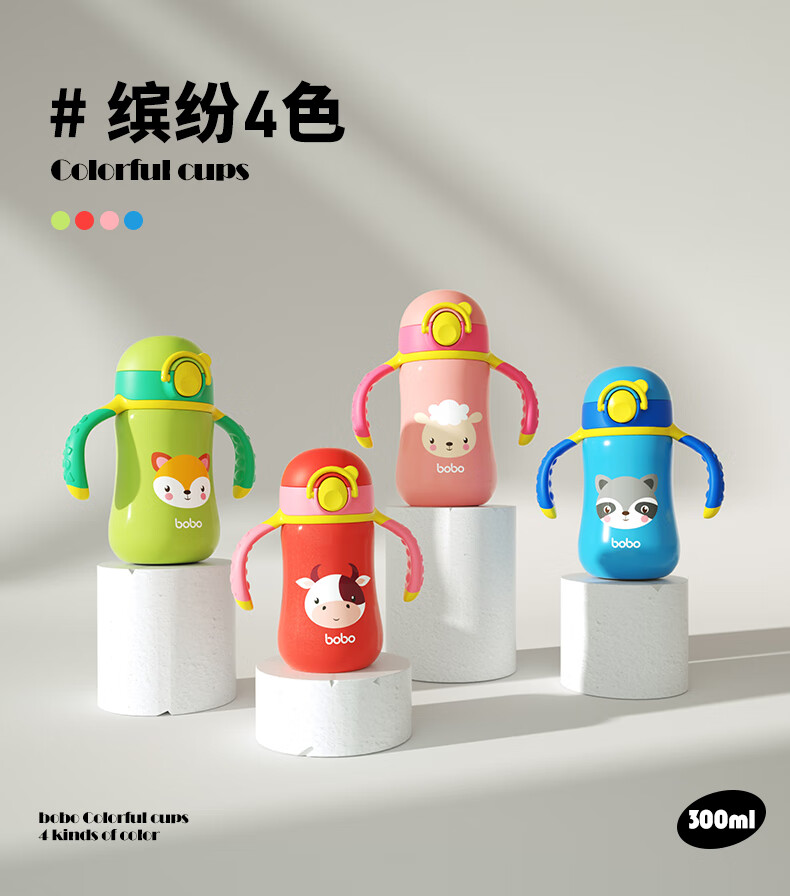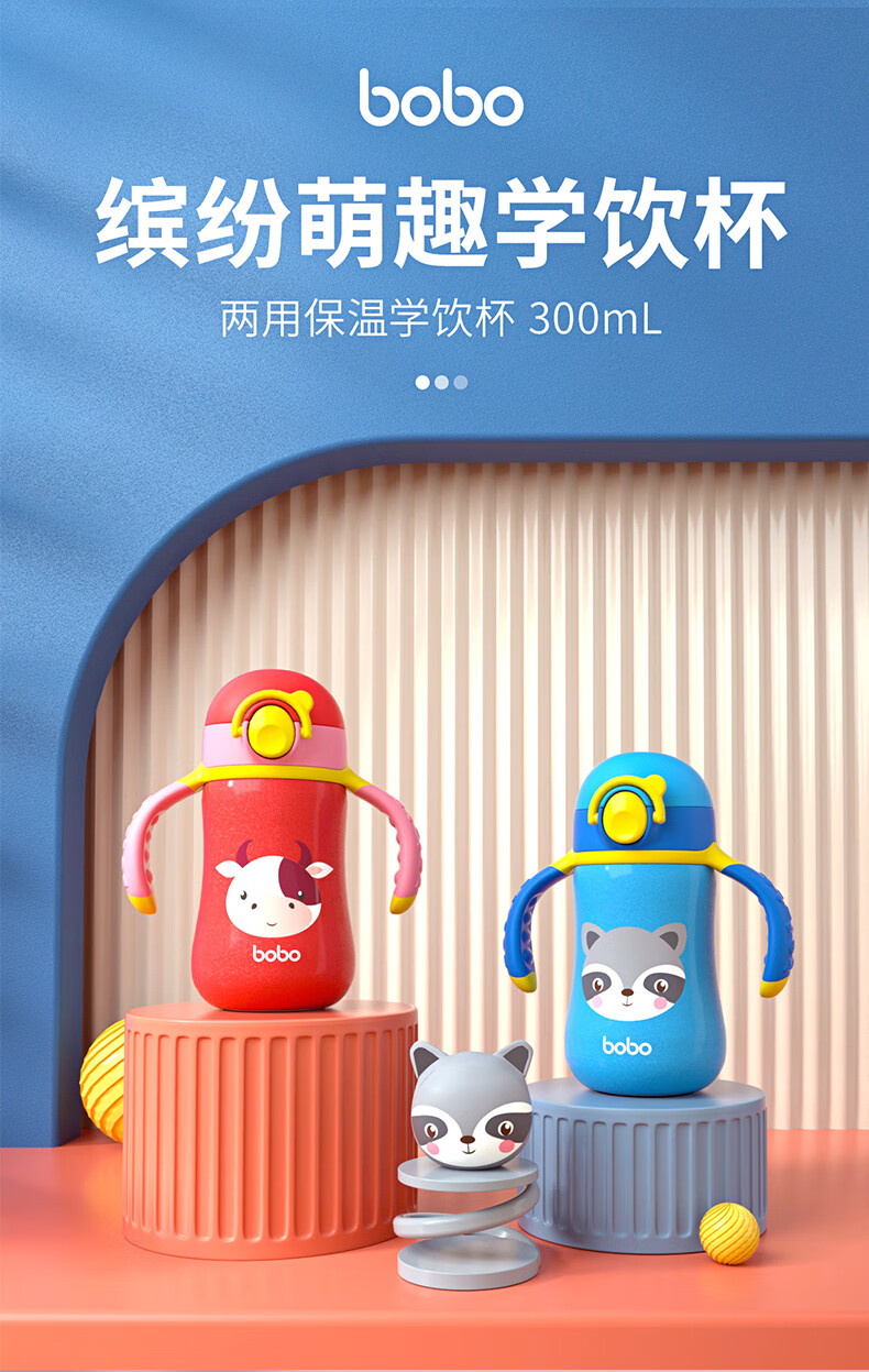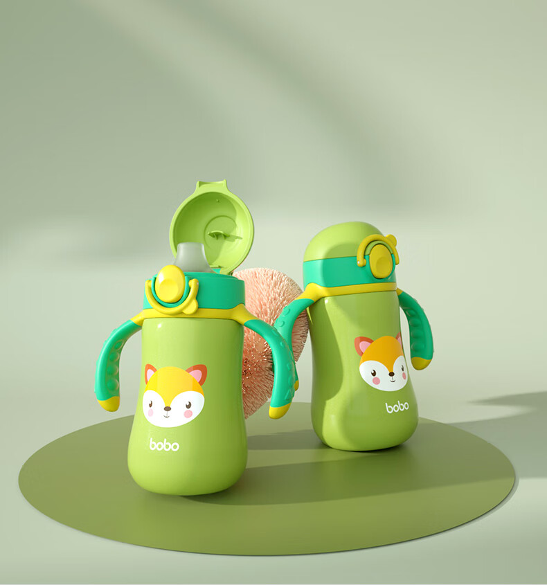 bobo儿童保温杯学饮水杯宝宝专用防呛幼儿园小学生吸管杯婴幼儿300ml 【一杯2用】绿色300ml