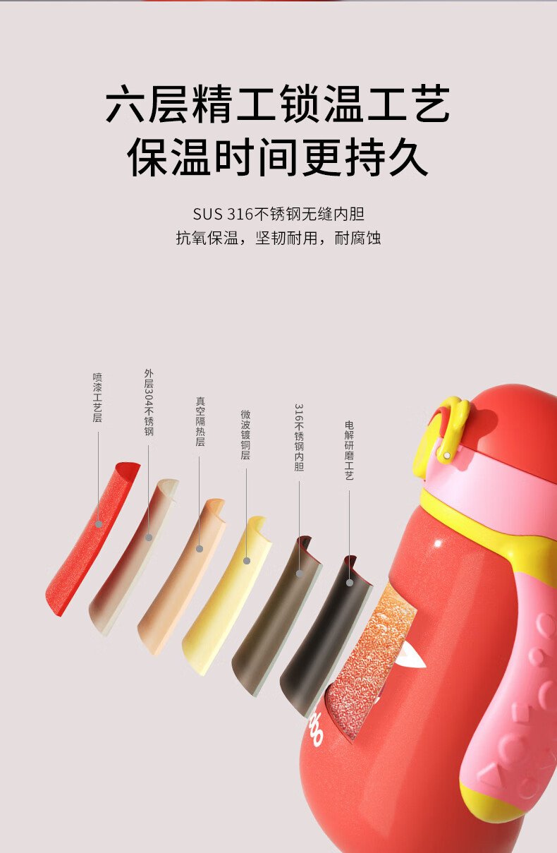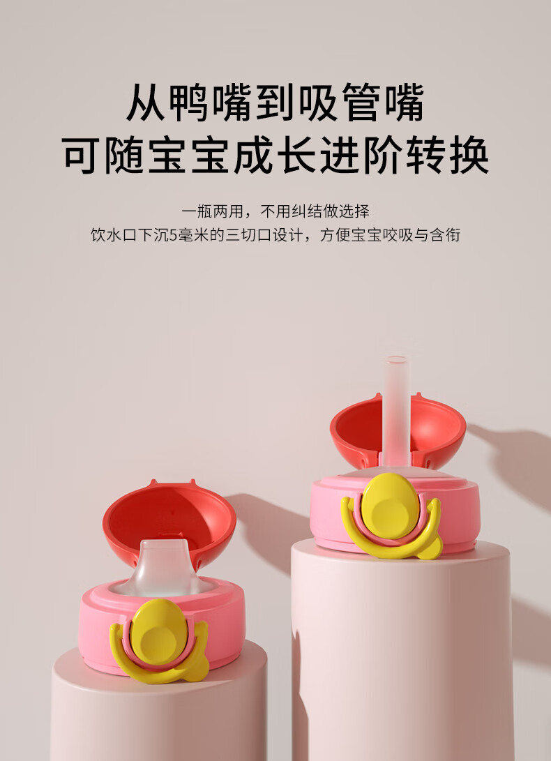 乐扣乐扣(LOCK&LOCK)儿童吸管双把手保温杯 宝宝316不锈钢学饮杯便携水杯380ml 橘粉