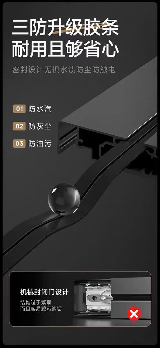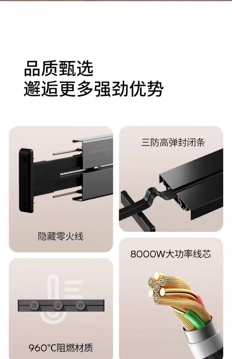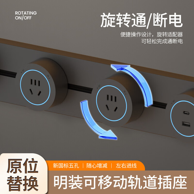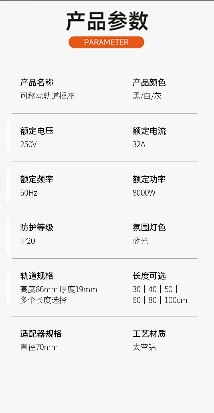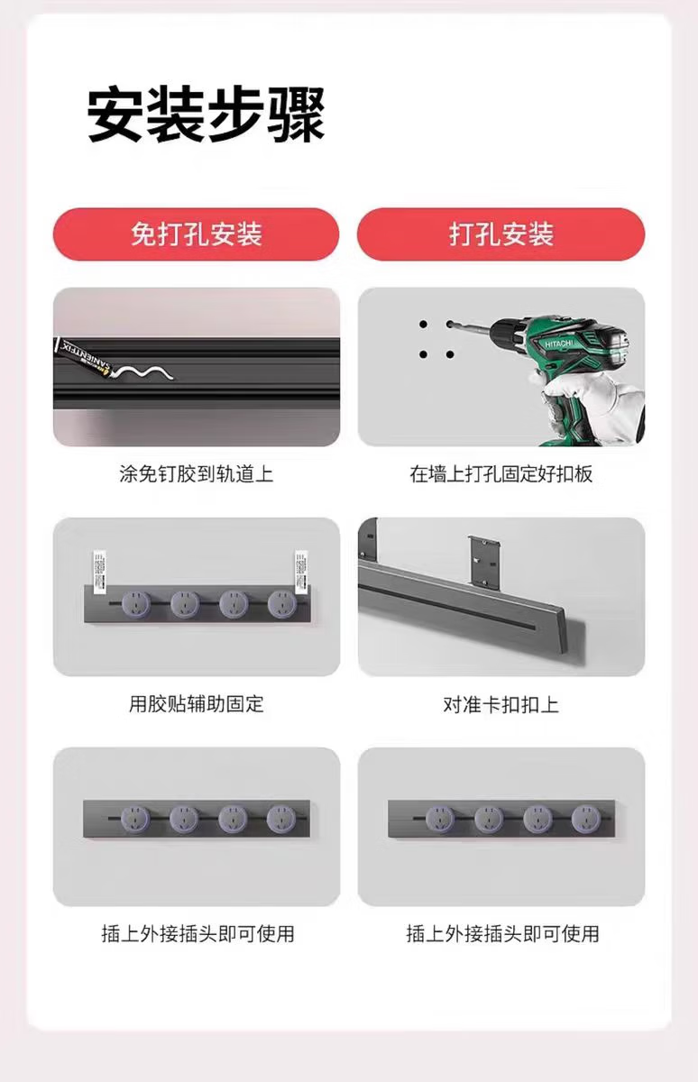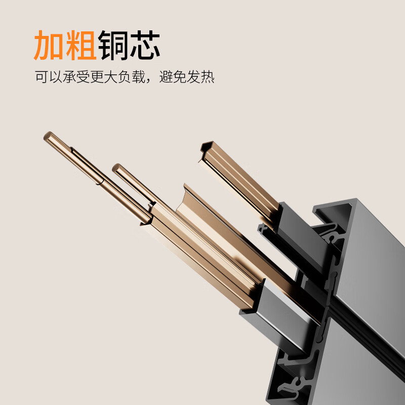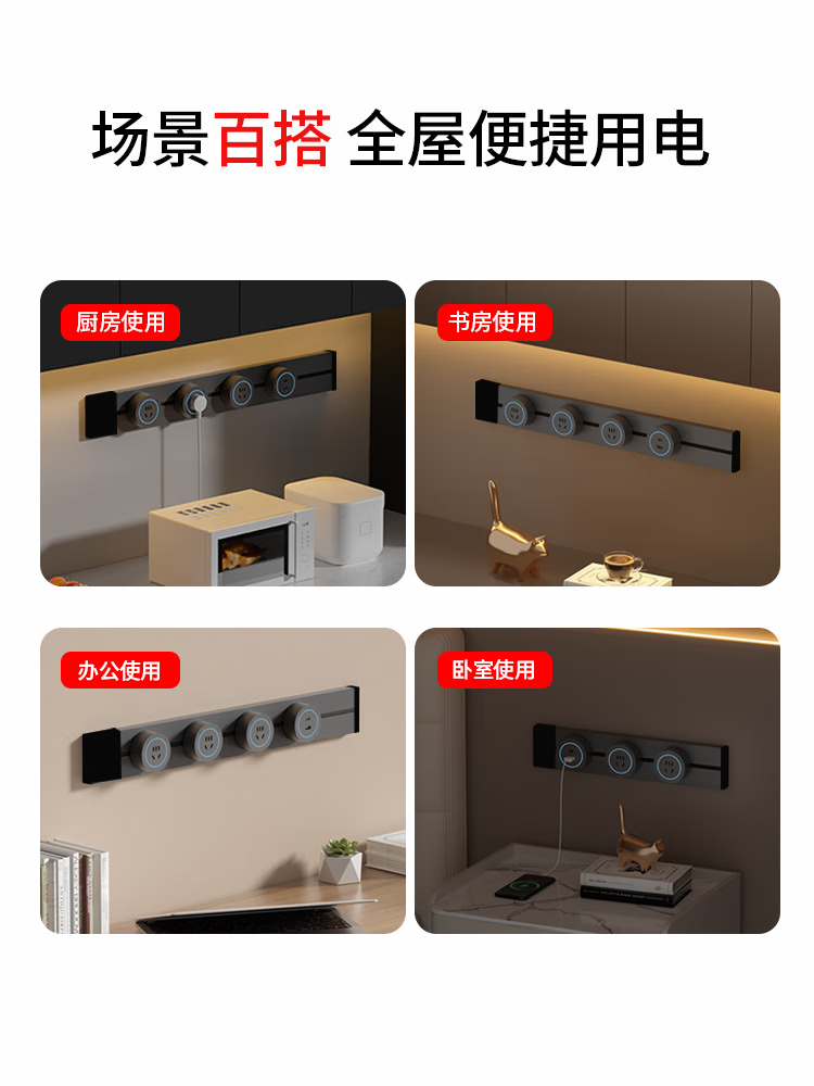 小米有品轨道插座德国品质免打孔厨房餐边柜客厅可移动电力滑盖插排插线板 黑色40公分轨道+4个五孔