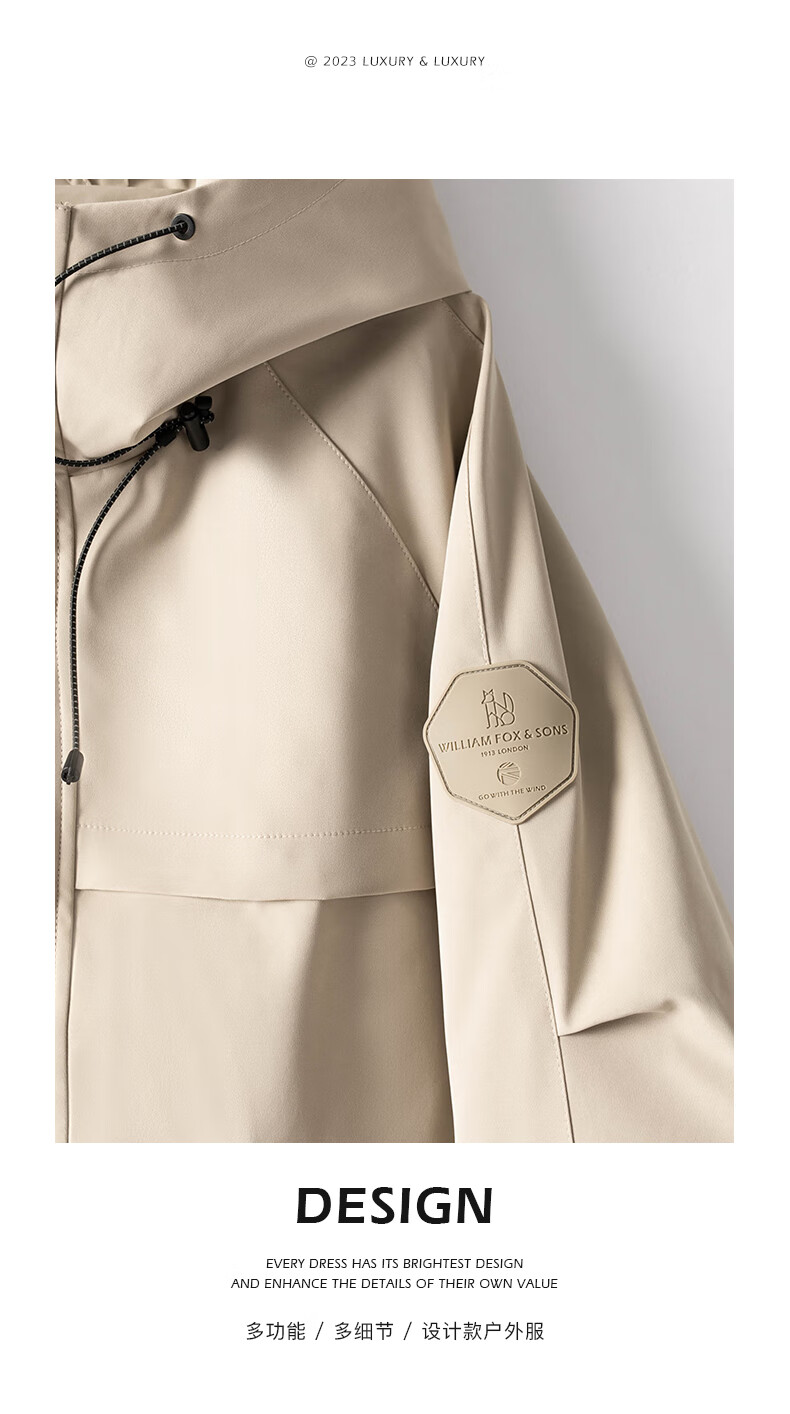 William fox&sons新型三防户外面料人体工学立体裁剪机能轻户外男女同款仿冲锋夹克 米色【户外三防科技面料】 S /46