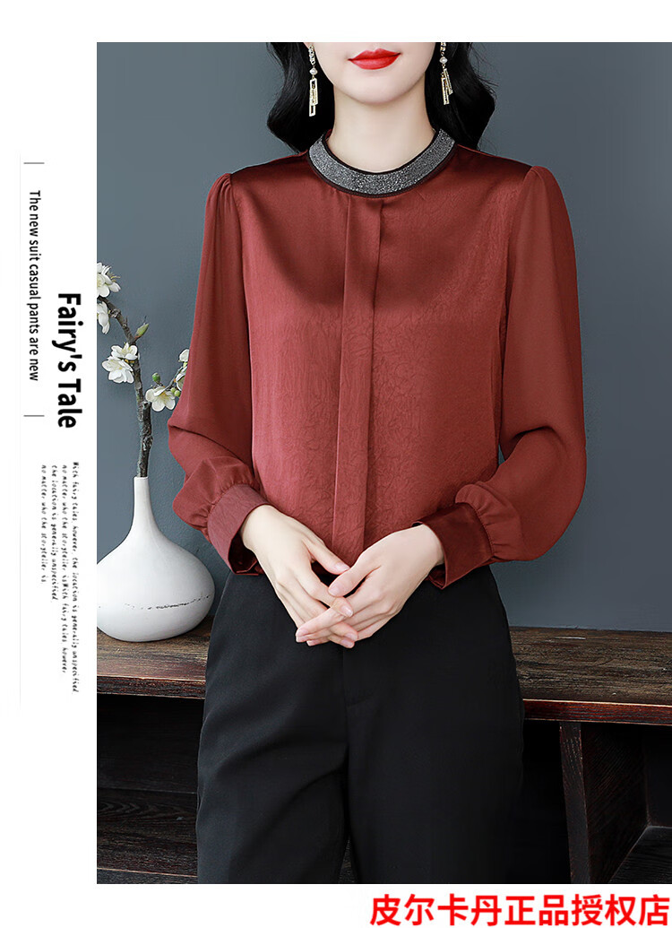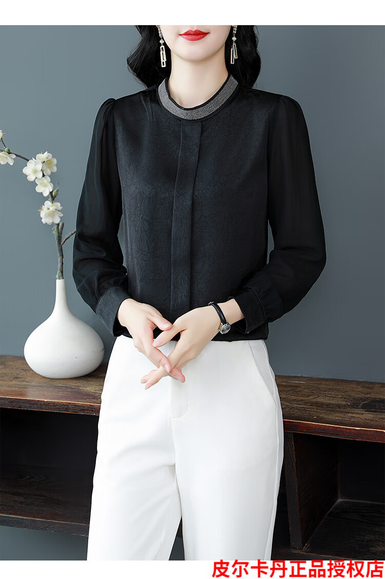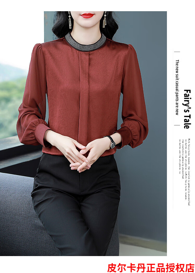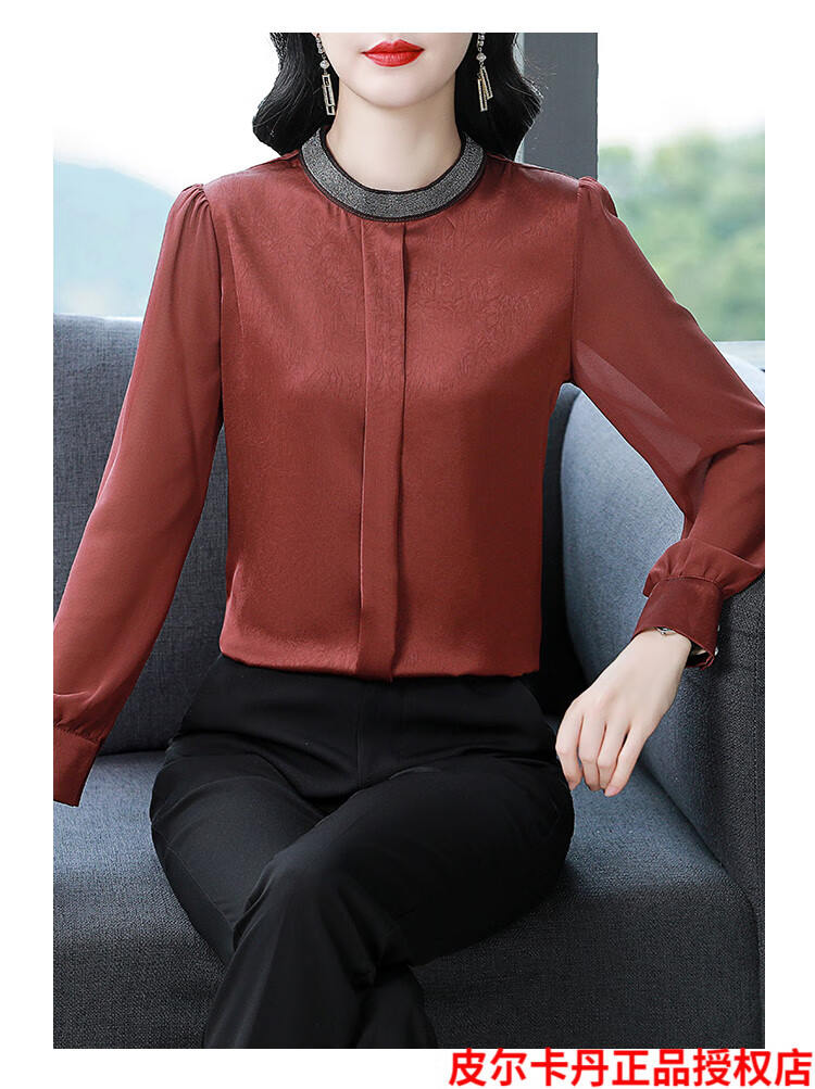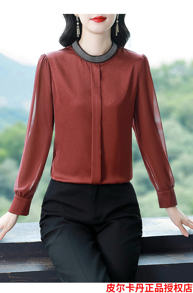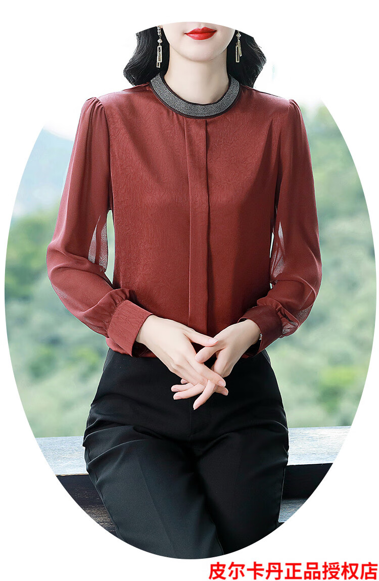 皮尔卡丹(pierre cardin)高端品牌真丝衬衫女长袖早秋季新款重工烫钻立领衬衣春装感桑蚕丝 皮尔卡丹 安哥拉红 4XL (建议150-160斤)