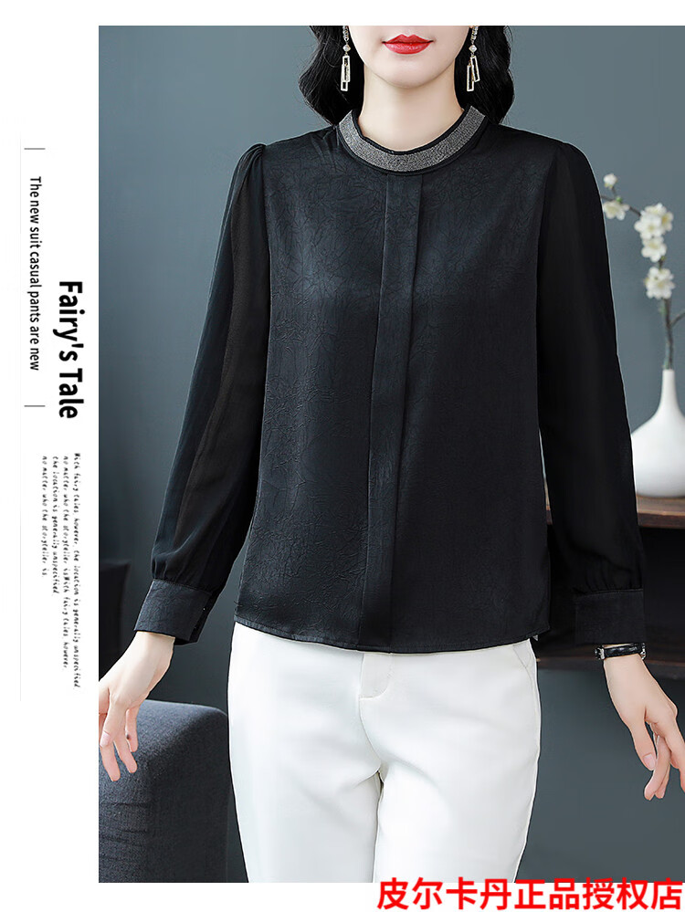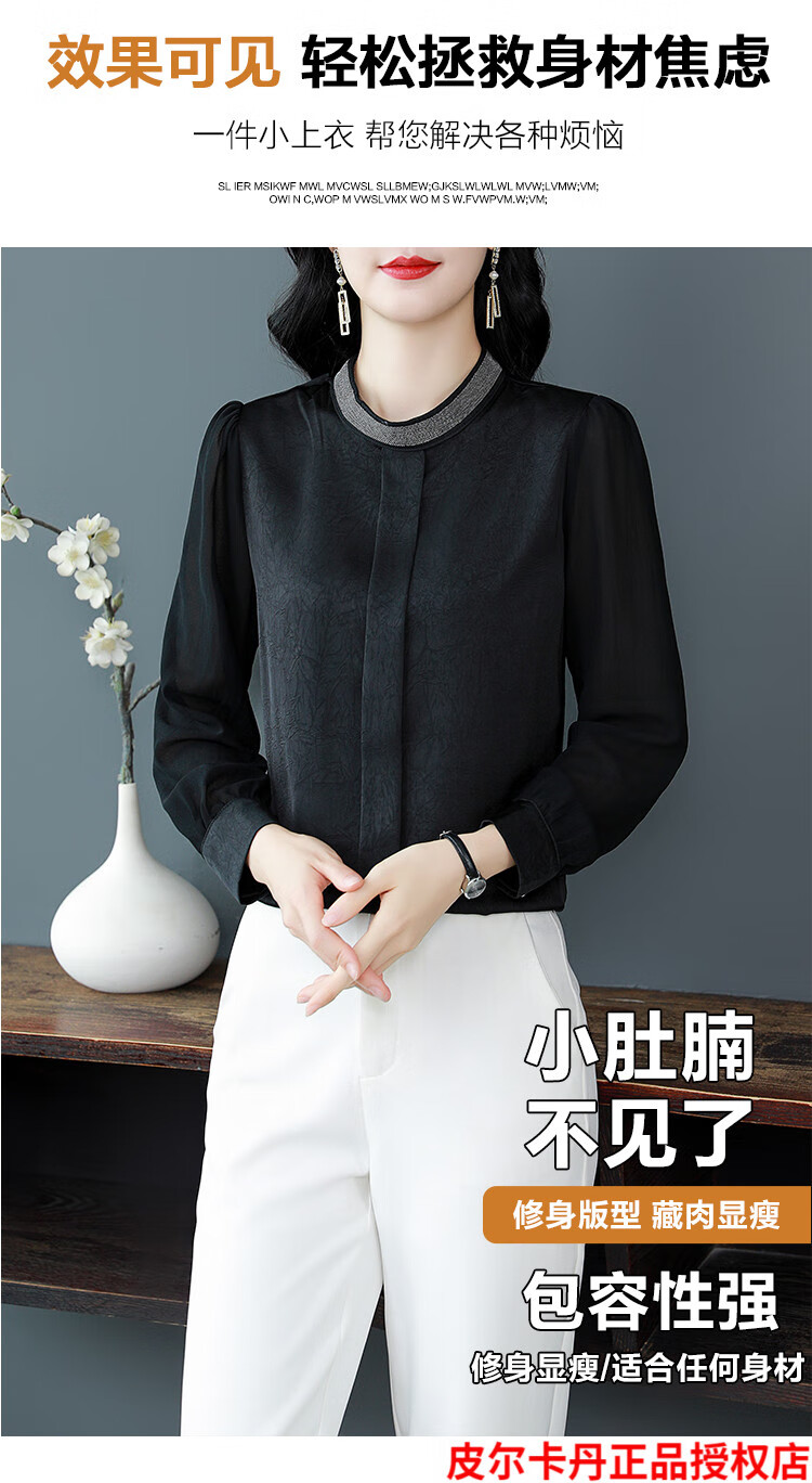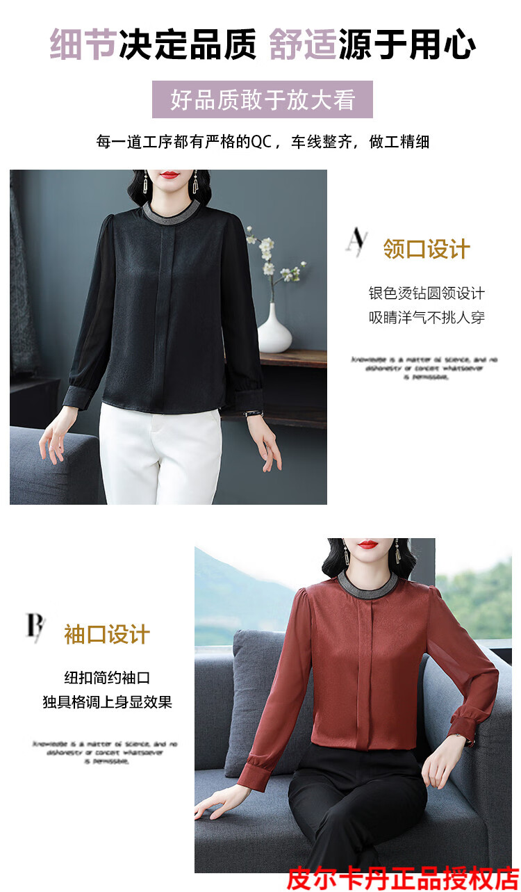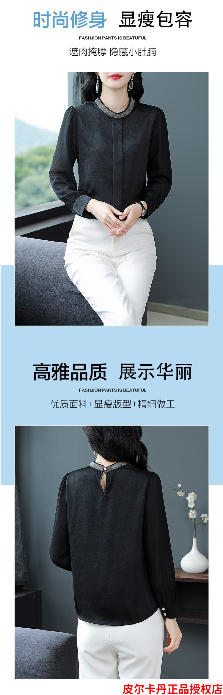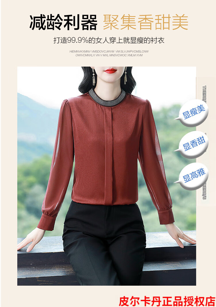 皮尔卡丹(pierre cardin)高端品牌真丝衬衫女长袖早秋季新款重工烫钻立领衬衣春装感桑蚕丝 皮尔卡丹 安哥拉红 4XL (建议150-160斤)