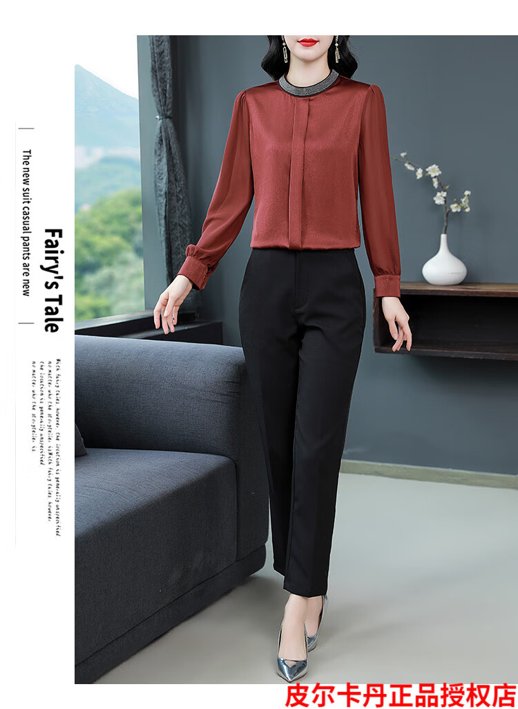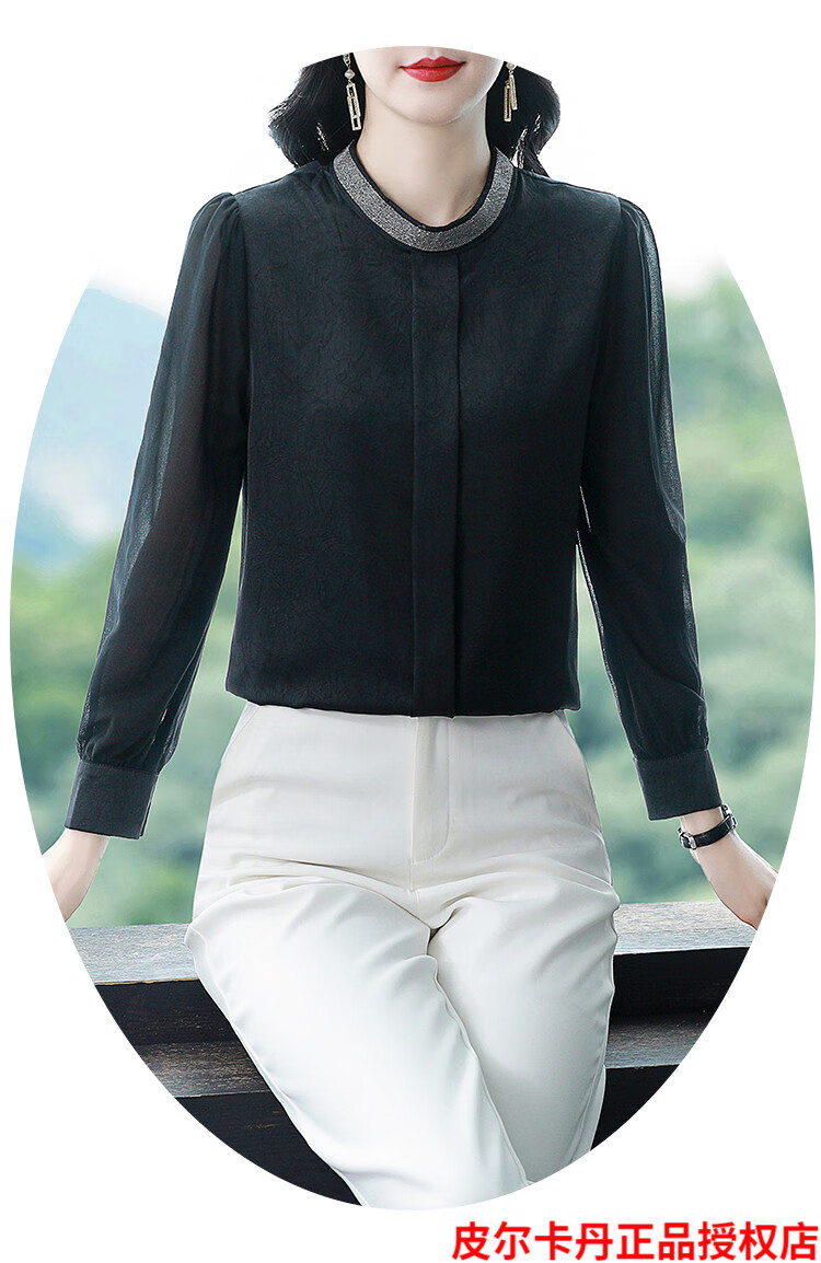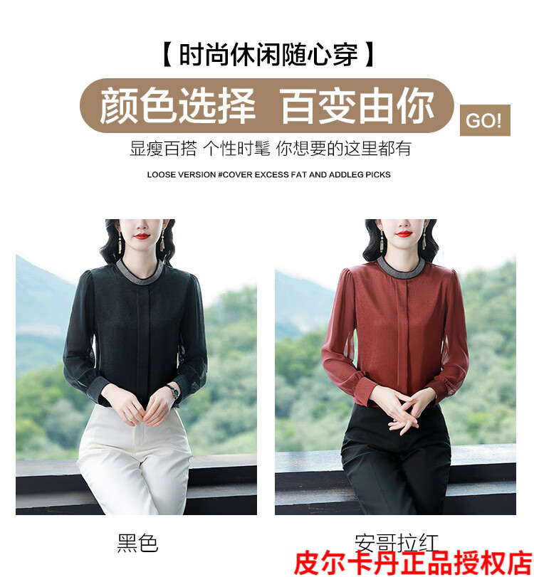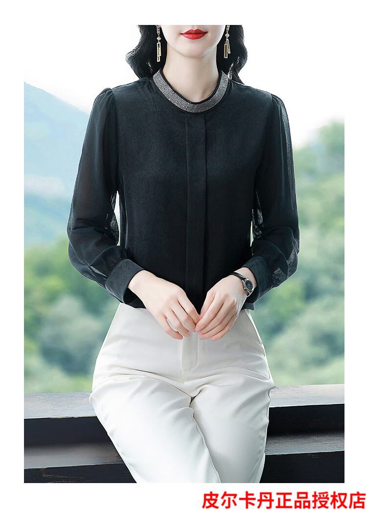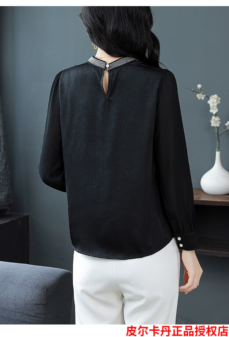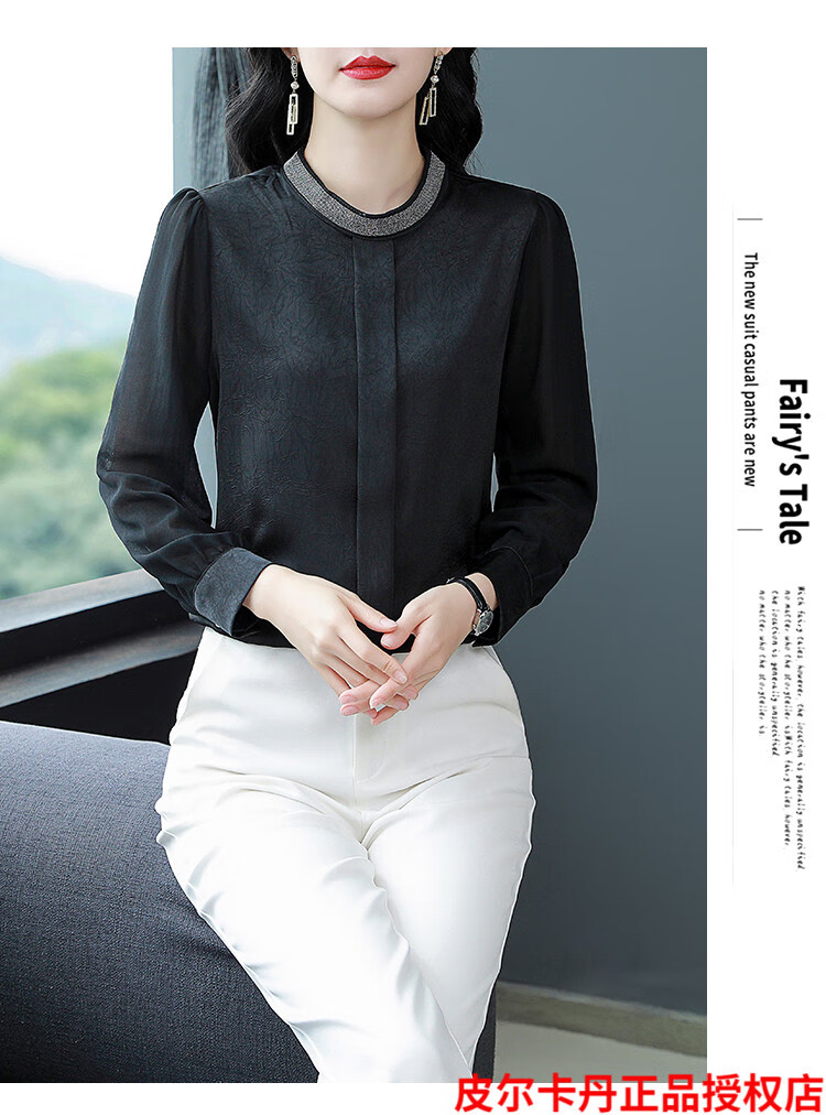 皮尔卡丹(pierre cardin)高端品牌真丝衬衫女长袖早秋季新款重工烫钻立领衬衣春装感桑蚕丝 皮尔卡丹 安哥拉红 4XL (建议150-160斤)