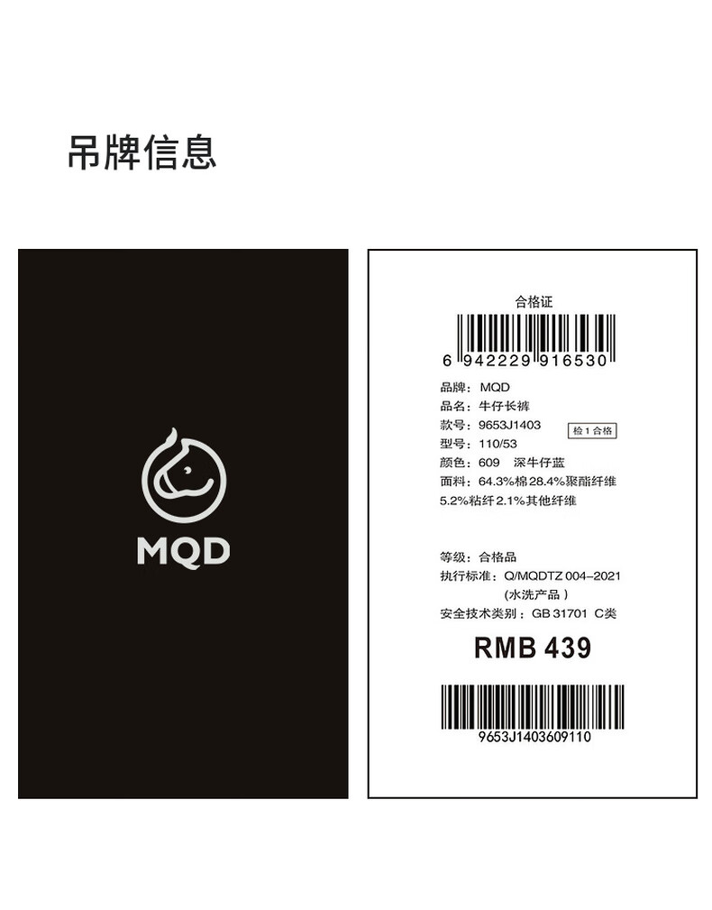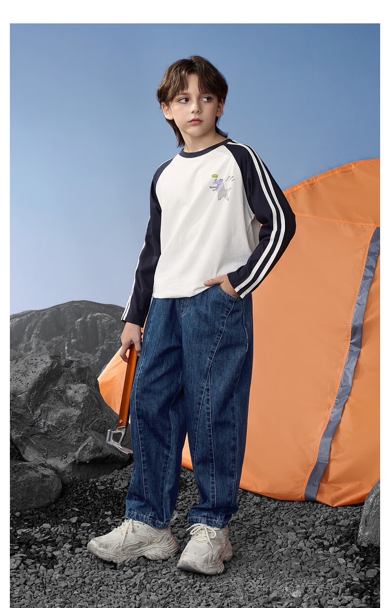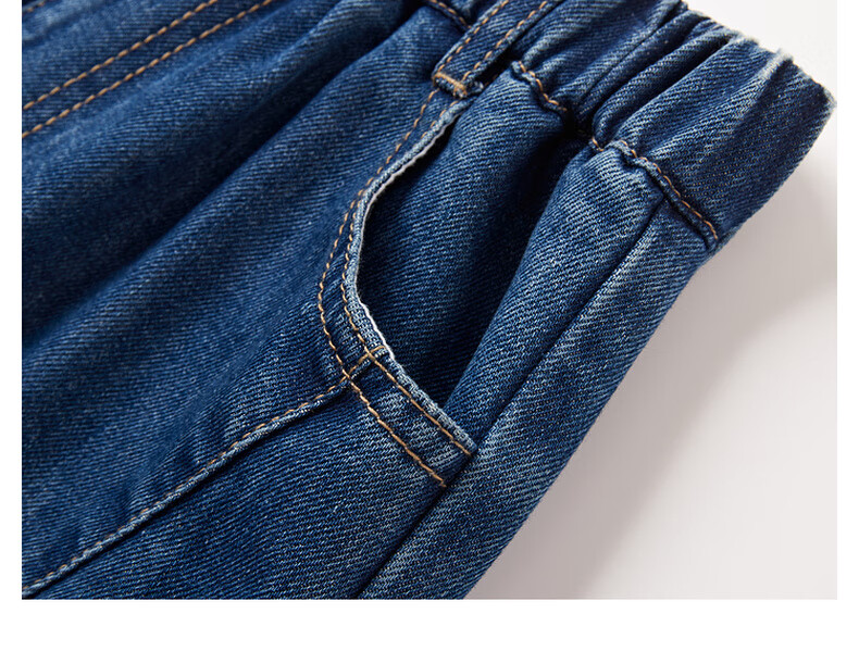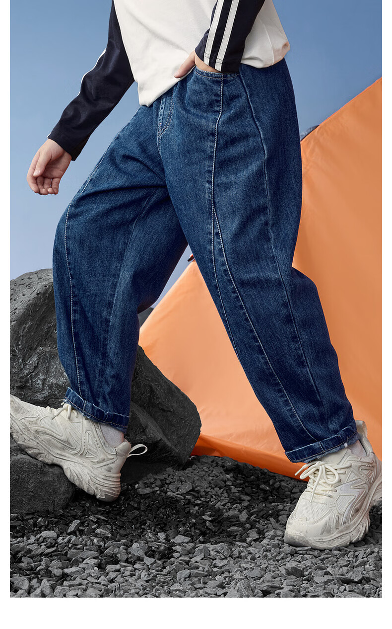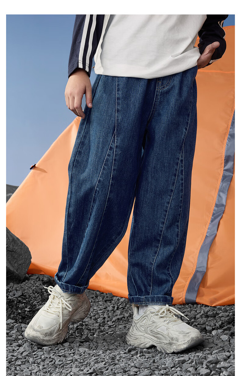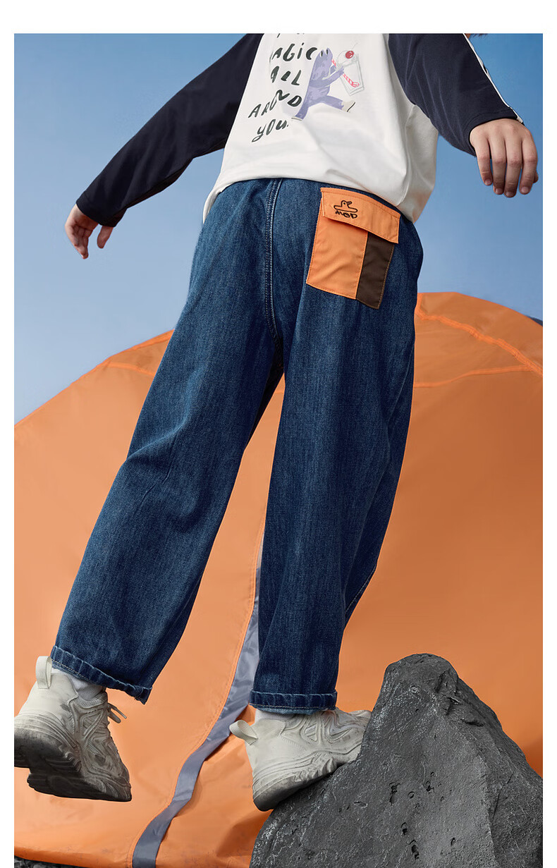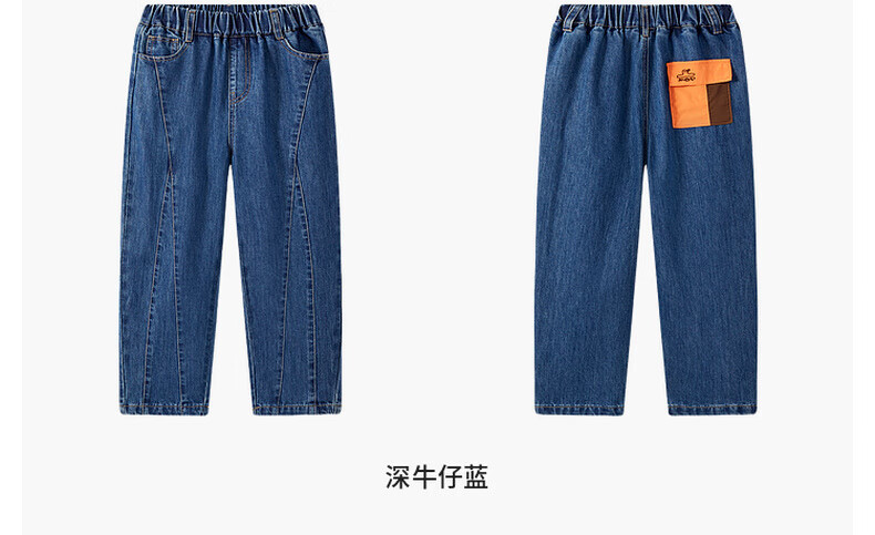 马骑顿(MQD)【老爹裤】男童25秋新款街潮学院风立体剪裁撞色口袋牛仔裤 深牛仔蓝 140