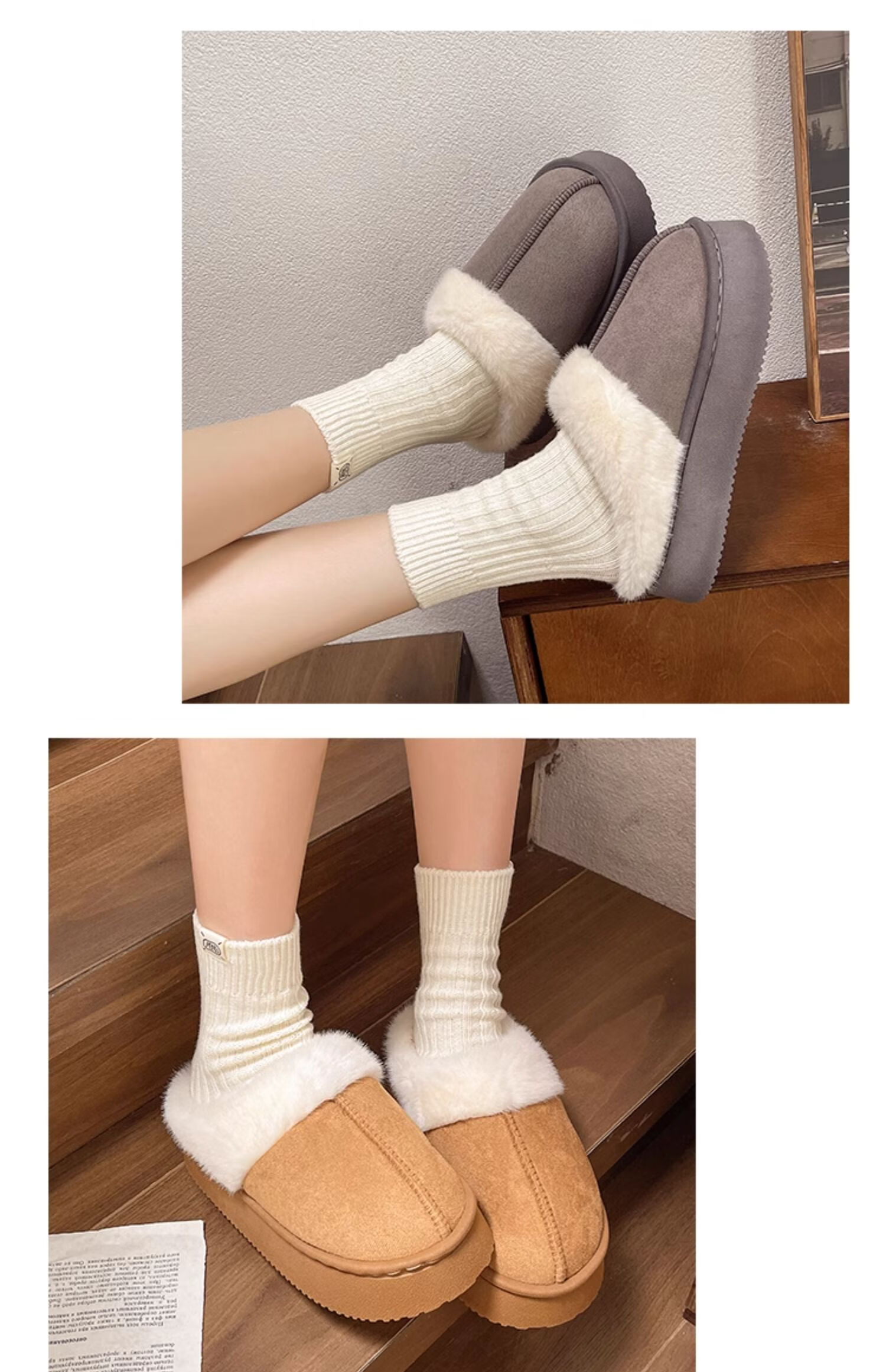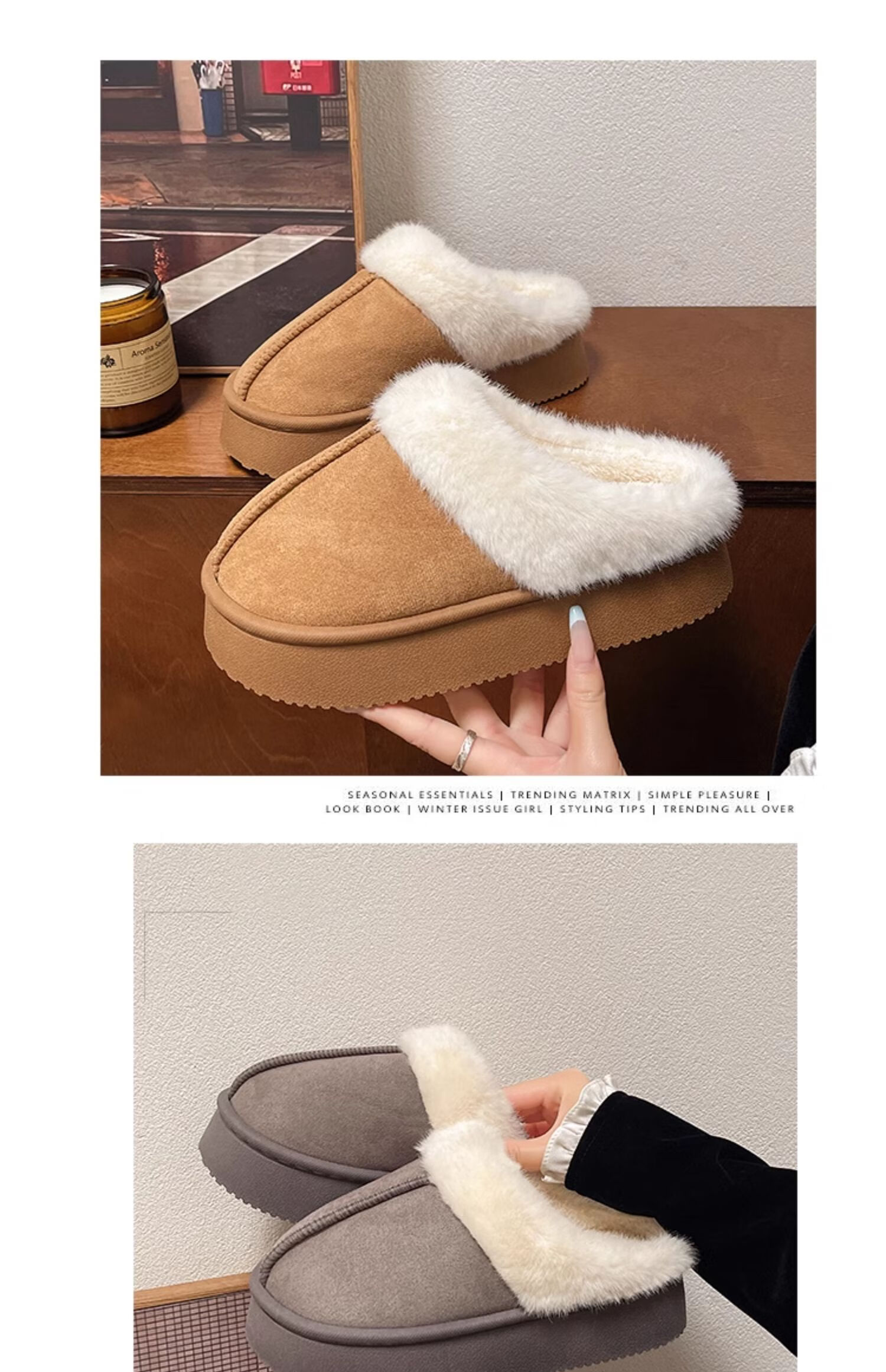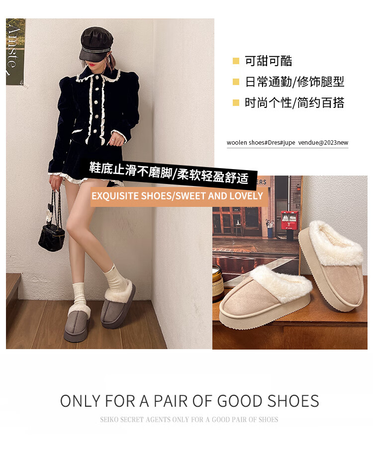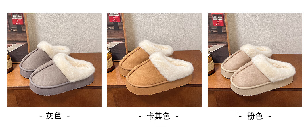 EVERAU女士冬季茸茸毛鞋领厚底便鞋休闲舒适棉鞋面包鞋懒人鞋丨UEA2001 栗色 37