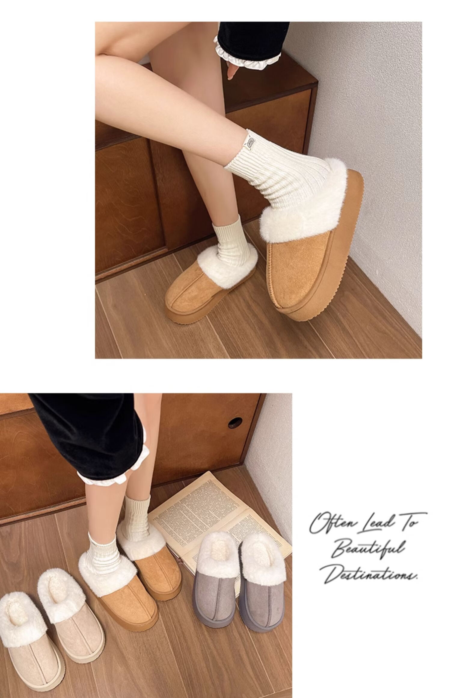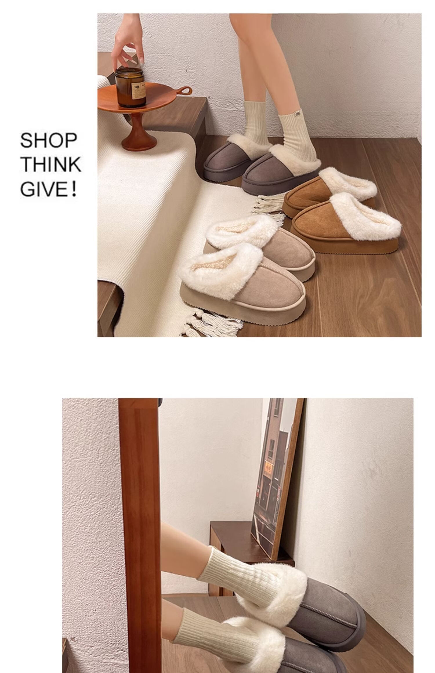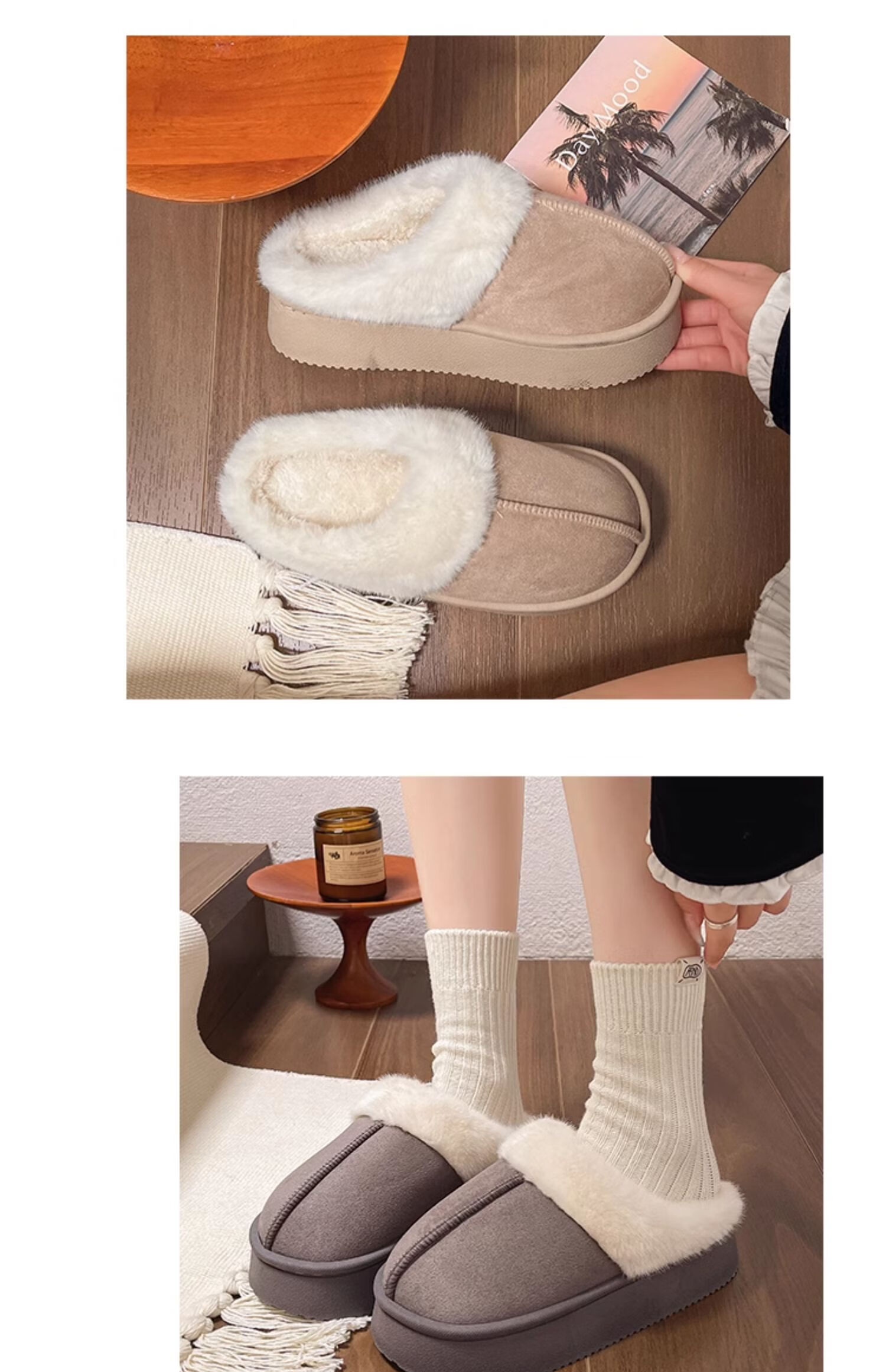 EVERAU女士冬季茸茸毛鞋领厚底便鞋休闲舒适棉鞋面包鞋懒人鞋丨UEA2001 栗色 37