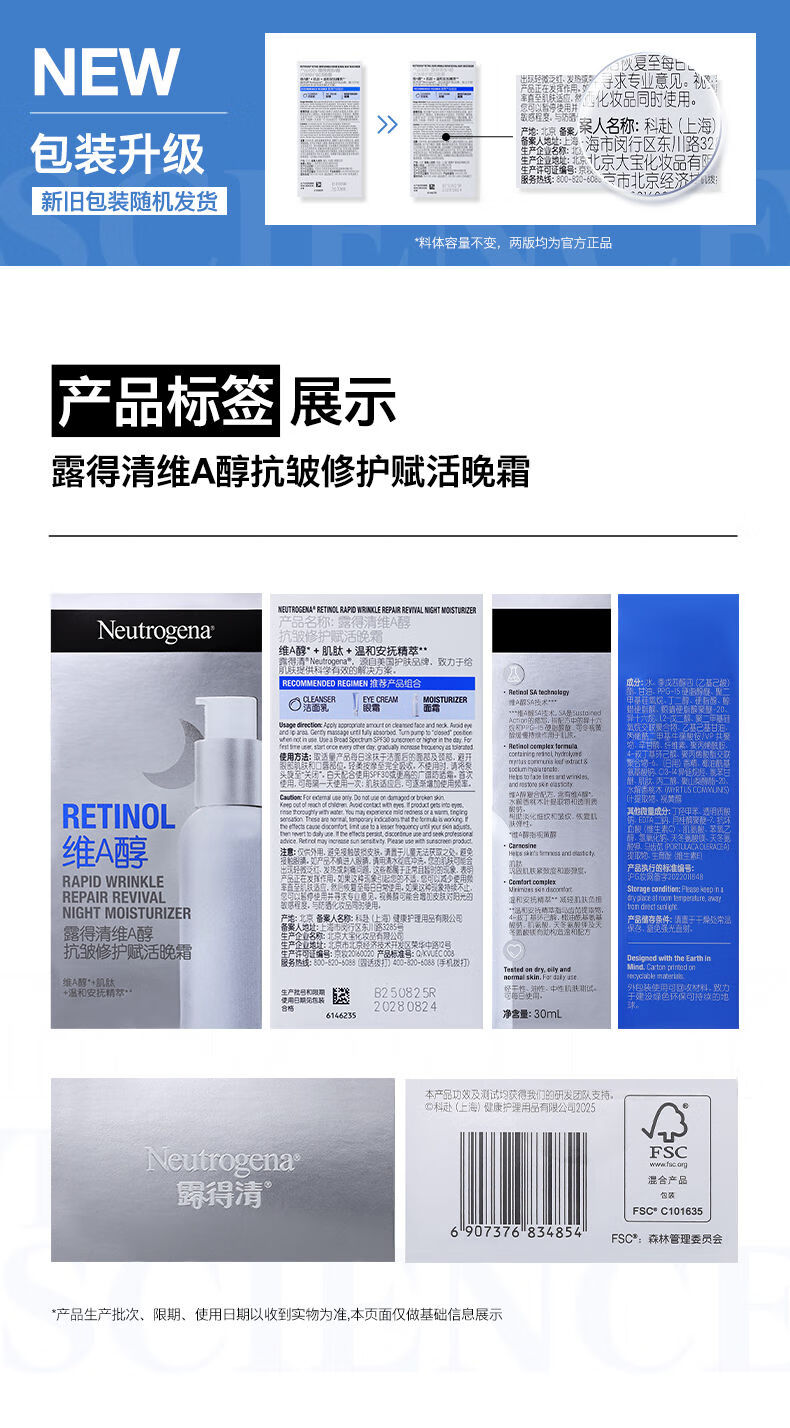 露得清三抗超A醇面霜抗皱修复晚霜30ml*2淡化细纹保湿护肤礼盒装送女友