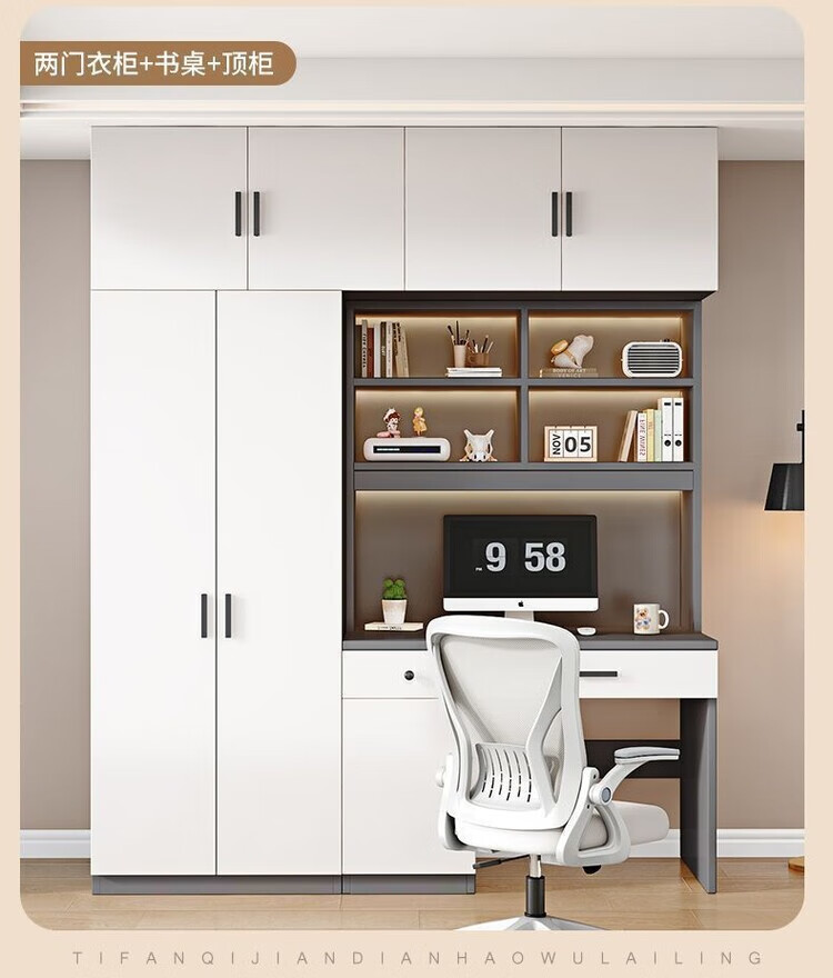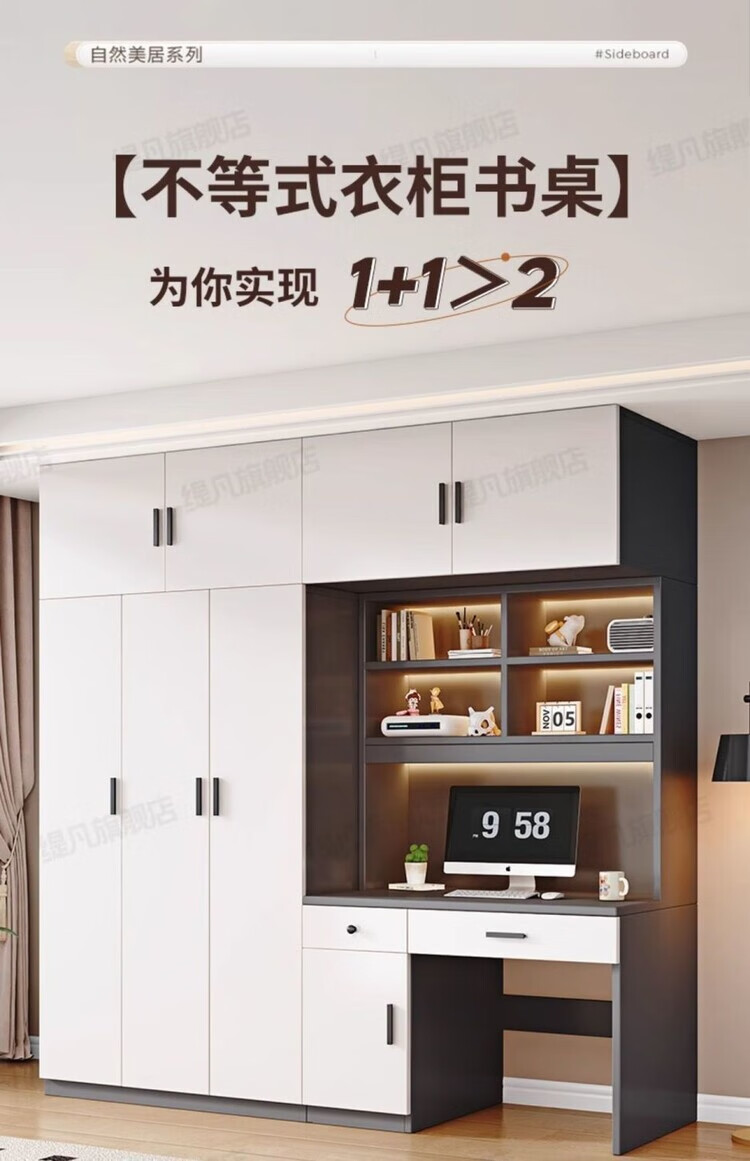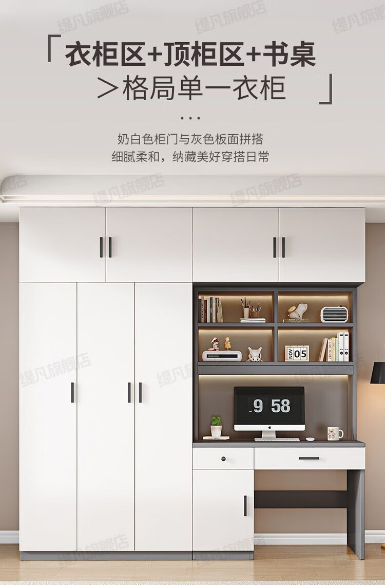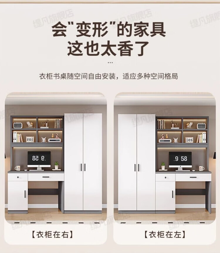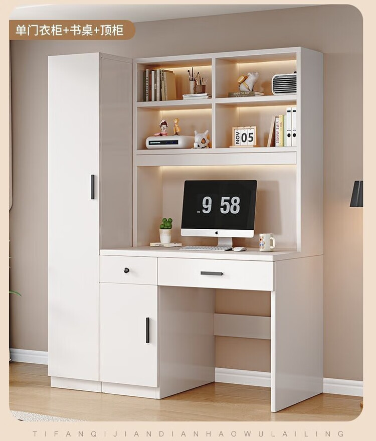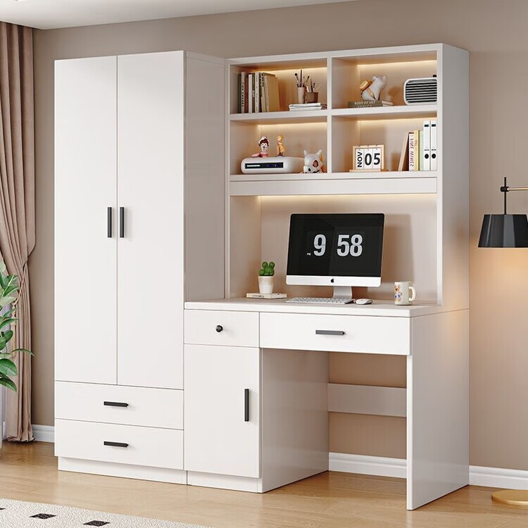 欣慕雅实木书桌衣柜一体组合电脑桌小户型写字台衣柜家用卧室组装可定制 雪白1.3m单门书桌 实木送货入户自己安装【支持定制】