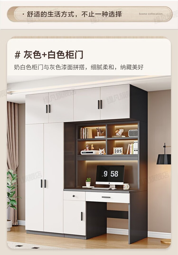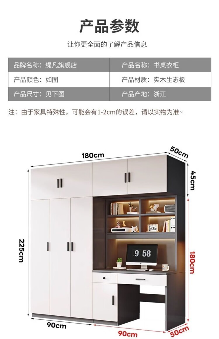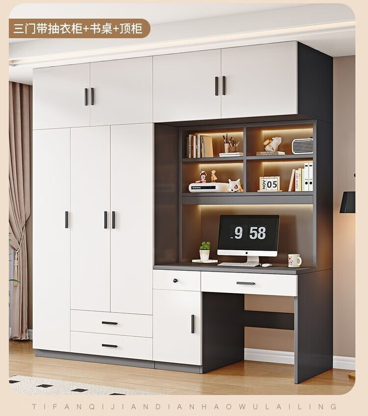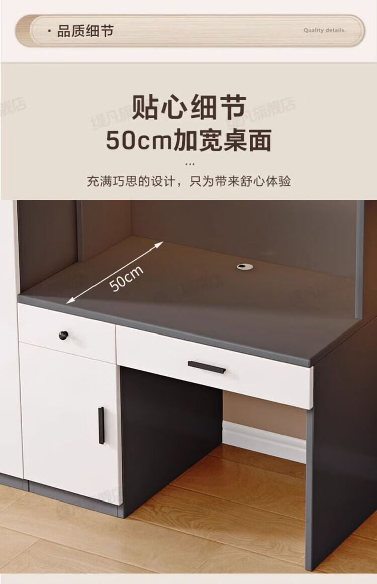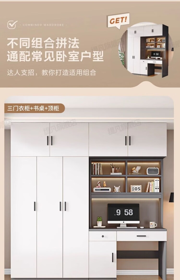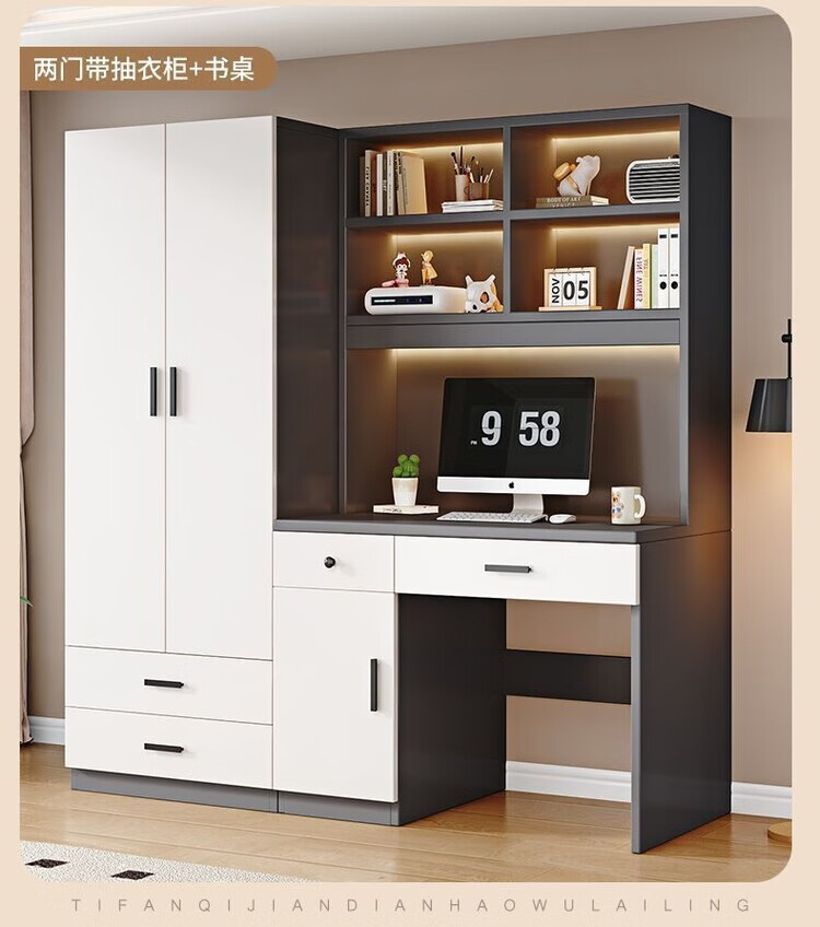 欣慕雅实木书桌衣柜一体组合电脑桌小户型写字台衣柜家用卧室组装可定制 雪白1.3m单门书桌 实木送货入户自己安装【支持定制】