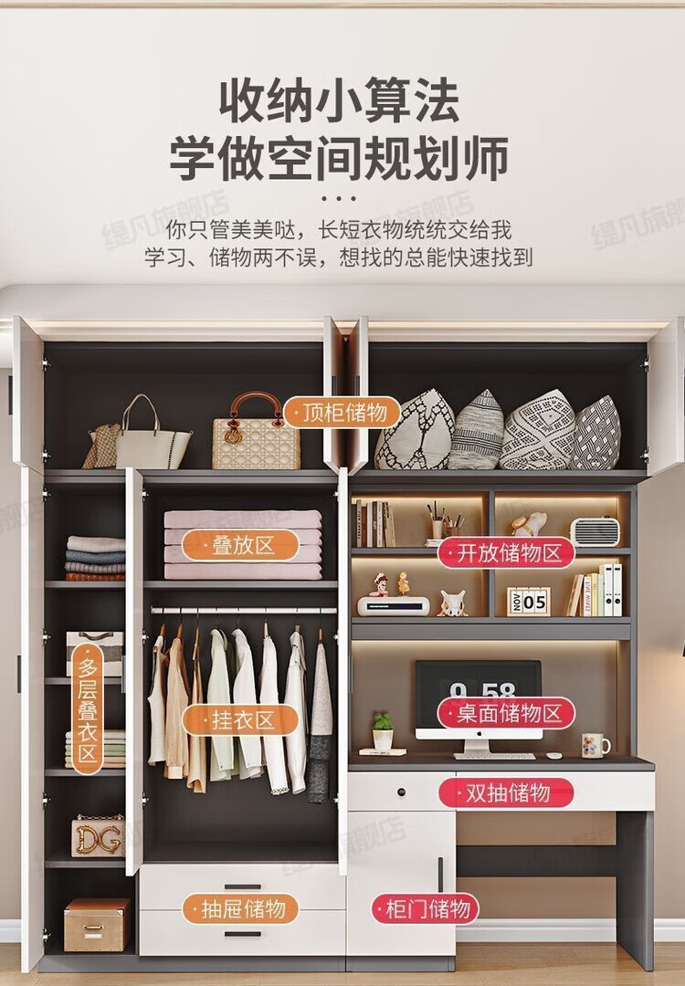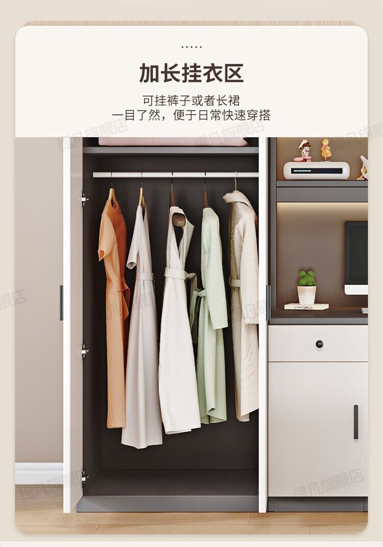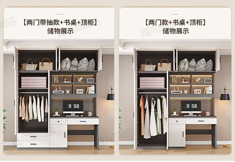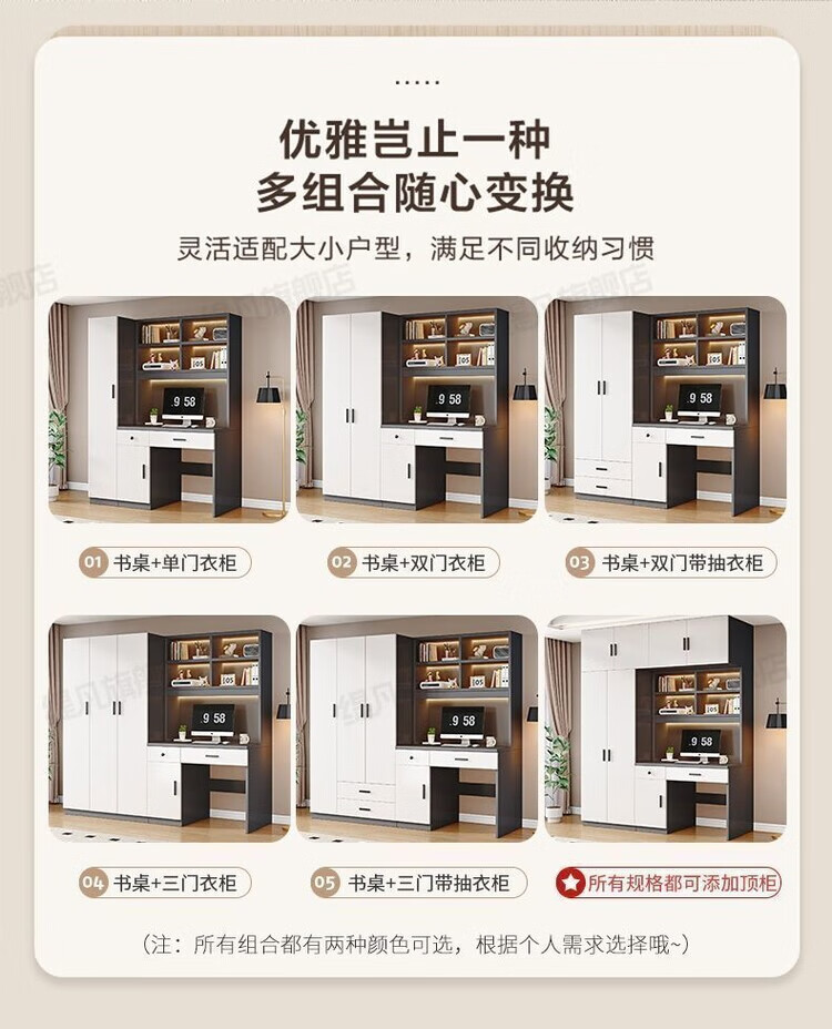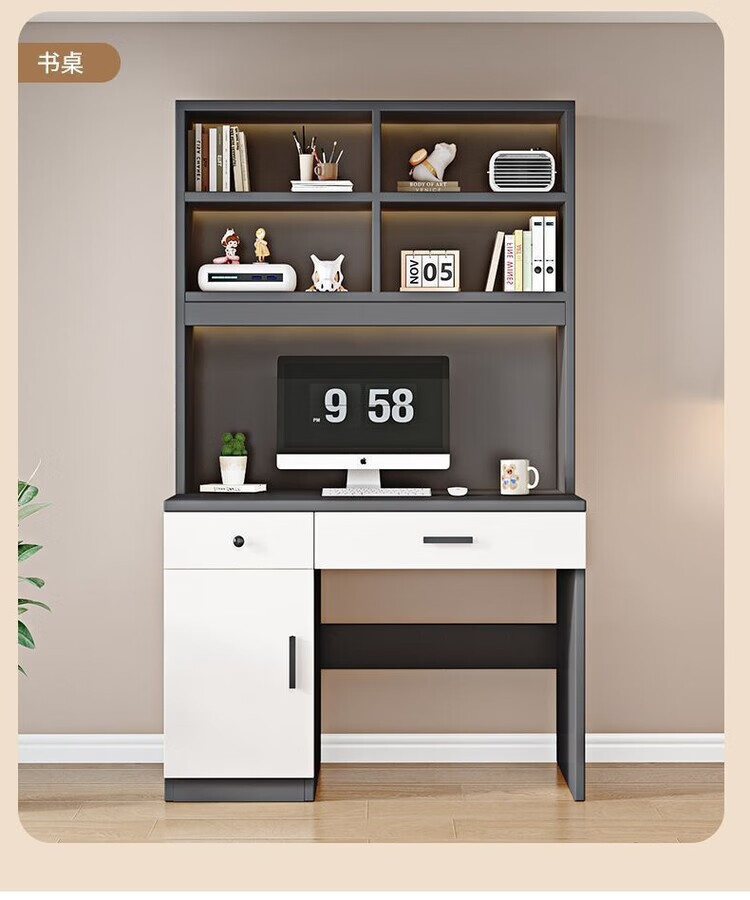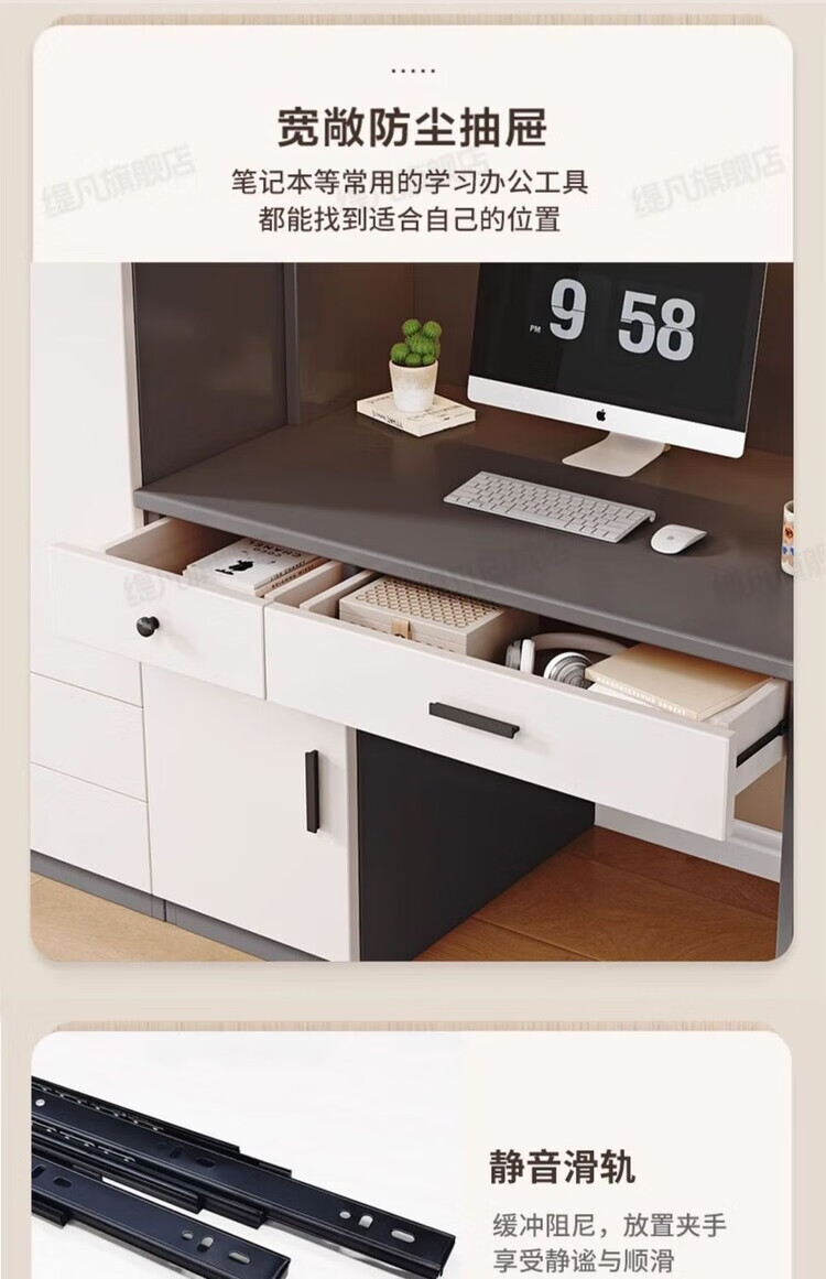 欣慕雅实木书桌衣柜一体组合电脑桌小户型写字台衣柜家用卧室组装可定制 雪白1.3m单门书桌 实木送货入户自己安装【支持定制】