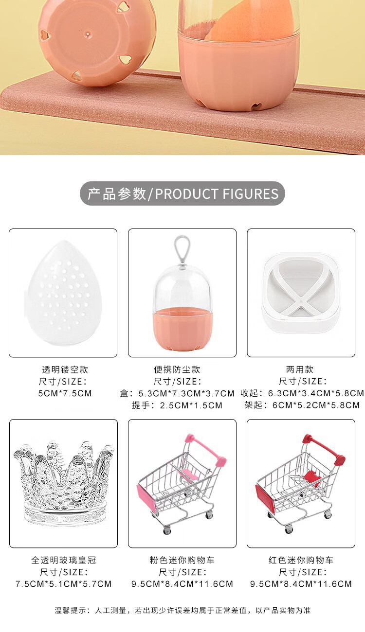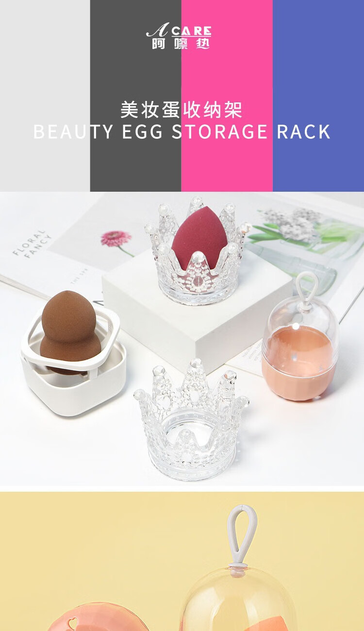 阿嚓热(ACARE)收纳盒/美妆蛋B1vaq001-海绵化妆蛋架带盖装粉扑防尘便携透气透明 便携防尘款 1件