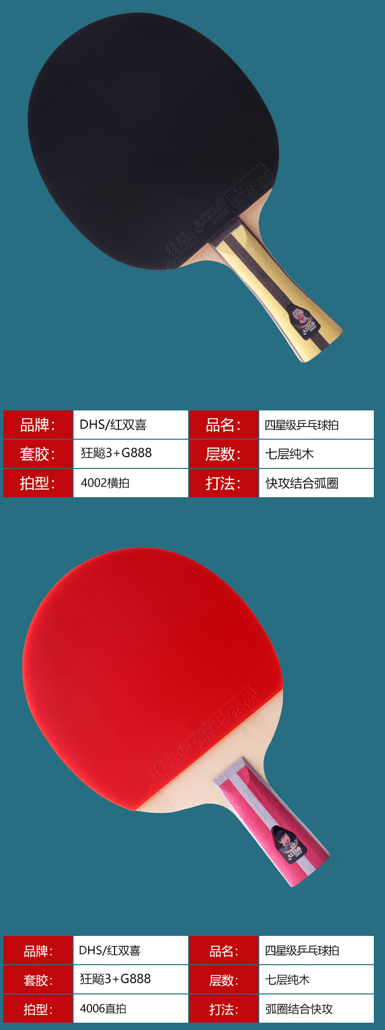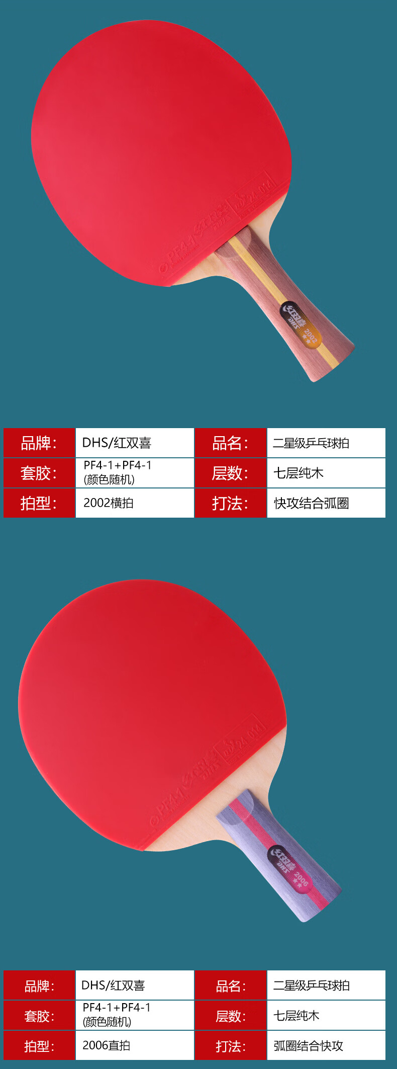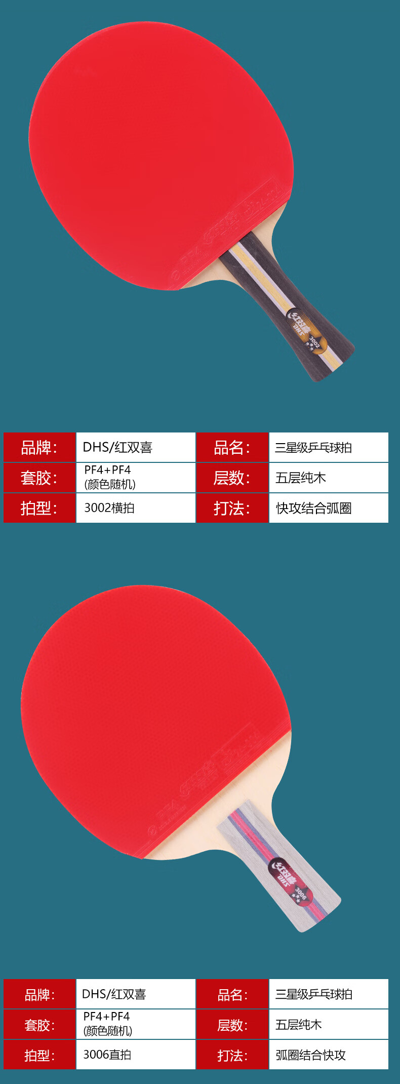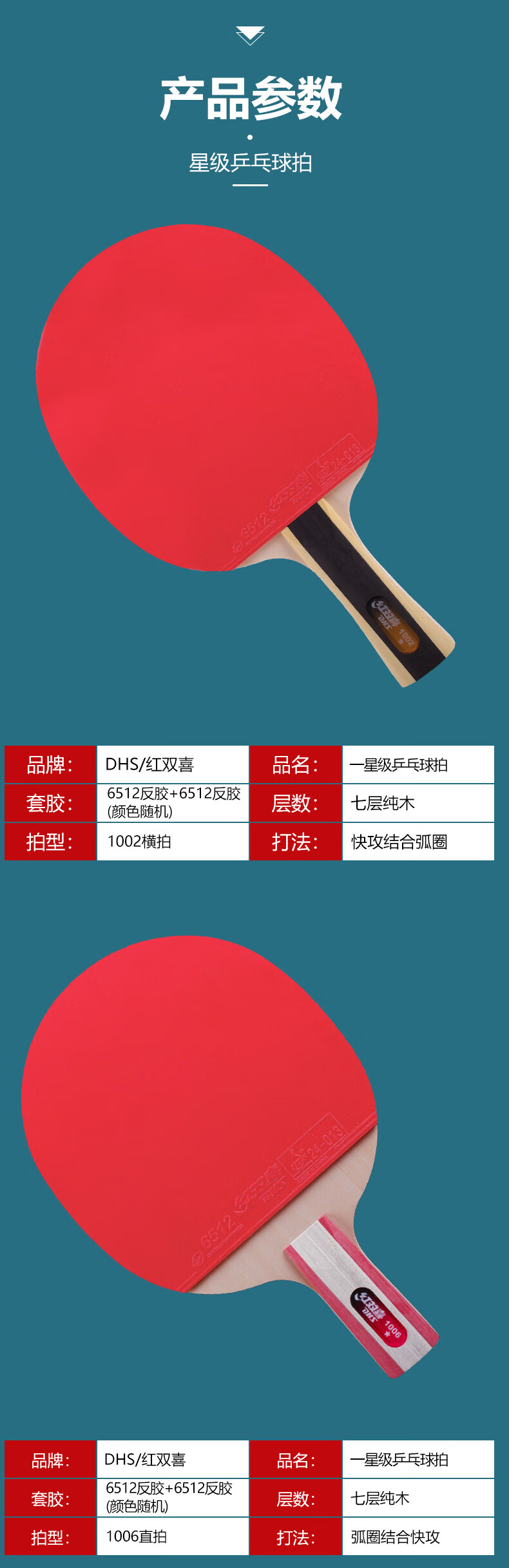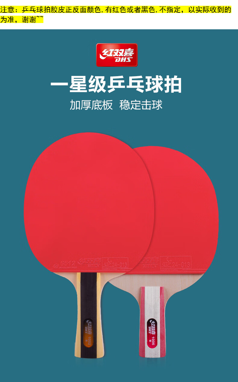 红双喜(DHS)一星乒乓球拍2只装双拍学生初学者训练比赛兵乓球拍1星直拍横拍 1002单支+拍包+红双喜乒乓球