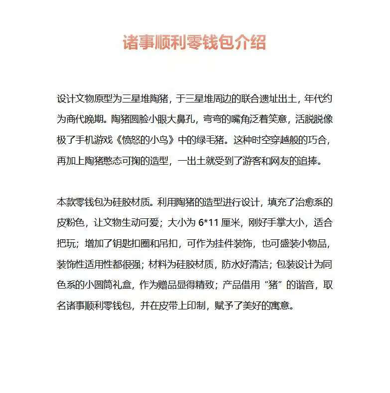 三星堆博物馆文创周边陶猪诸事顺利零钱包猪猪包儿童生日礼物女孩手提包女士包女款小包女生生日礼物实用纪念品 诸事顺利零钱包