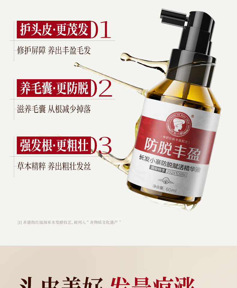 长发小寨 【非遗&新华网同款】防脱赋活精华液60ml 防断发掉发头皮护理液