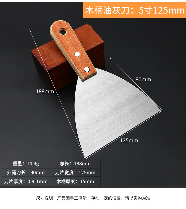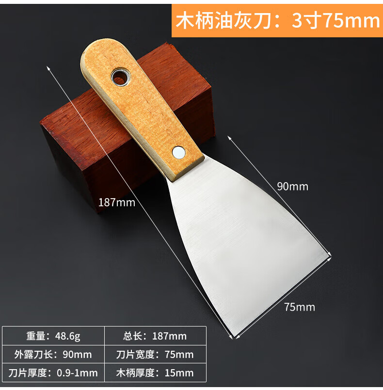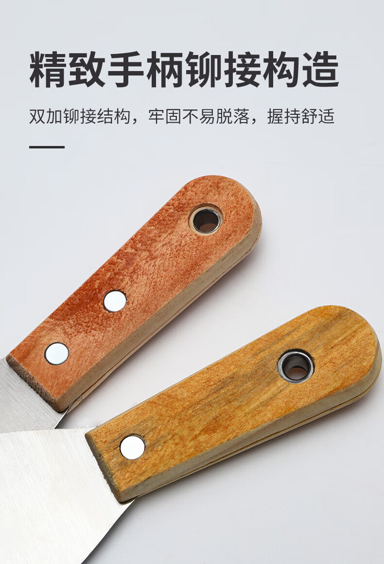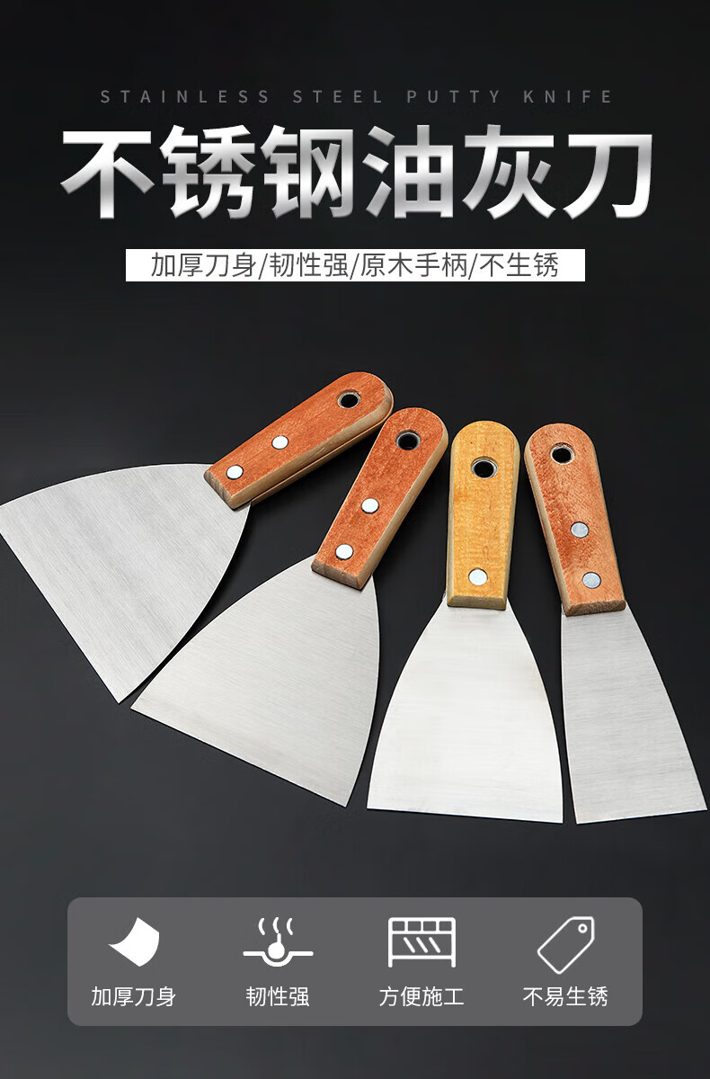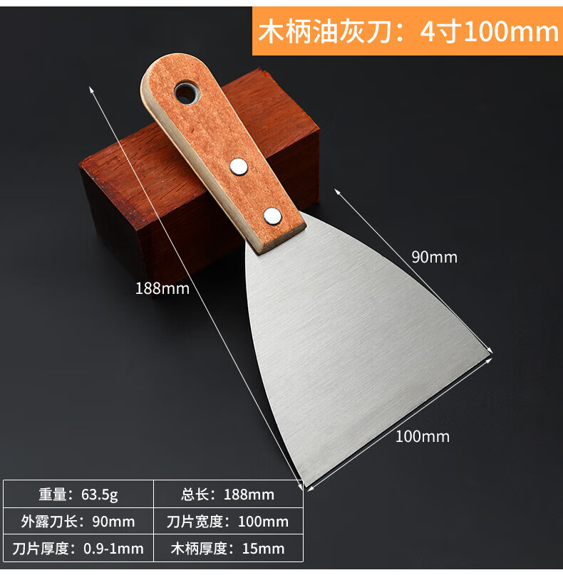 【精选百货】油灰刀铲刀清洁铲子墙填缝小刮刀抹泥刀刮腻子刀工具 木柄油灰刀4寸(宽度约100mm)-1把