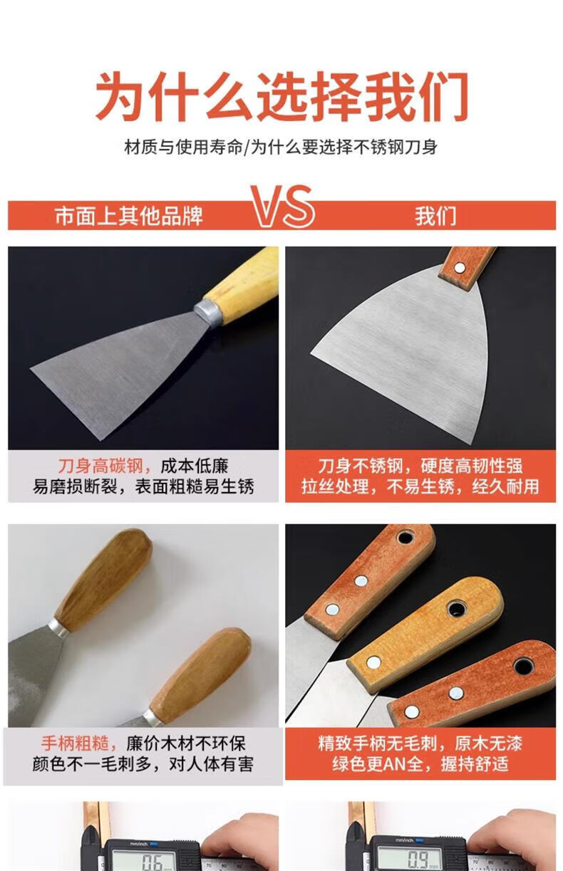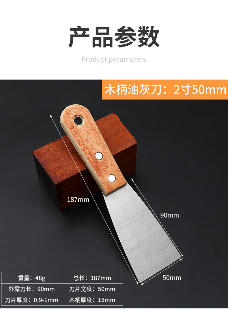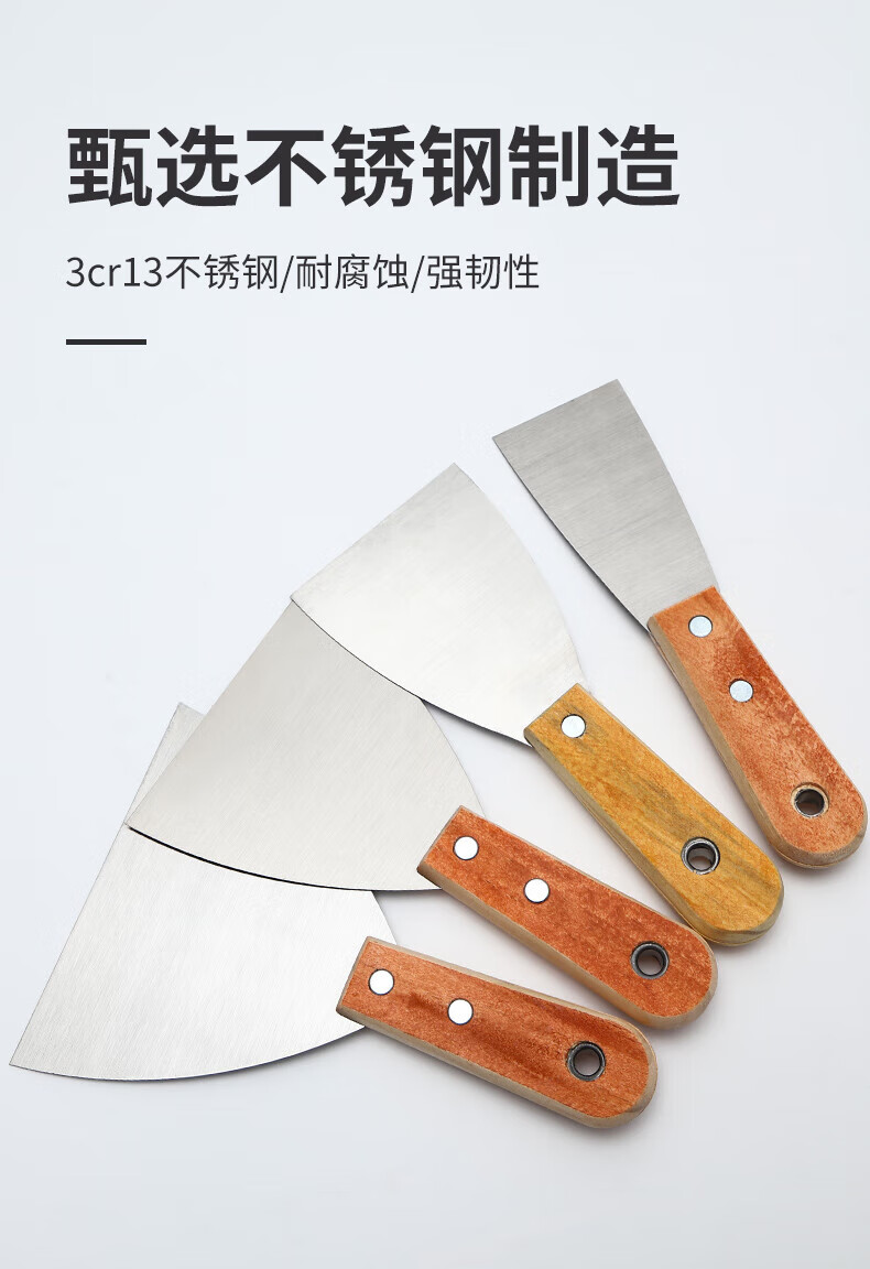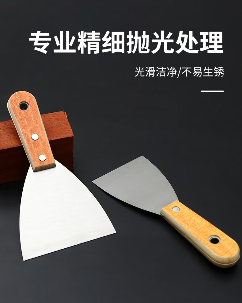 【精选百货】油灰刀铲刀清洁铲子墙填缝小刮刀抹泥刀刮腻子刀工具 木柄油灰刀4寸(宽度约100mm)-1把