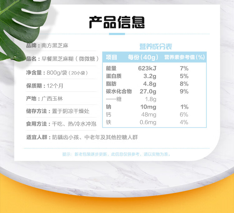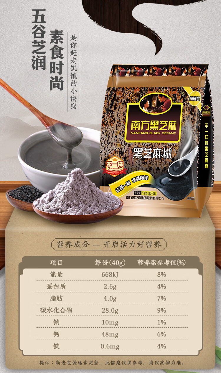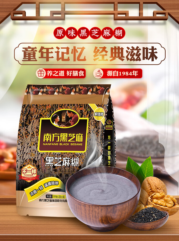 南方黑芝麻经典黑芝麻糊营养代餐早餐独立小袋速食 原味芝麻糊 1000g*1袋