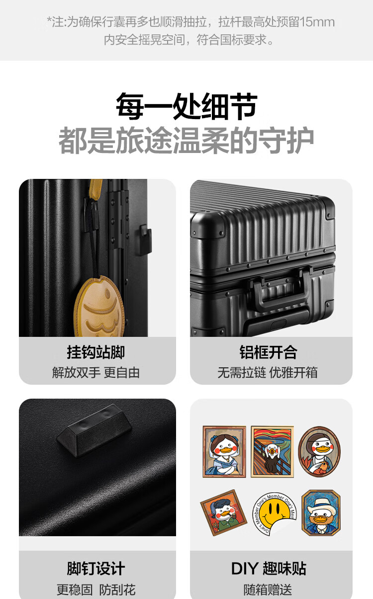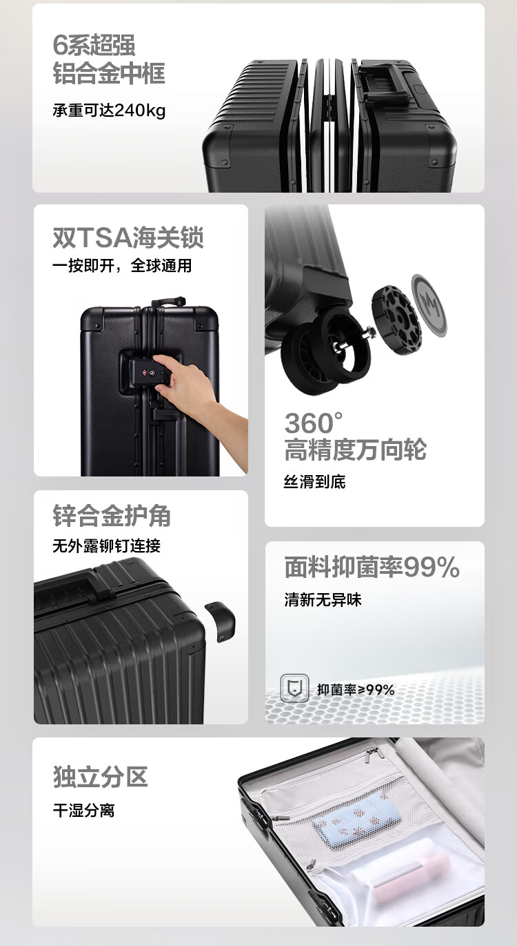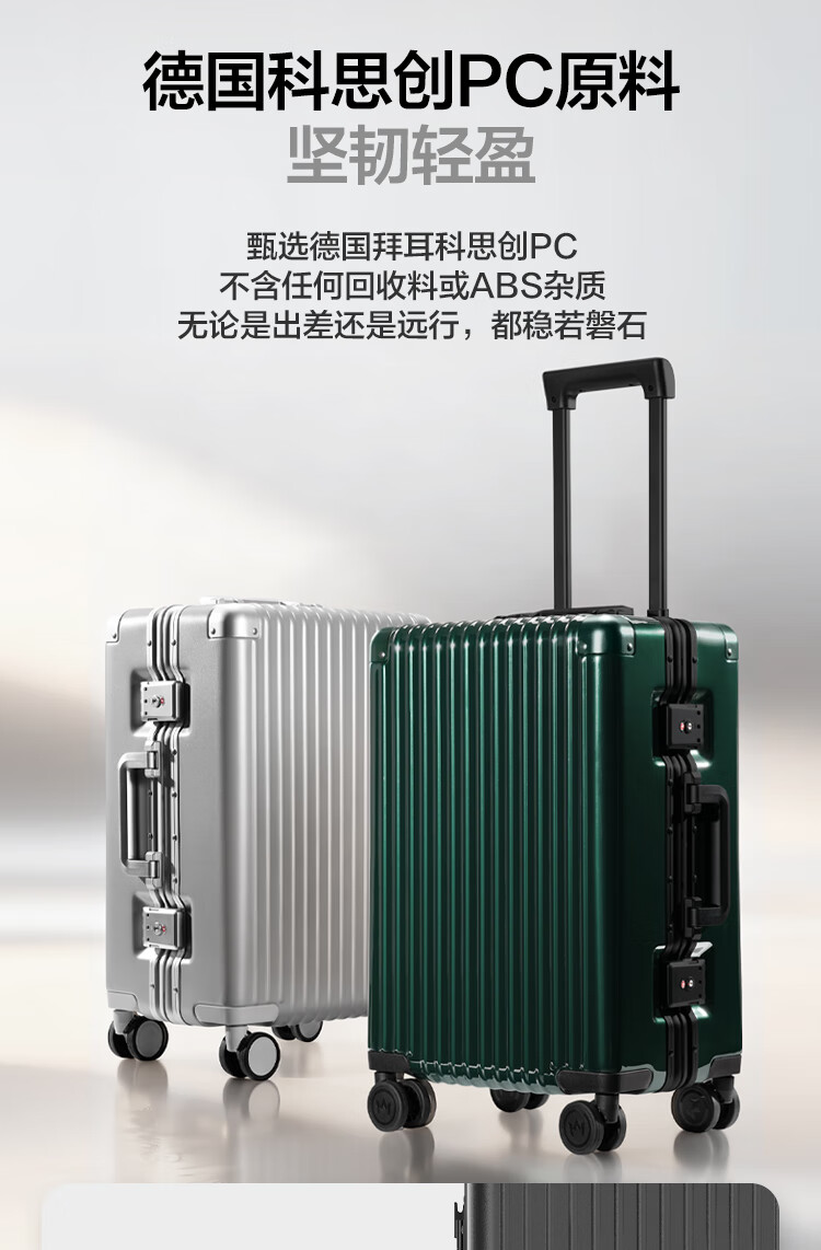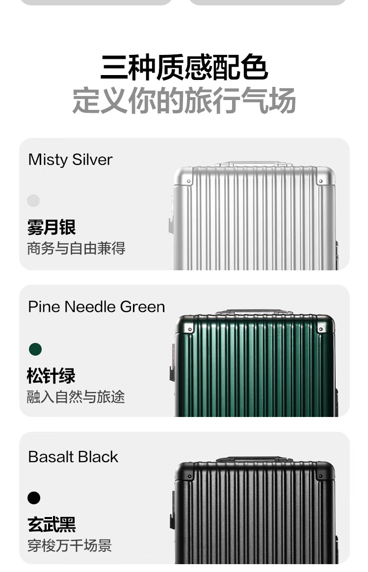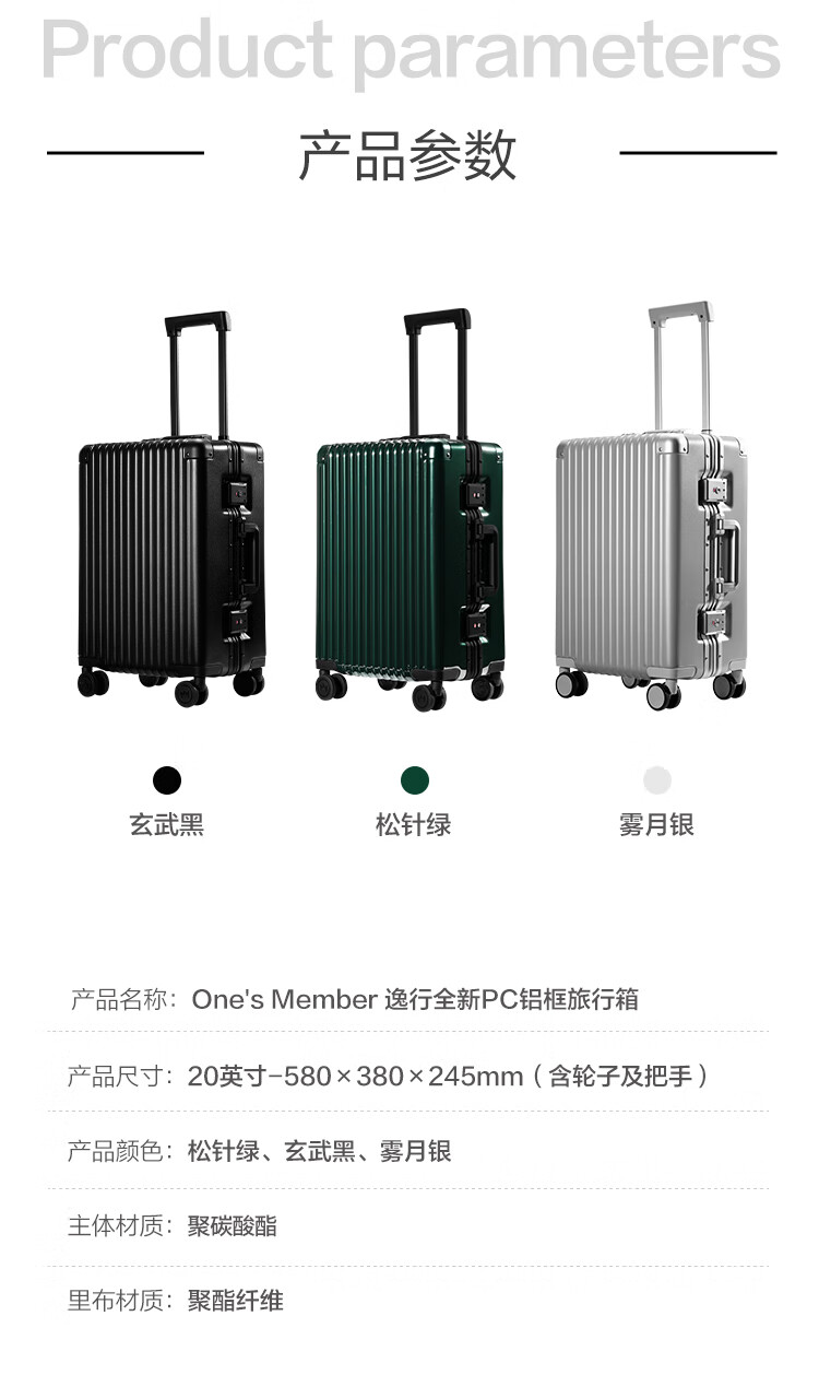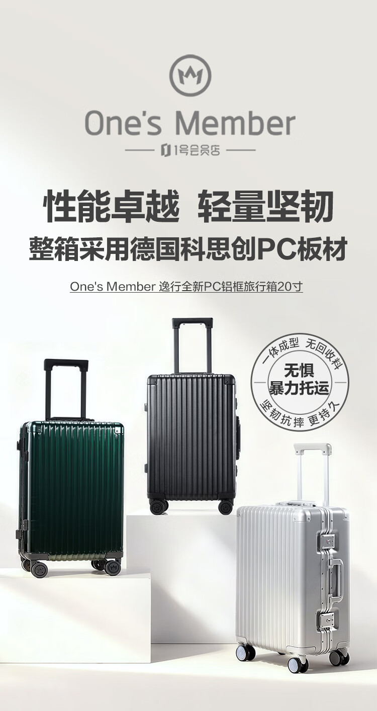 1号会员店OM逸行铝框旅行箱20英寸可登机行李箱行旅箱免托运拉杆箱雾月银
