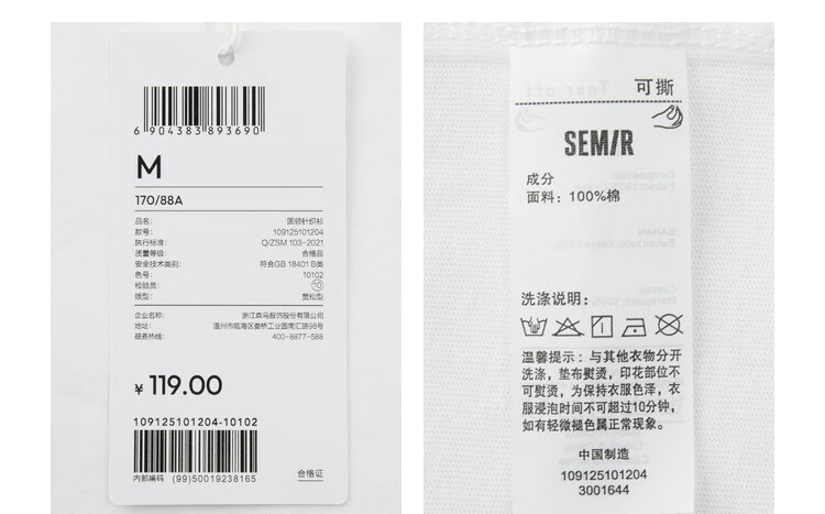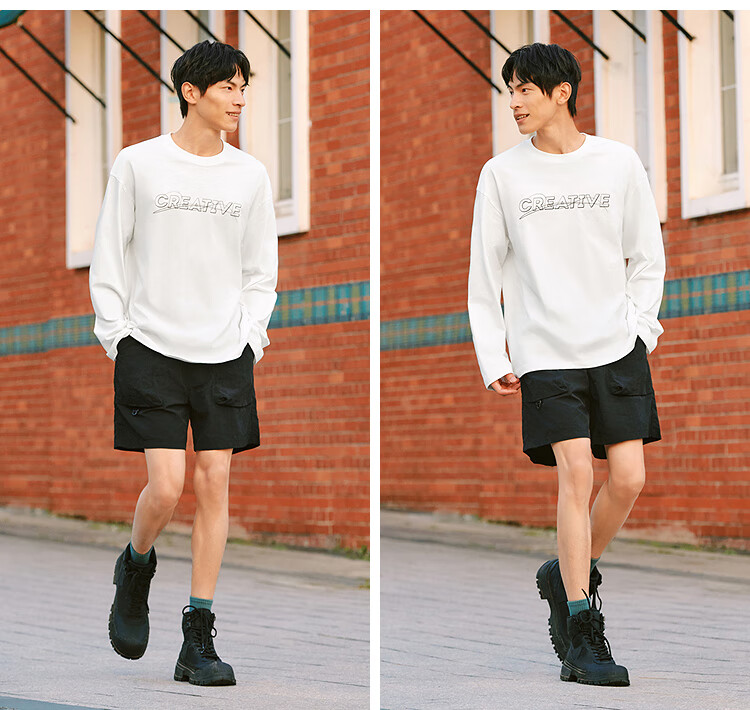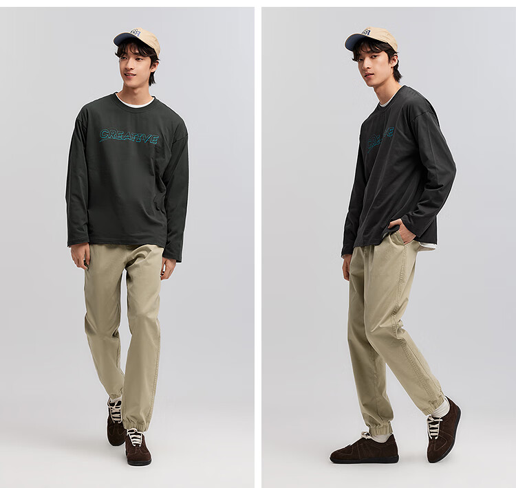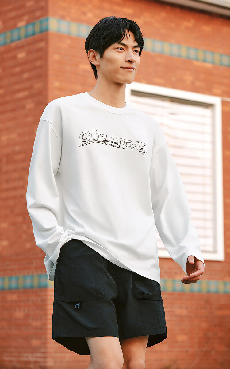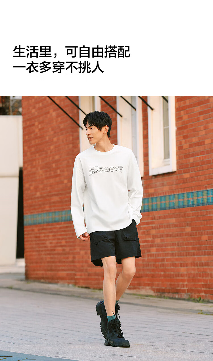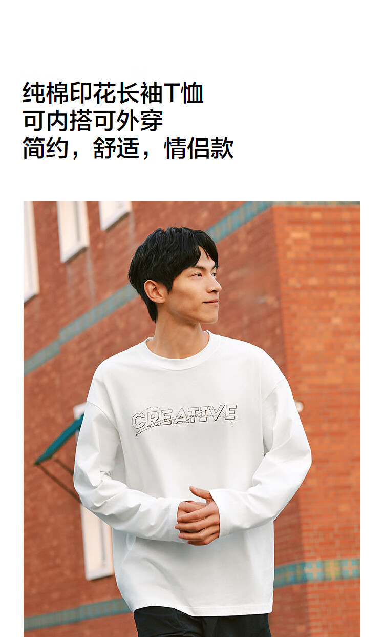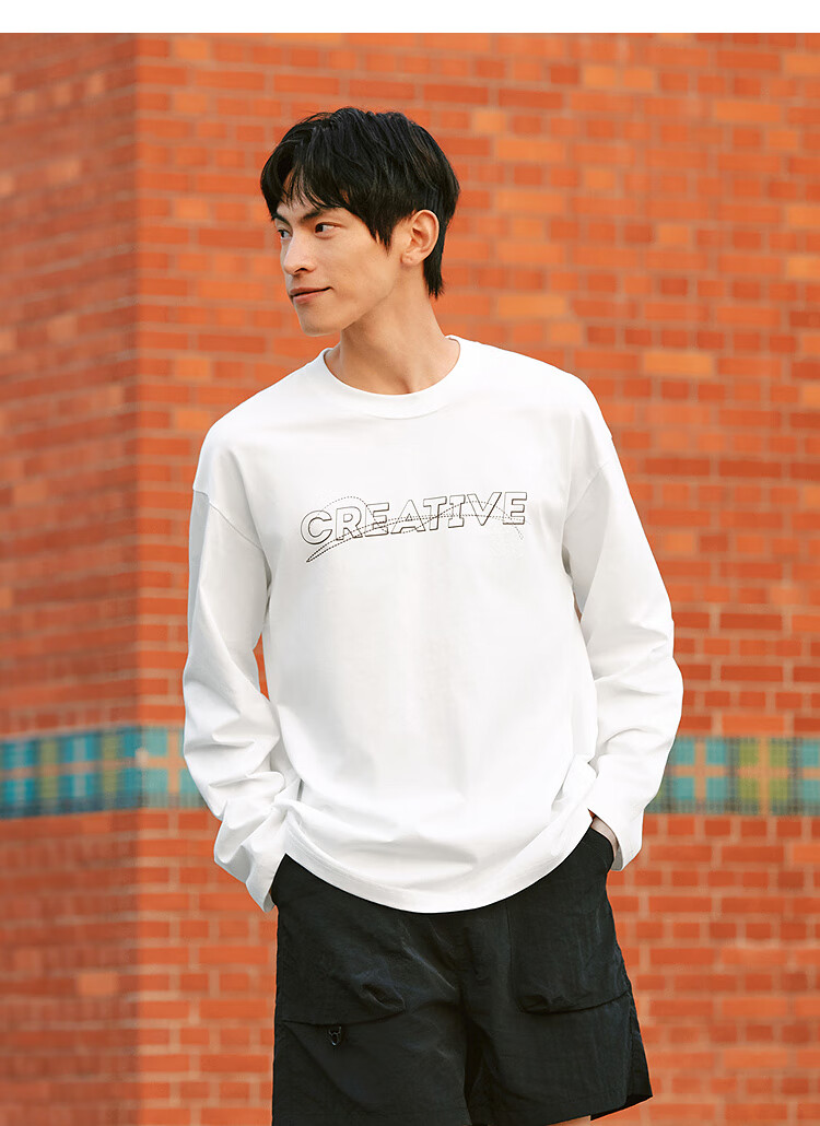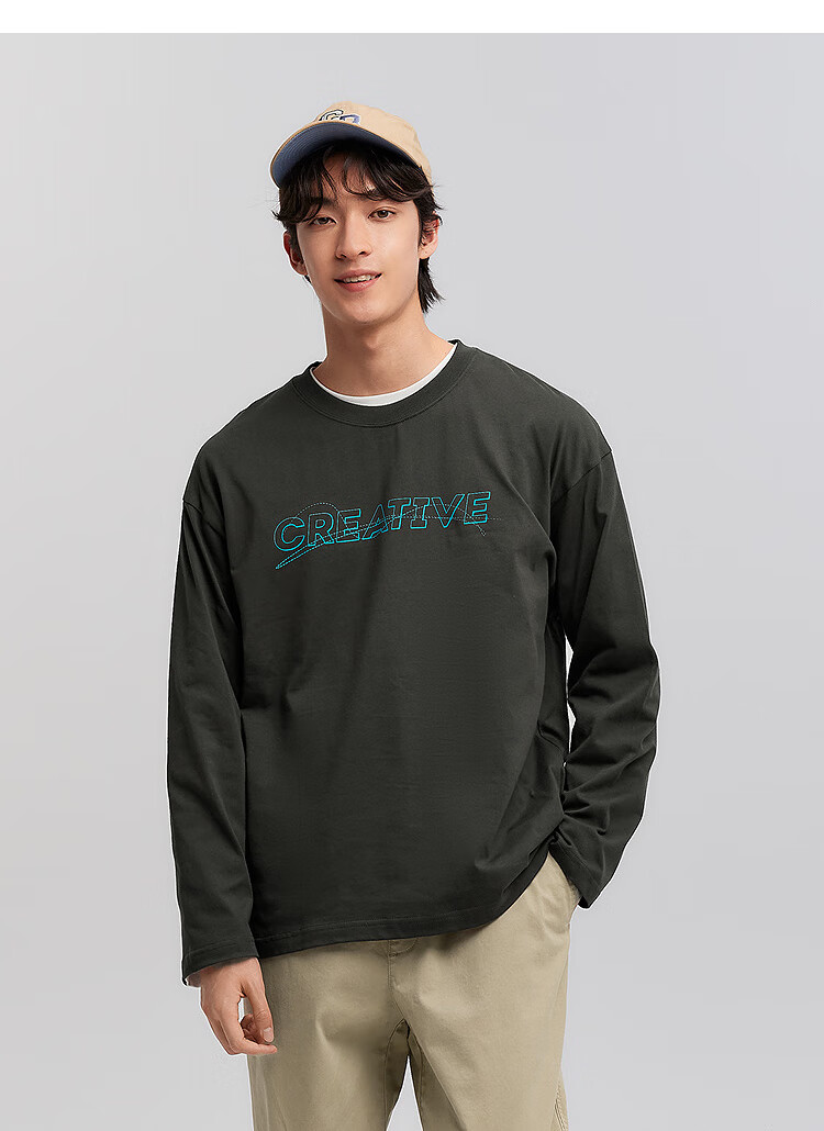 森马(Semir)长袖T恤男2025春季纯棉内搭针织上衣宽松打底衫情侣109125101204