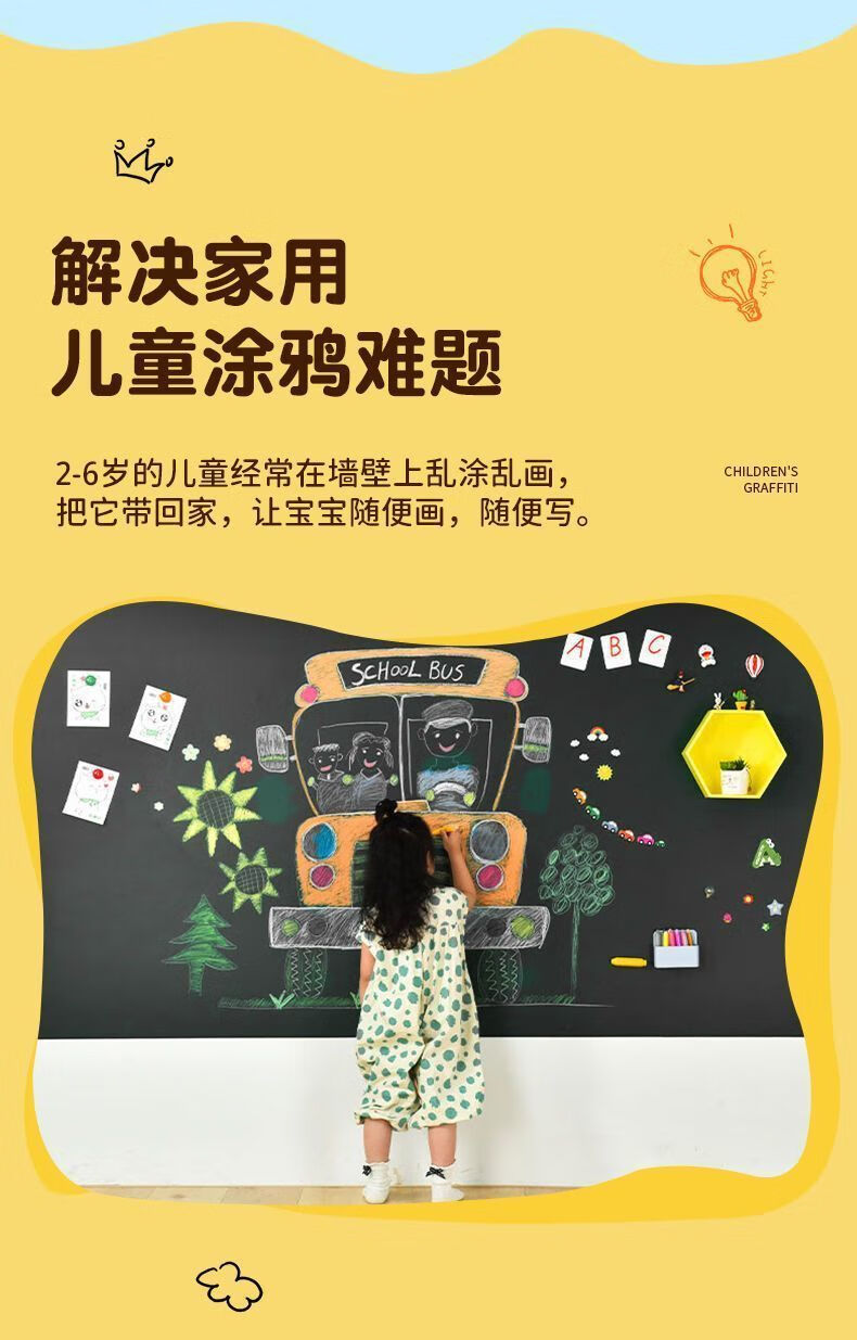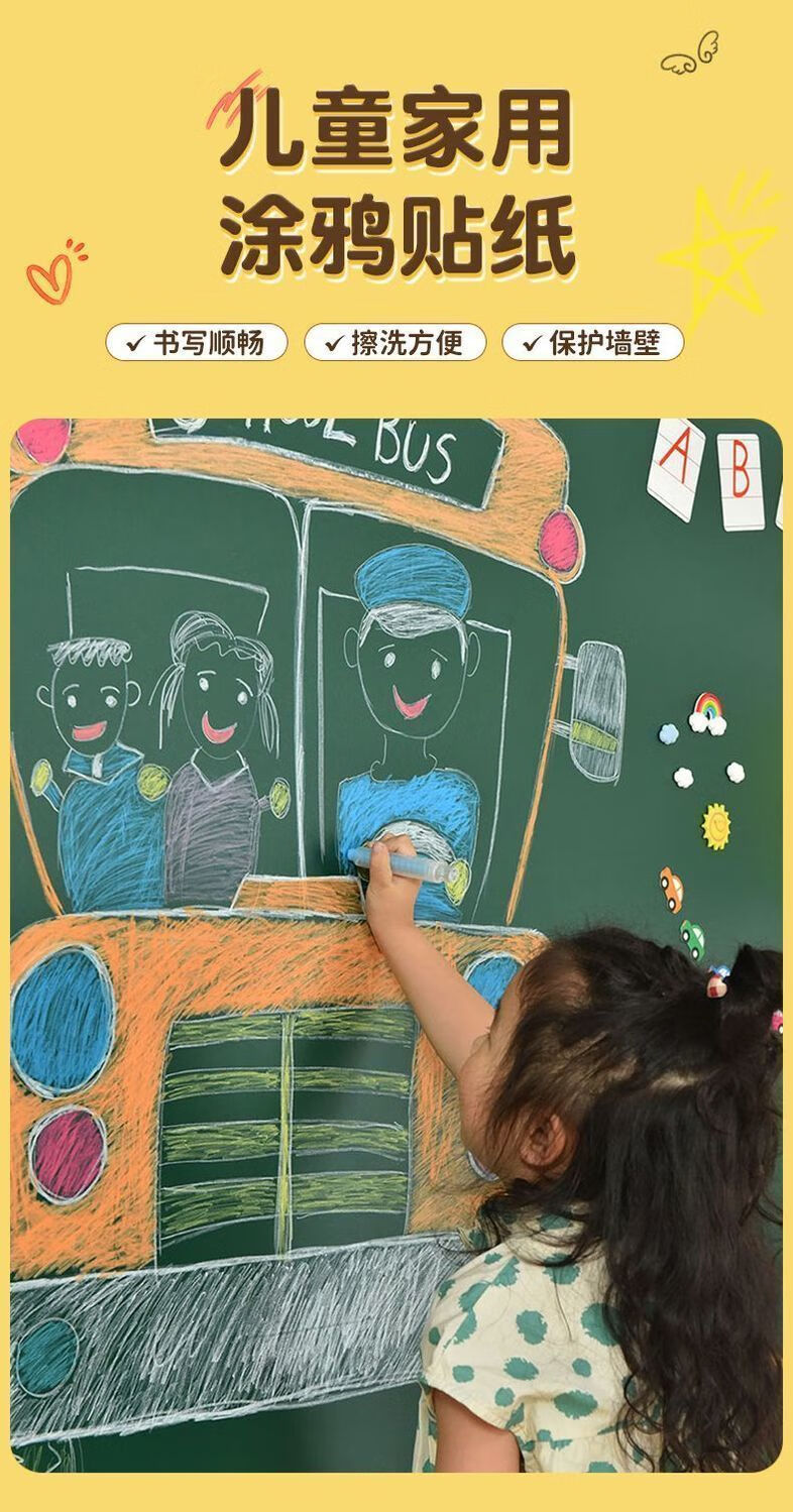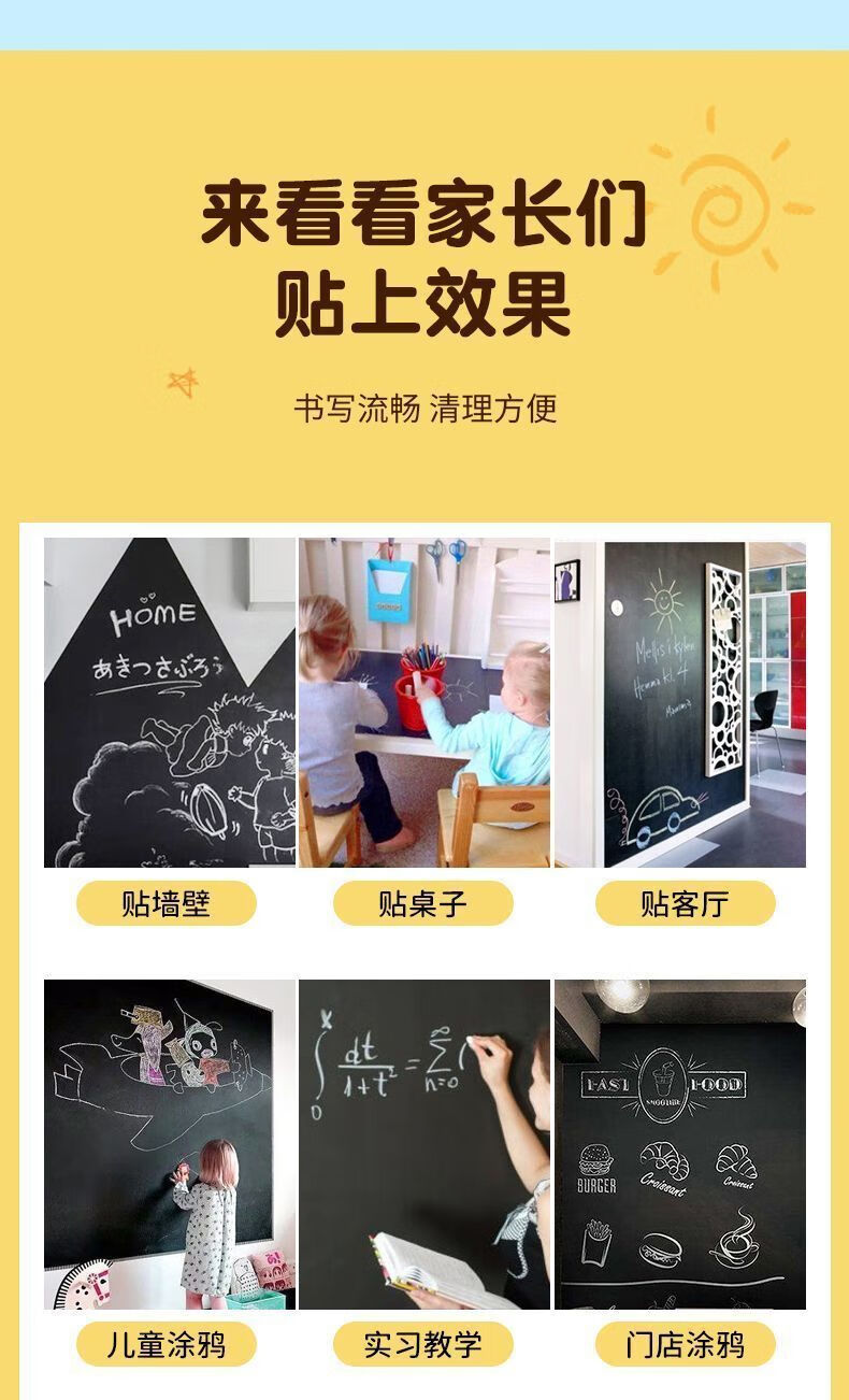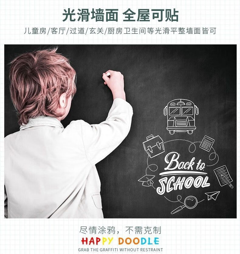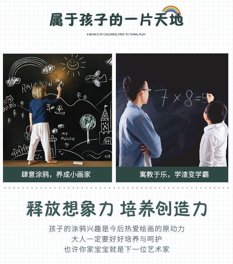 儿童黑板贴纸自粘墙贴家用家庭版教学加厚自粘带胶黑板墙贴粉笔可擦写 升级黑板【送粉笔+擦布+粉笔套】 90cm*150cm【一擦即净】