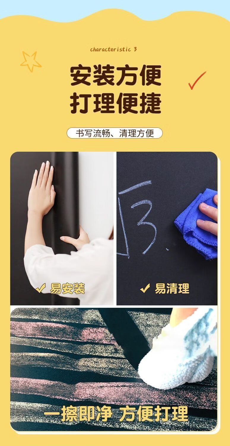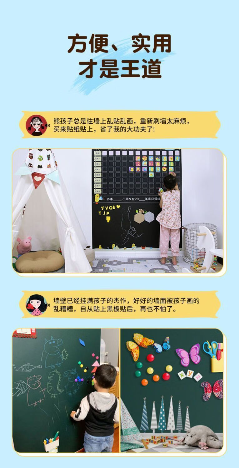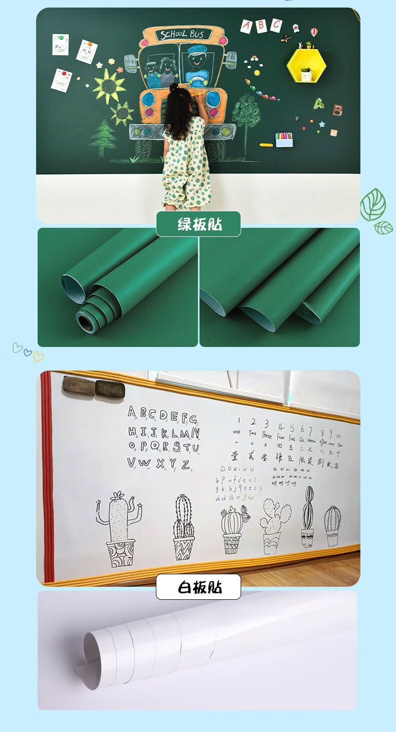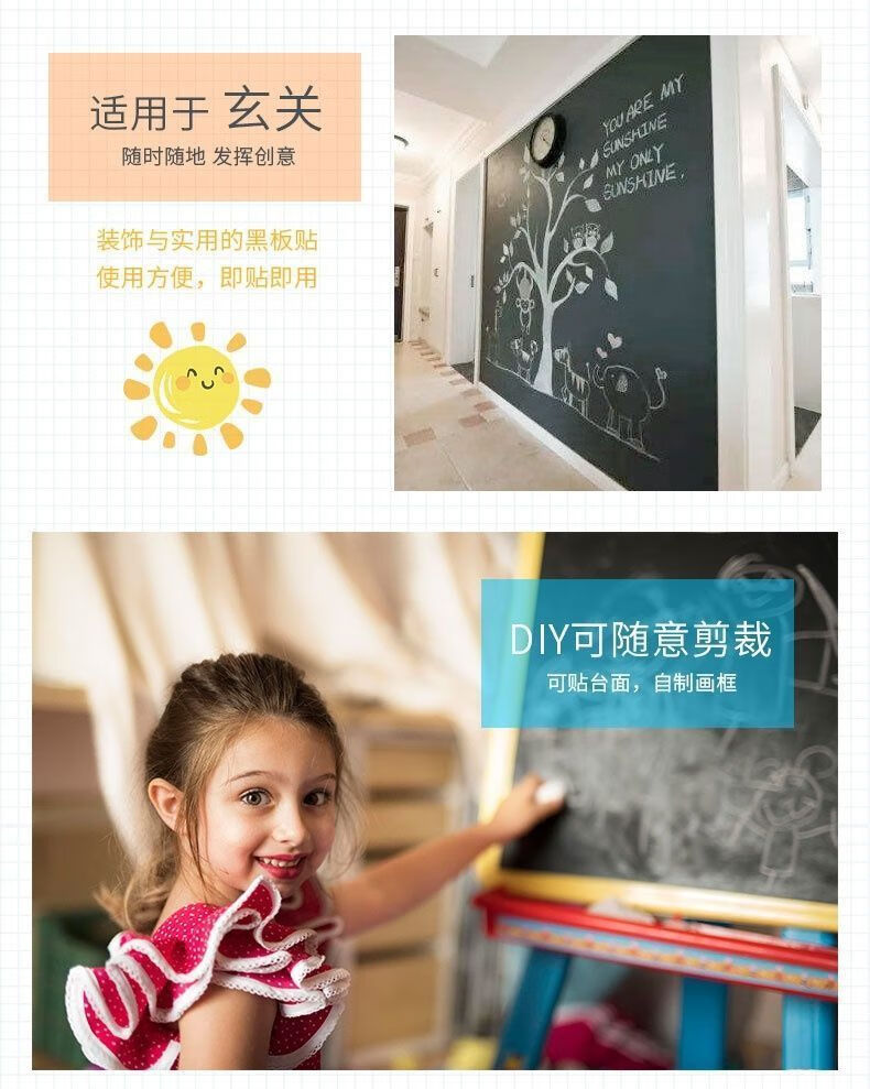 儿童黑板贴纸自粘墙贴家用家庭版教学加厚自粘带胶黑板墙贴粉笔可擦写 升级黑板【送粉笔+擦布+粉笔套】 90cm*150cm【一擦即净】