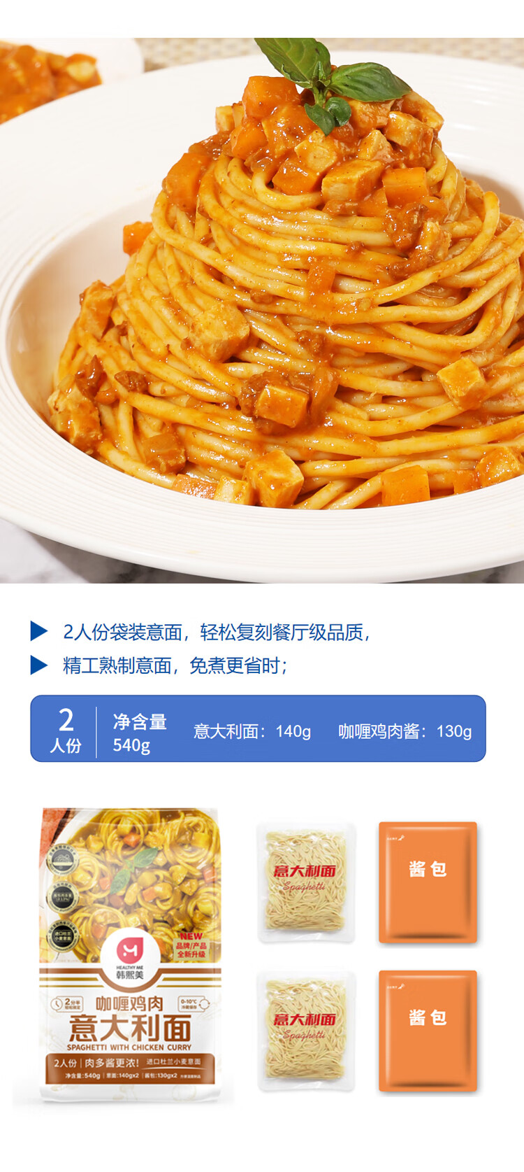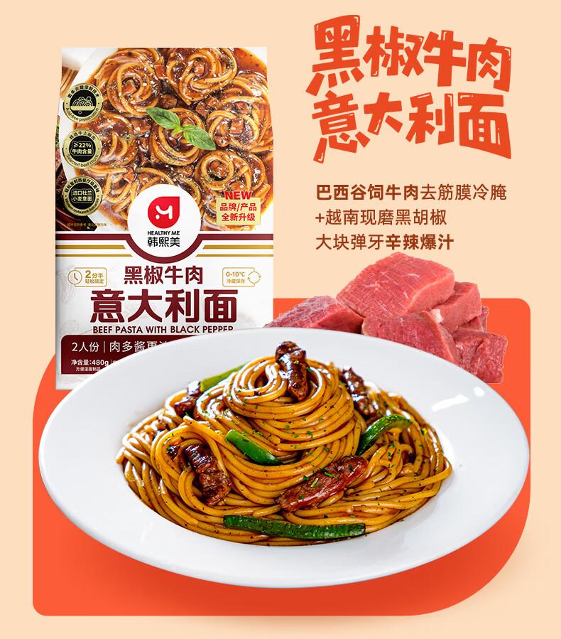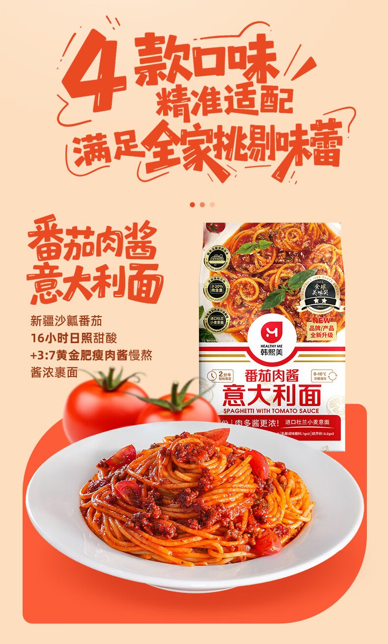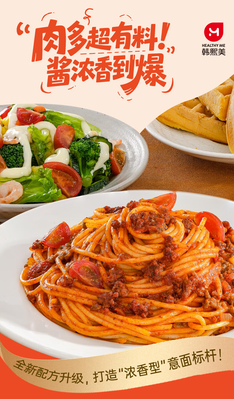 韩熙美意大利面番茄肉酱黑椒牛肉冷藏方便速食家庭早餐面条意面 番茄肉酱意大利面520g*3袋 6人份