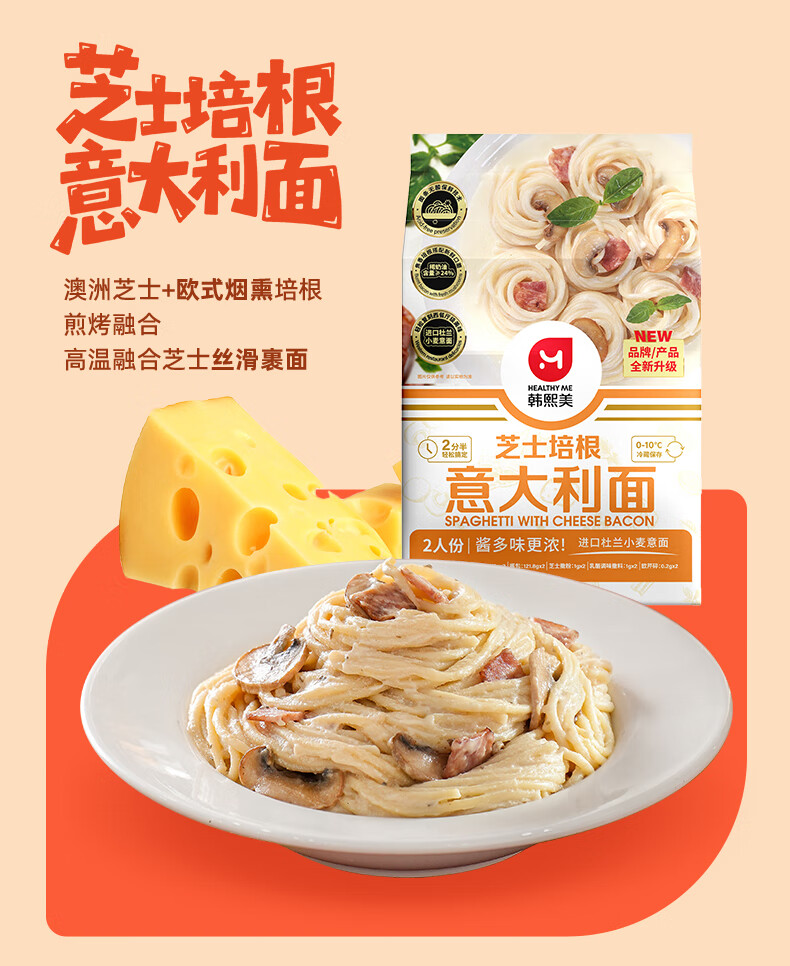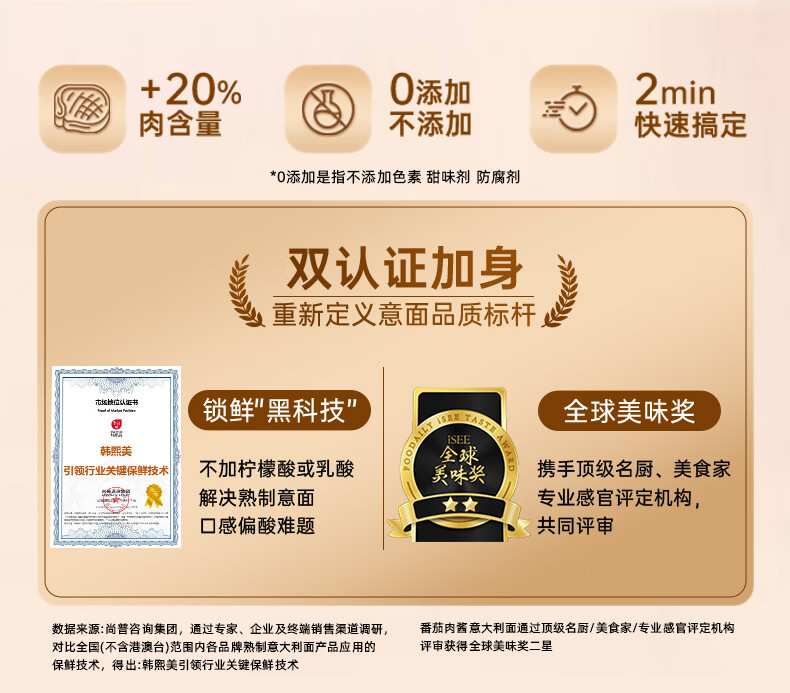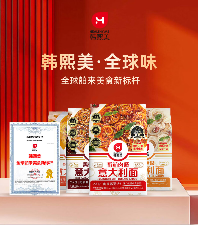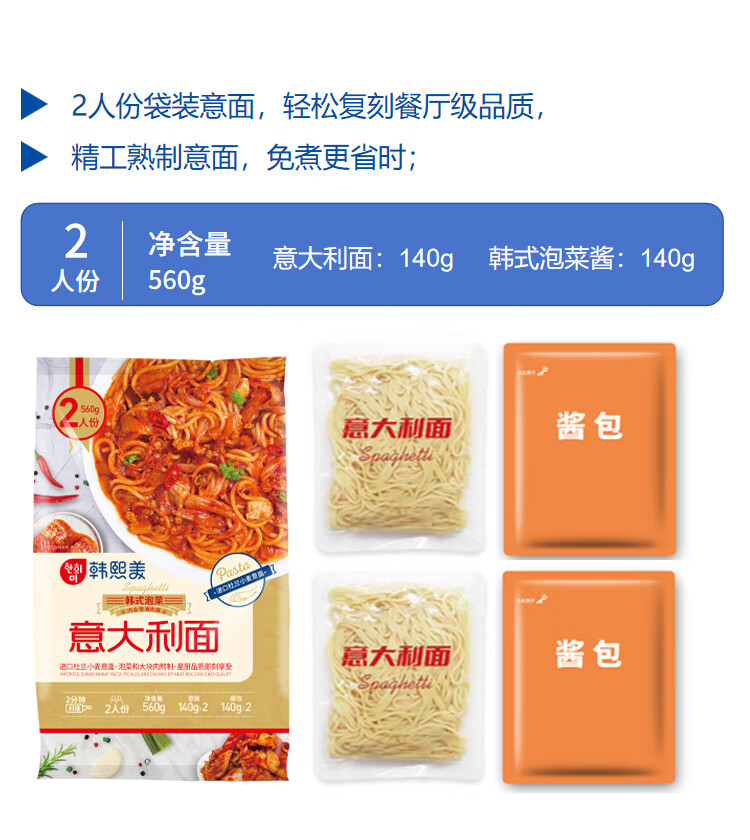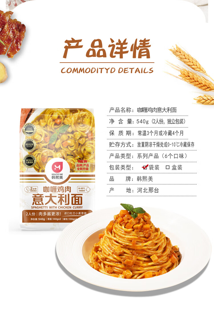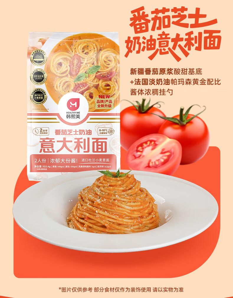 韩熙美意大利面番茄肉酱黑椒牛肉冷藏方便速食家庭早餐面条意面 番茄肉酱意大利面520g*3袋 6人份