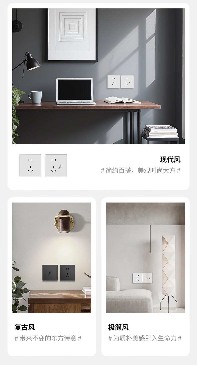 NVC雷士电工 明装插座 五孔插座 二三插N02白色 商品螺丝需自购