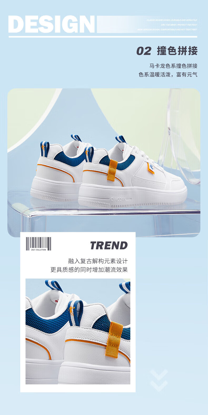 乔丹QIAODAN板鞋春季小白鞋经典百搭休闲鞋撞色运动鞋男鞋潮鞋 乔丹白【男款】 40.5