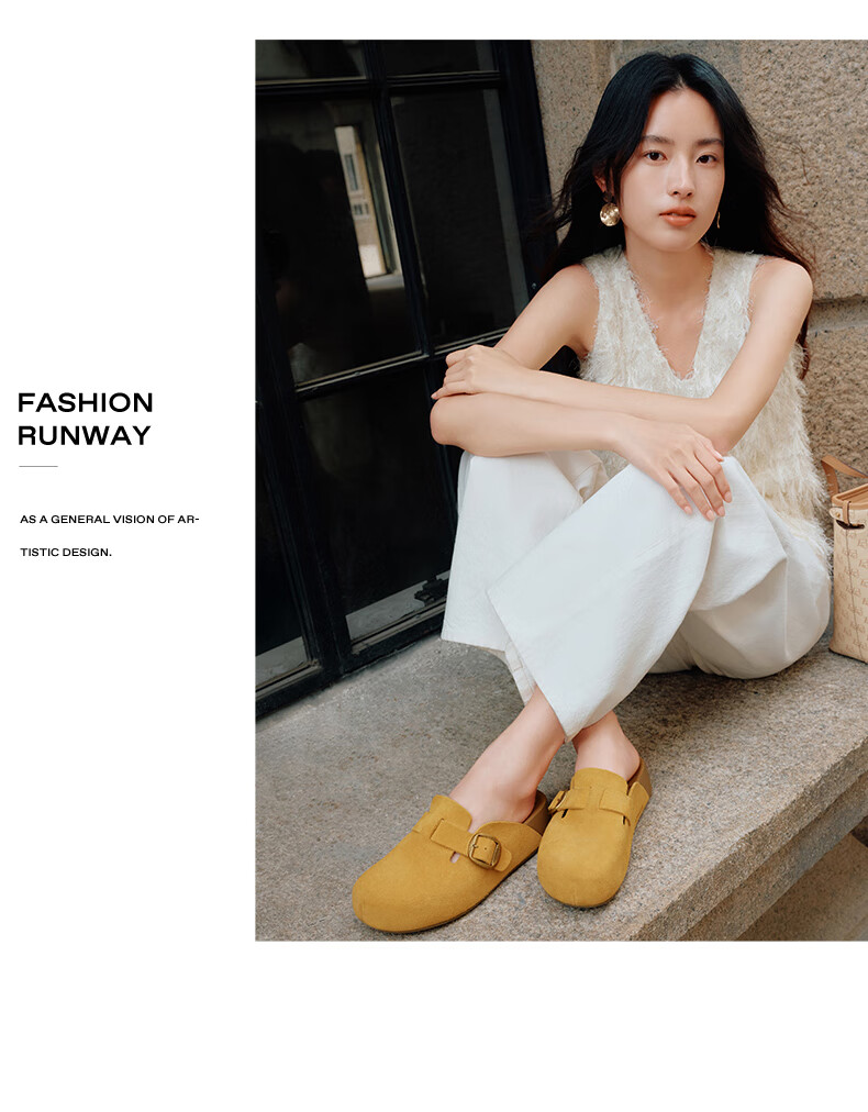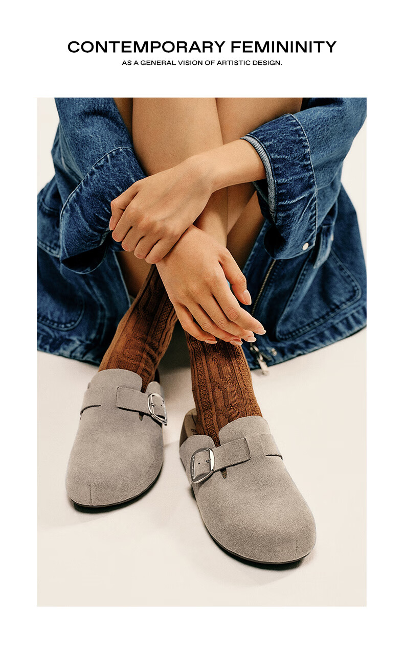 森达乐福鞋女鞋春秋新款商场同款通勤一脚蹬小皮鞋XCA01CA4 经典款-黑色 37