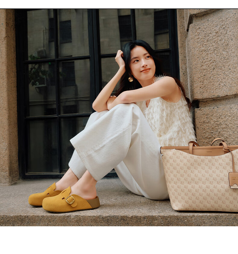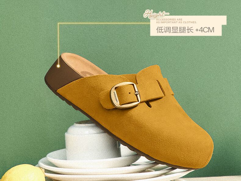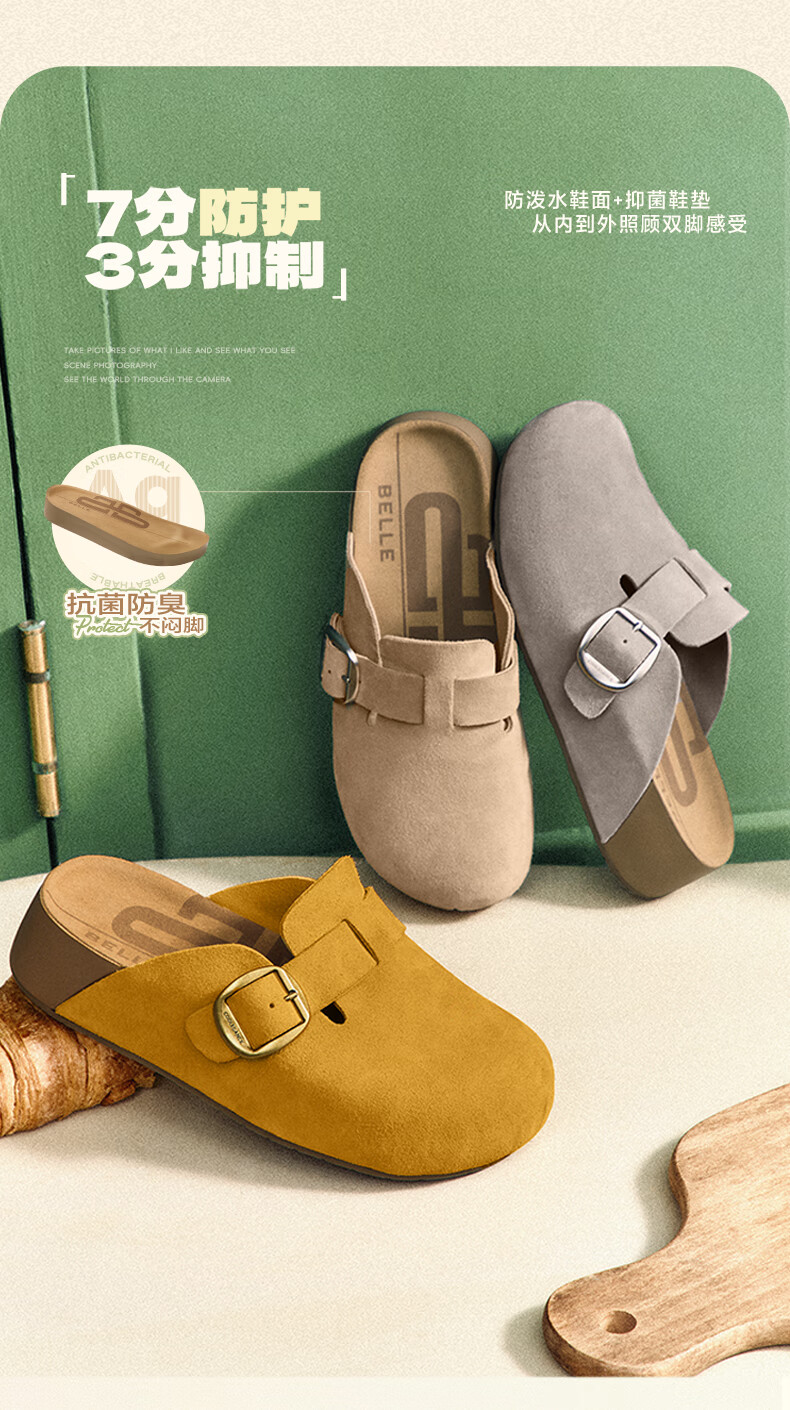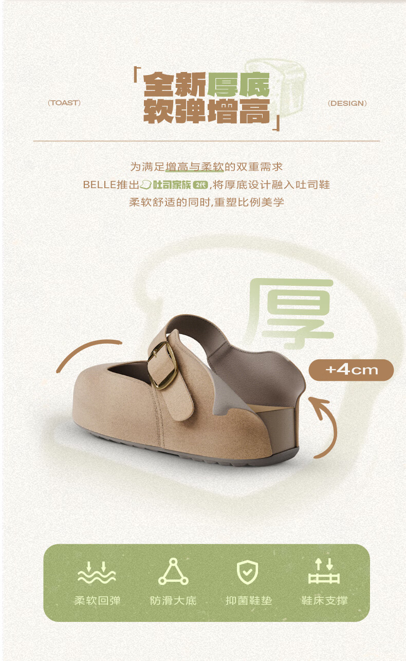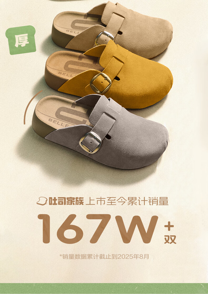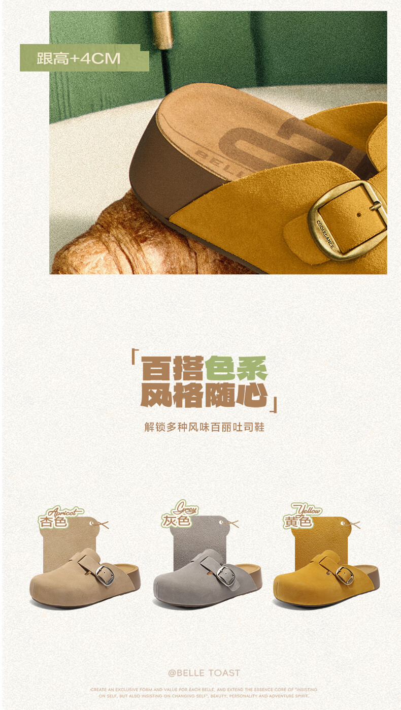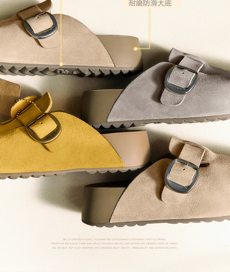百丽(Belle)张凌赫同款厚岛吐司2代勃肯拖鞋女商场款可外穿拖鞋D8R1DBH5预售 杏色 37