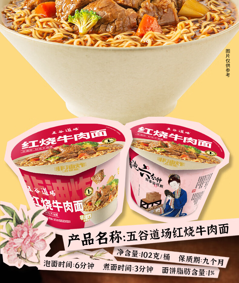 五谷道場 非油炸方便面泡面速食4口味12桶1293g 早餐速食