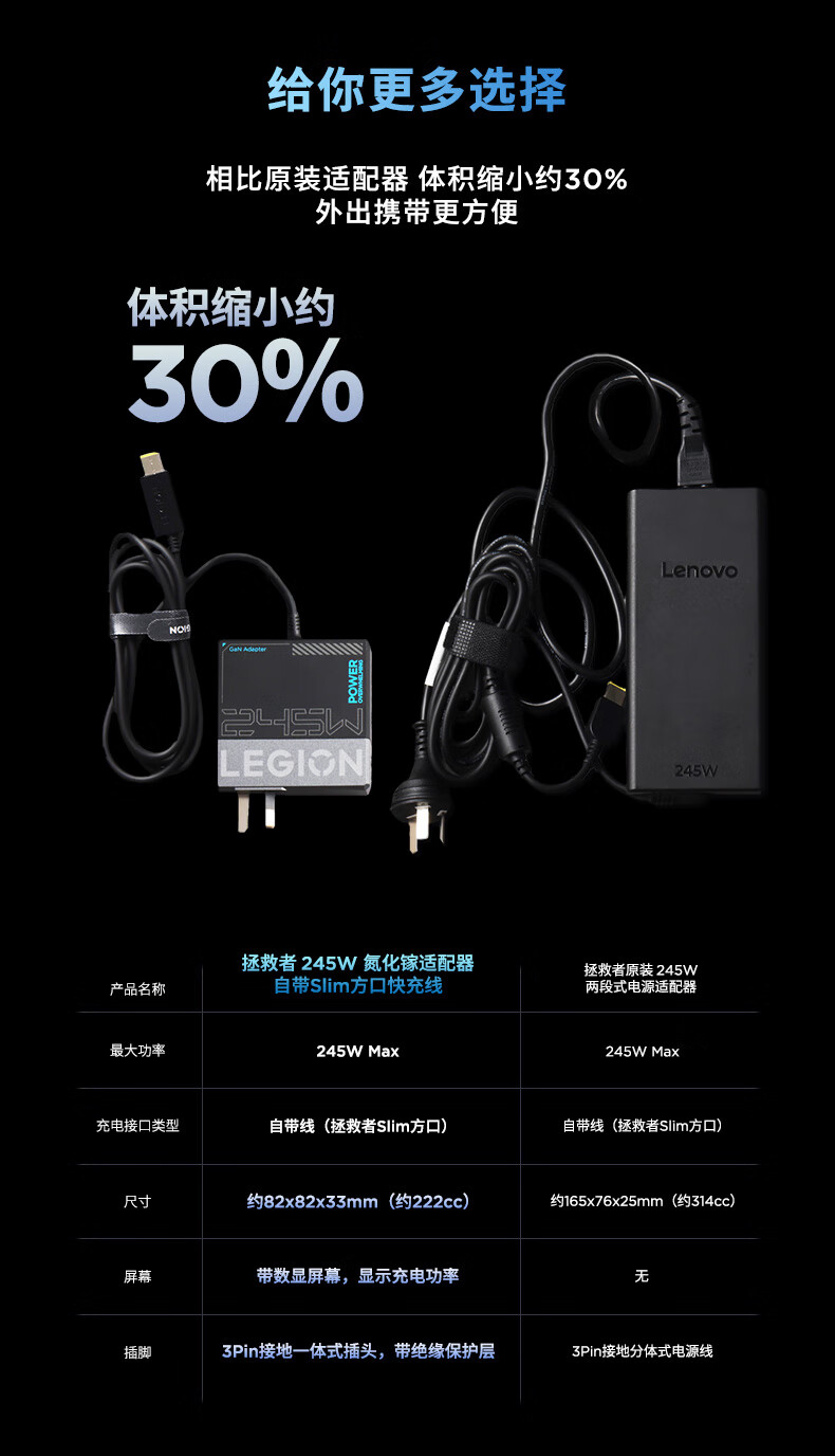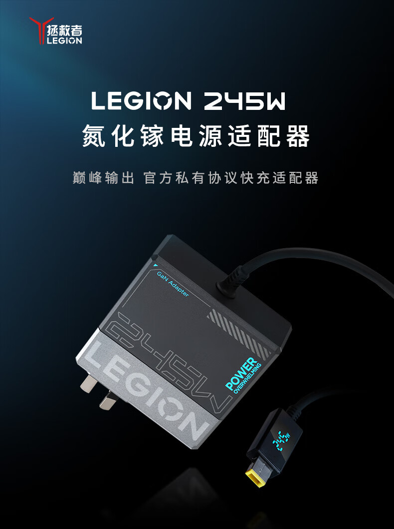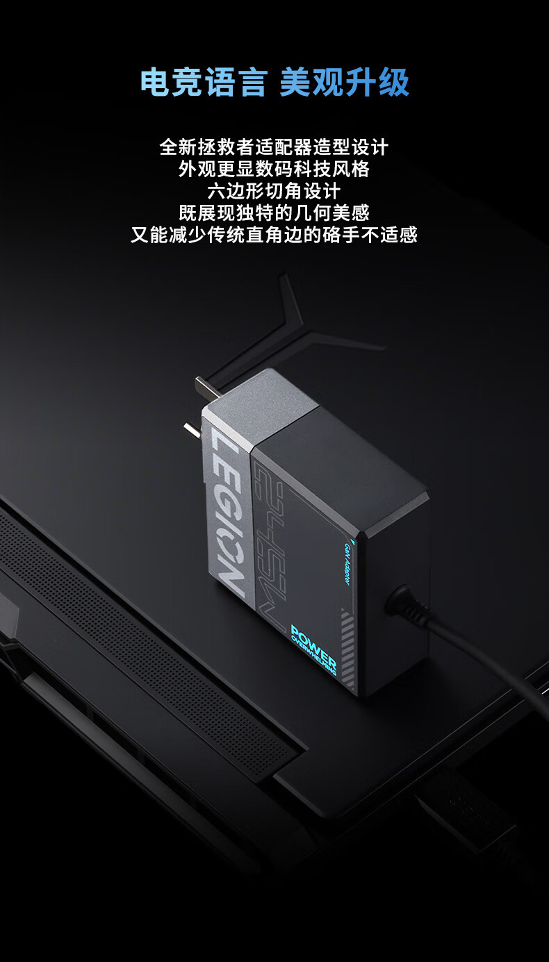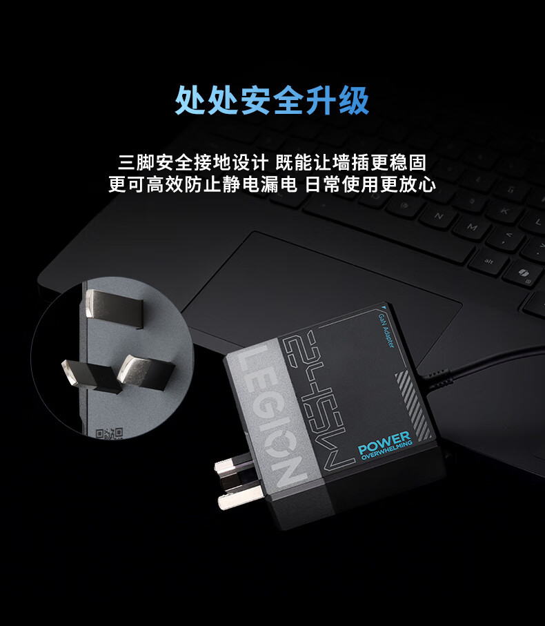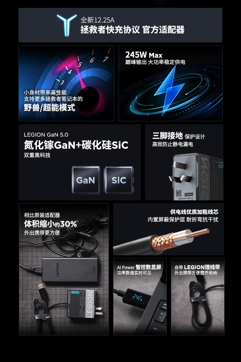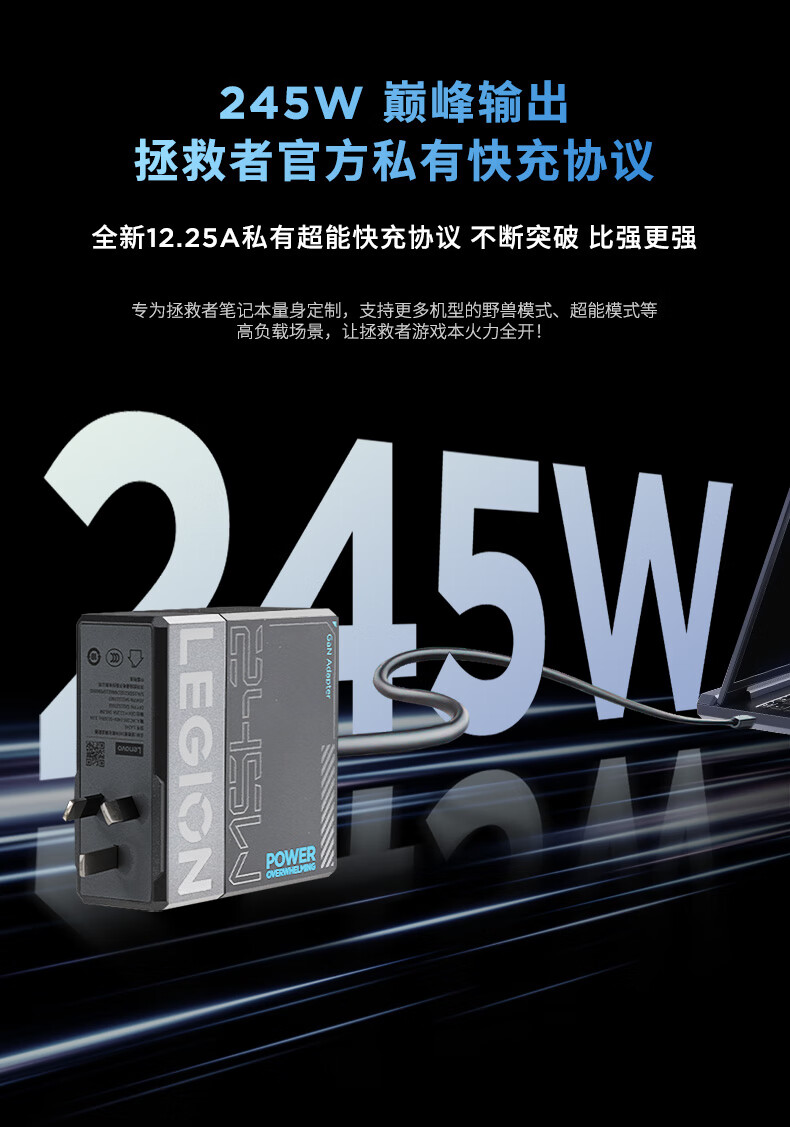 联想(Lenovo)拯救者245w氮化镓充电器Slim方口 三脚接地12.25A 拯救者快充协议官方适配器 适用拯救者Thinkbook