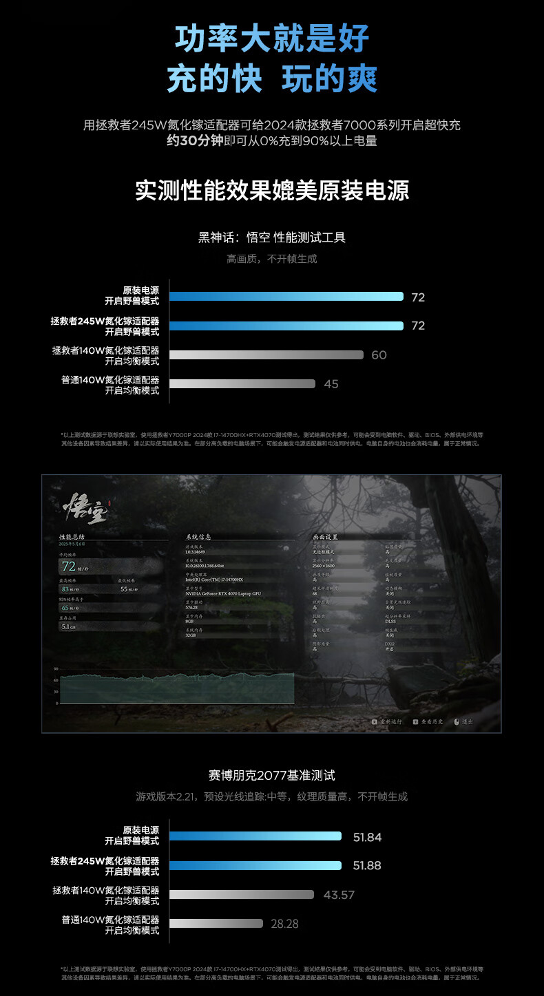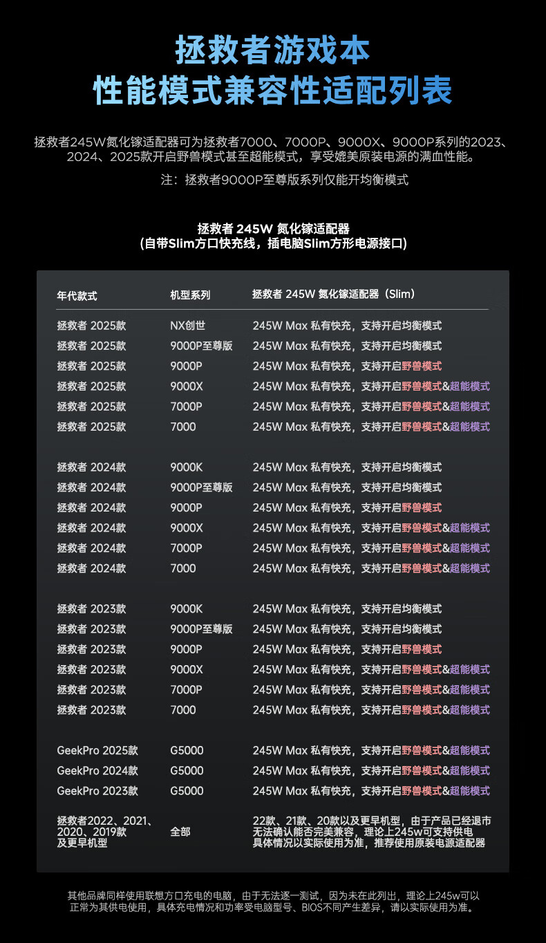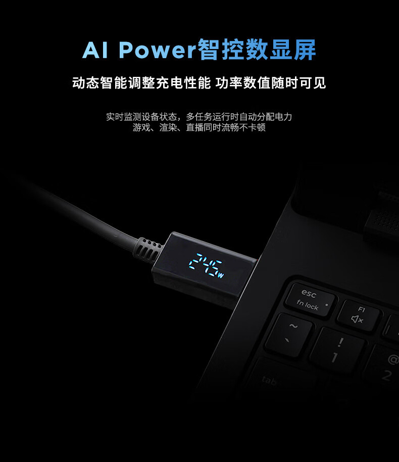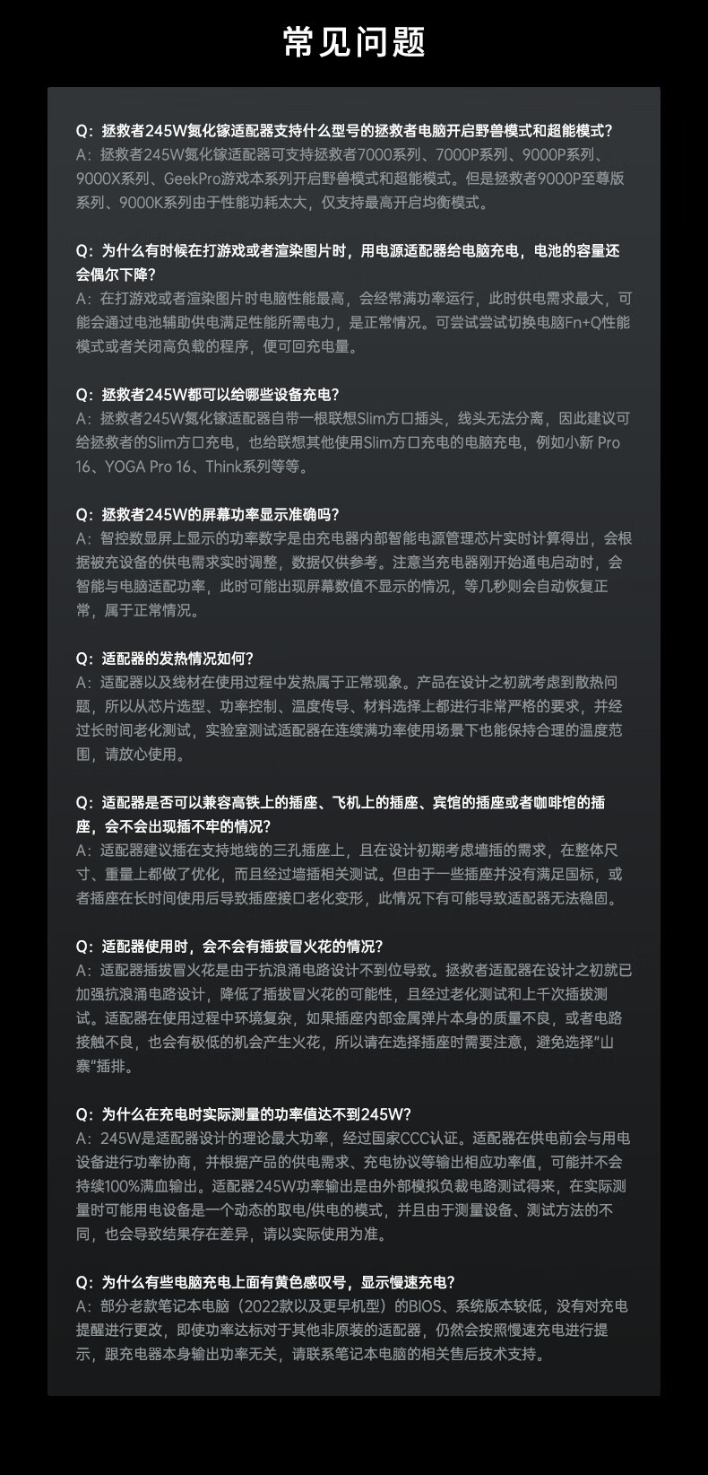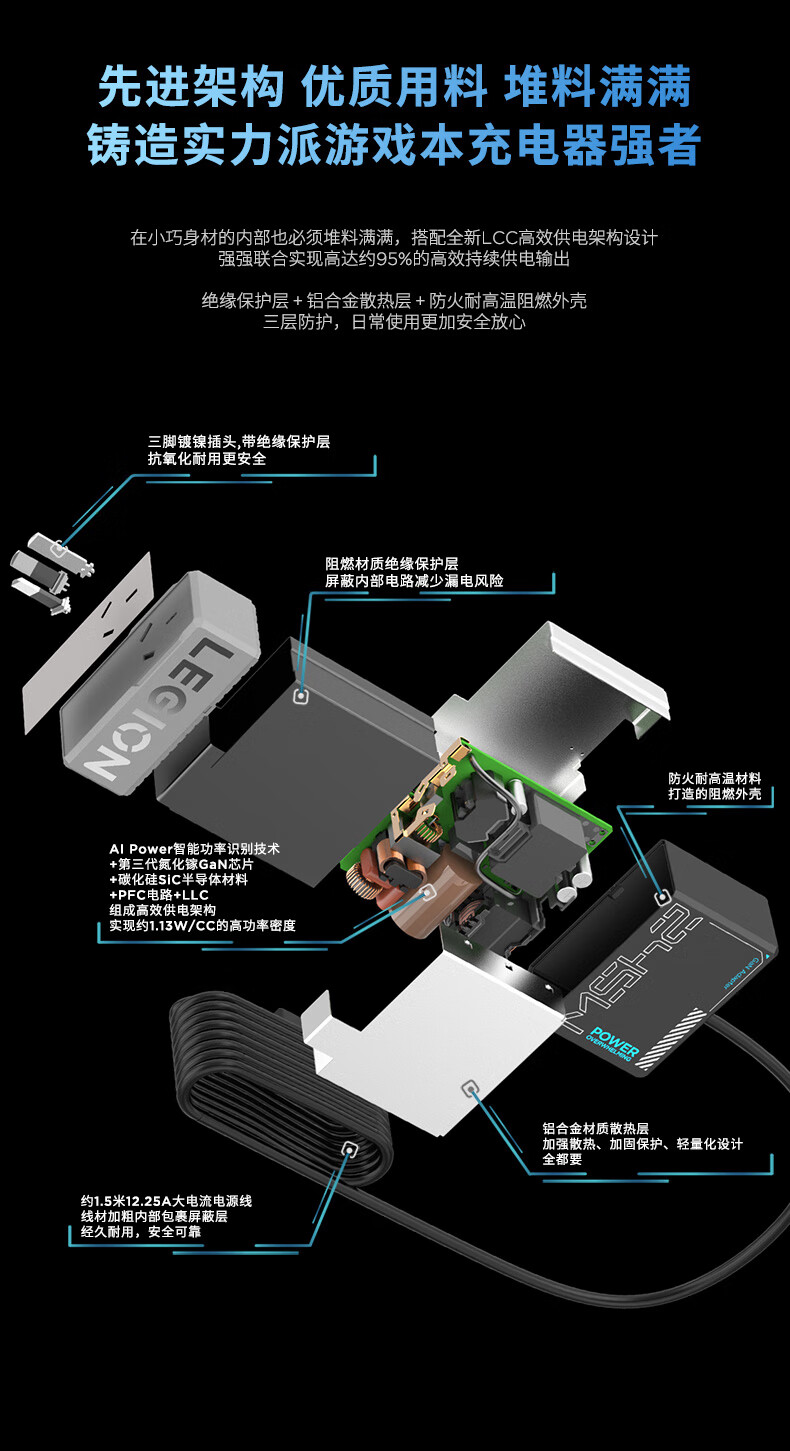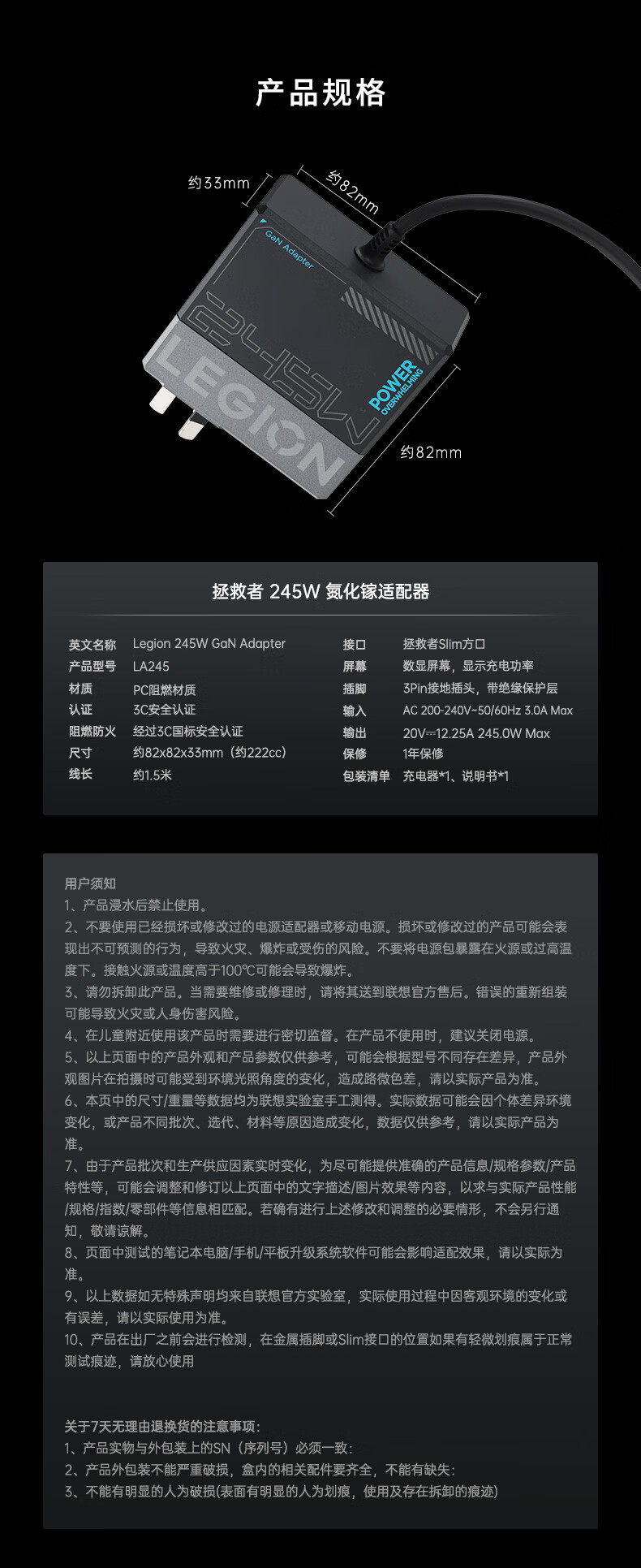 联想(Lenovo)拯救者245w氮化镓充电器Slim方口 三脚接地12.25A 拯救者快充协议官方适配器 适用拯救者Thinkbook