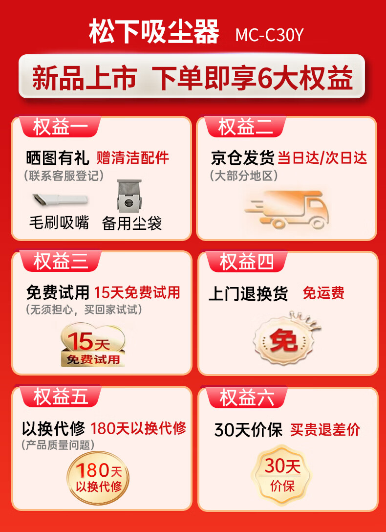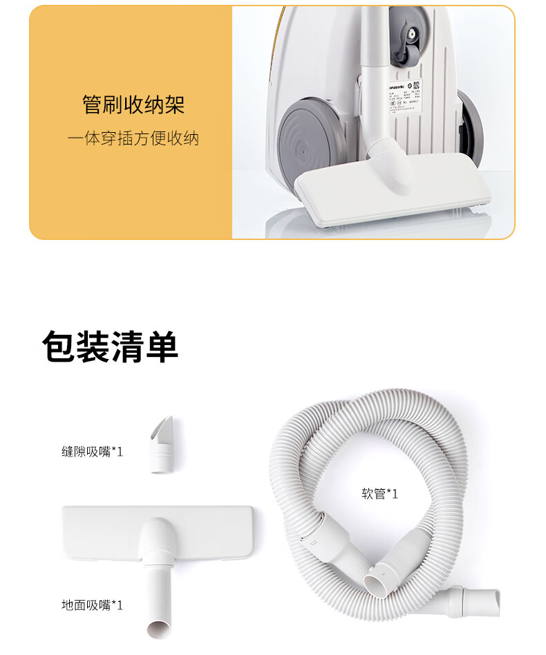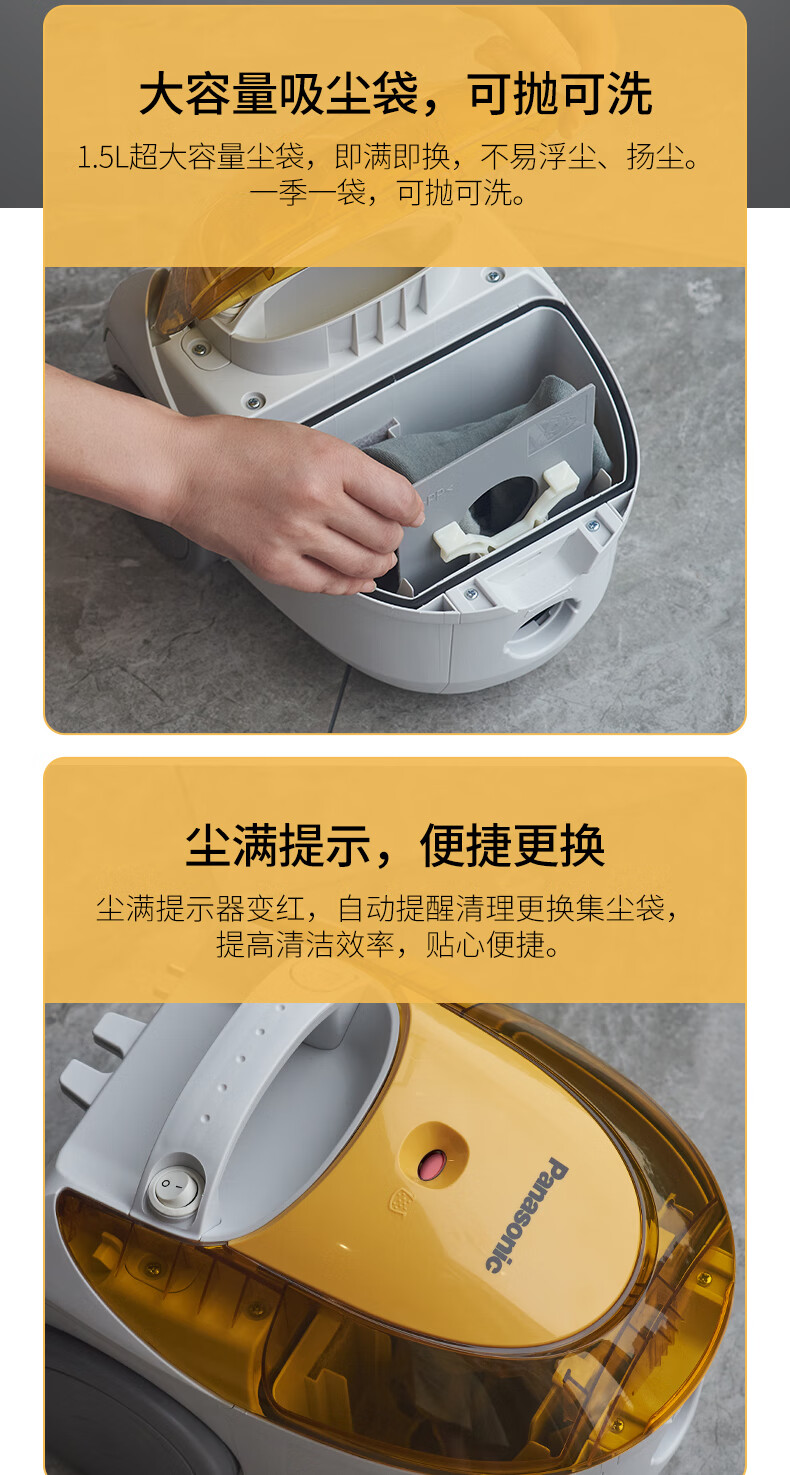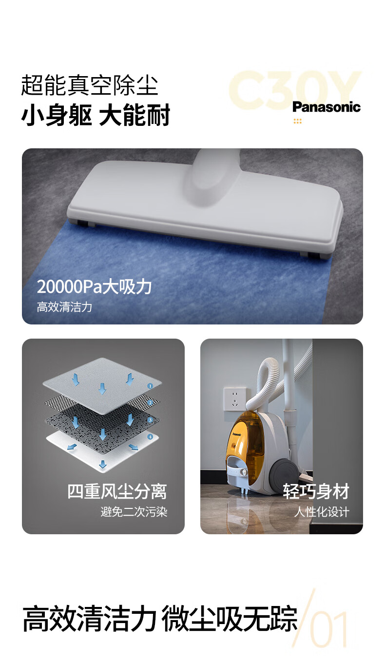 松下(Panasonic)【国家补贴】吸尘器家用小型有线卧式强力大吸力手持大功率多功能床上地毯MC-C30Y