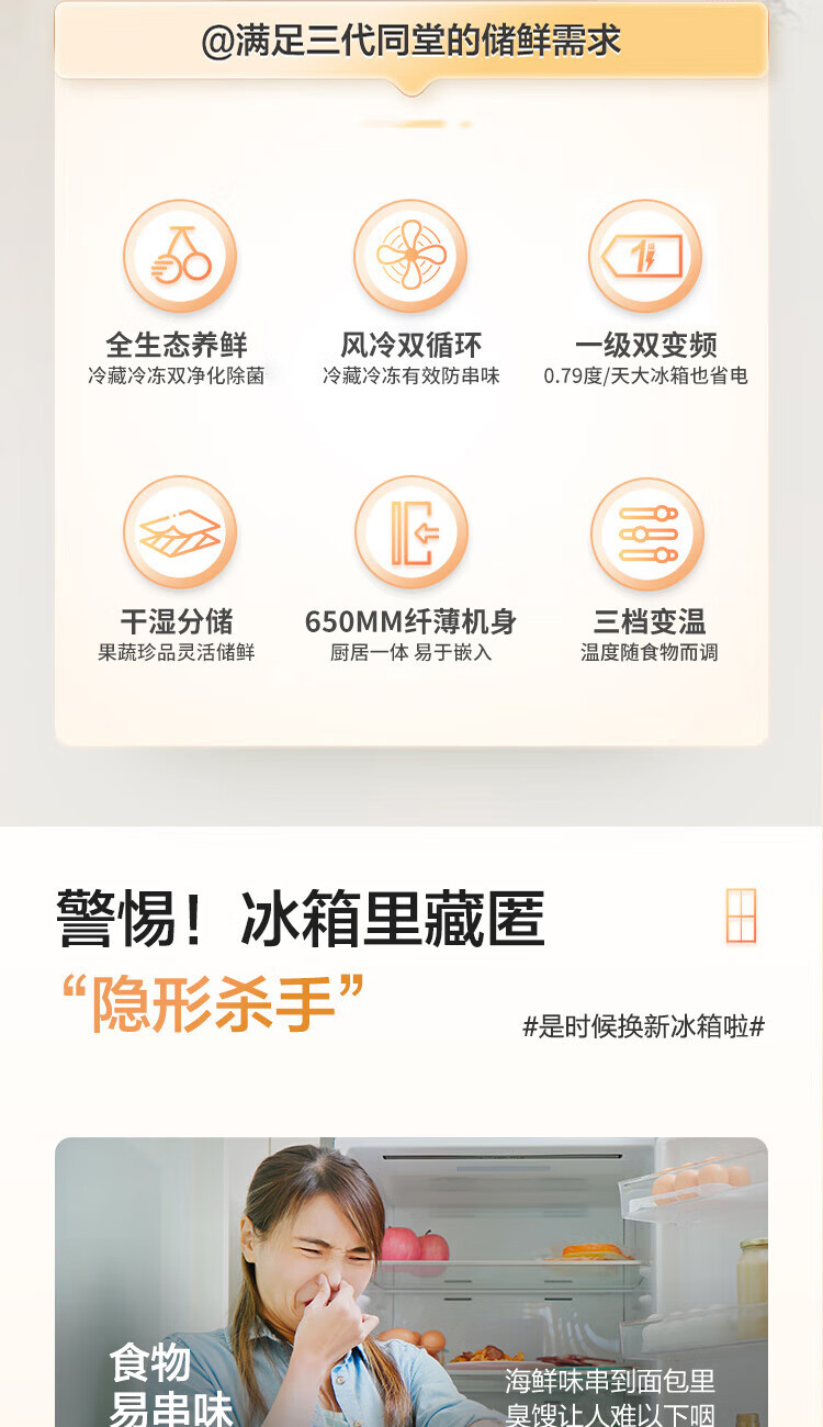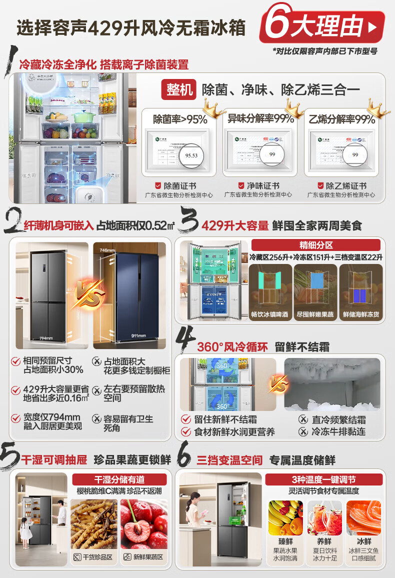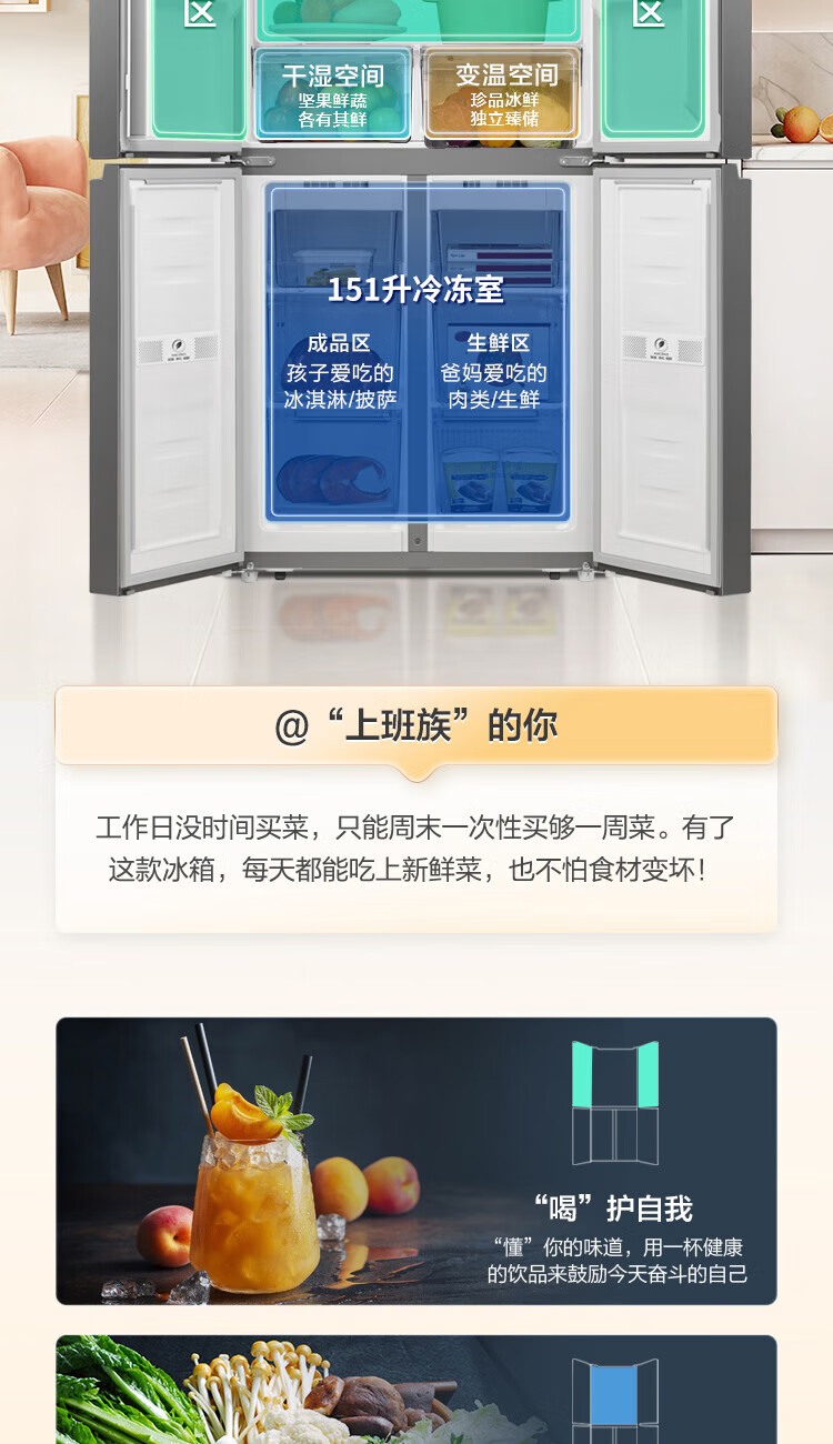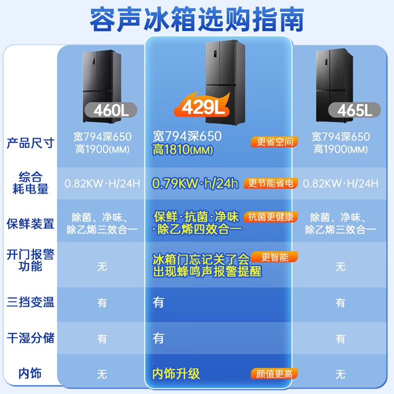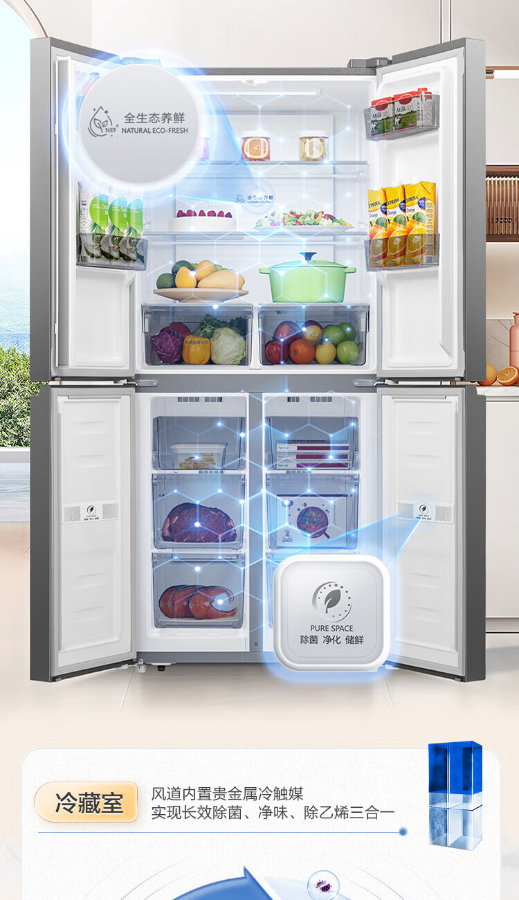 容声429升十字双开四开门家用电冰箱双循环一级能效国家补贴双变频风冷无霜节能省电薄大容量以旧换新 风冷无霜双循环 BCD-429WD12FP