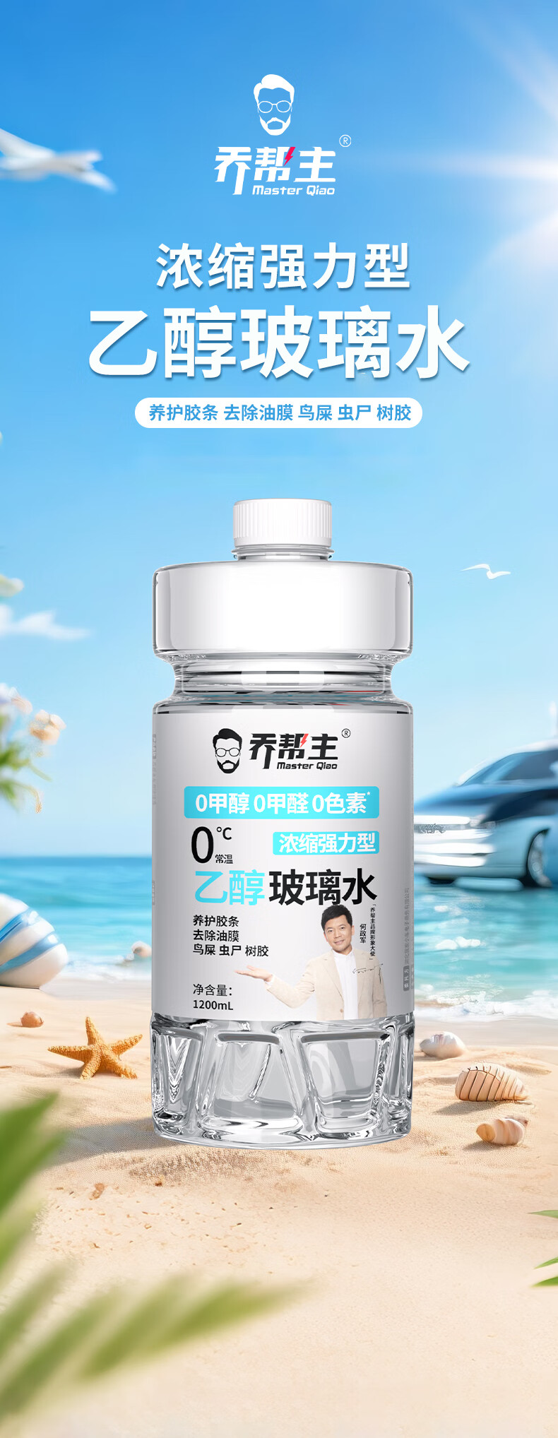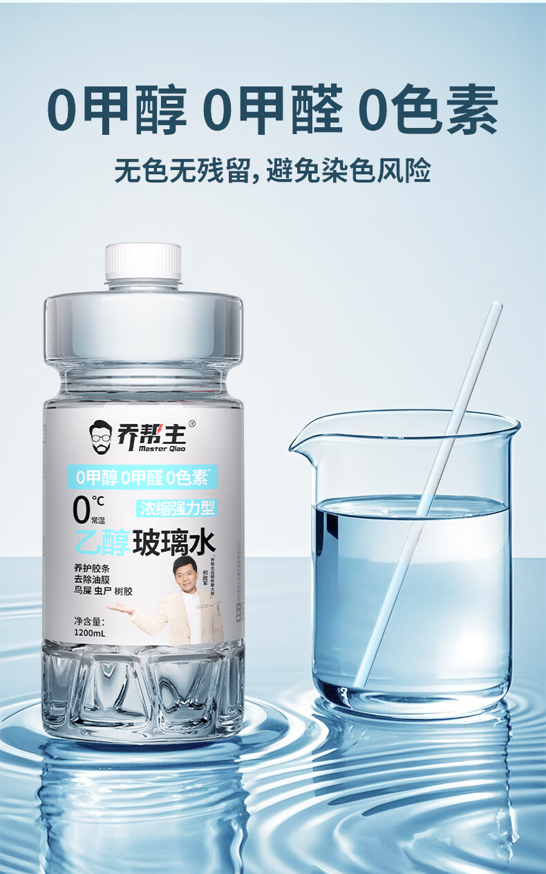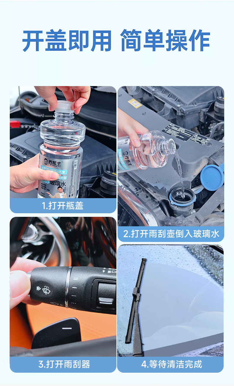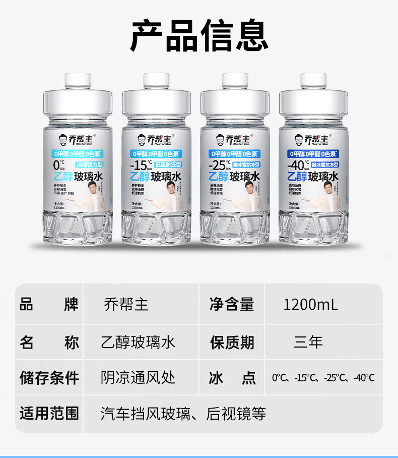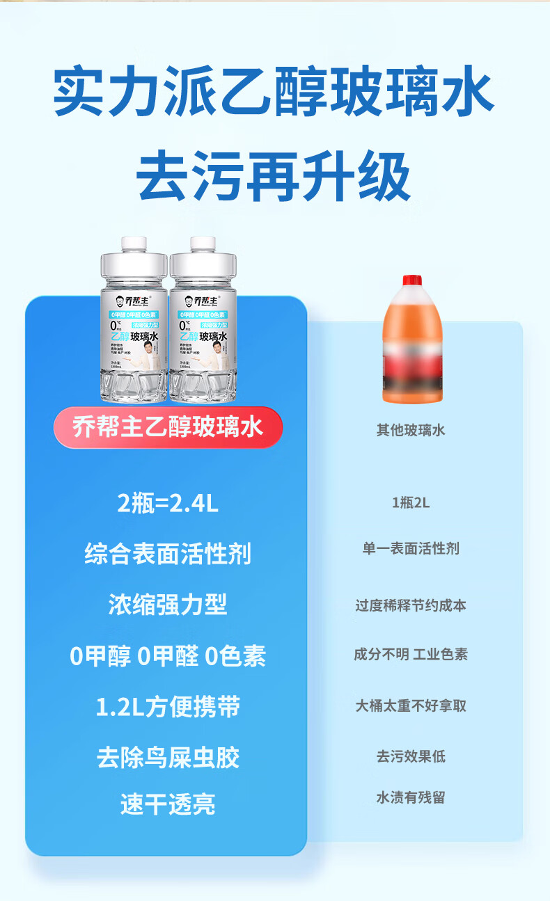 乔帮主汽车浓缩乙醇玻璃水无色素0甲醇强力去污除油膜四季通用雨刮水 0甲醇0甲醛0色素【4桶装】