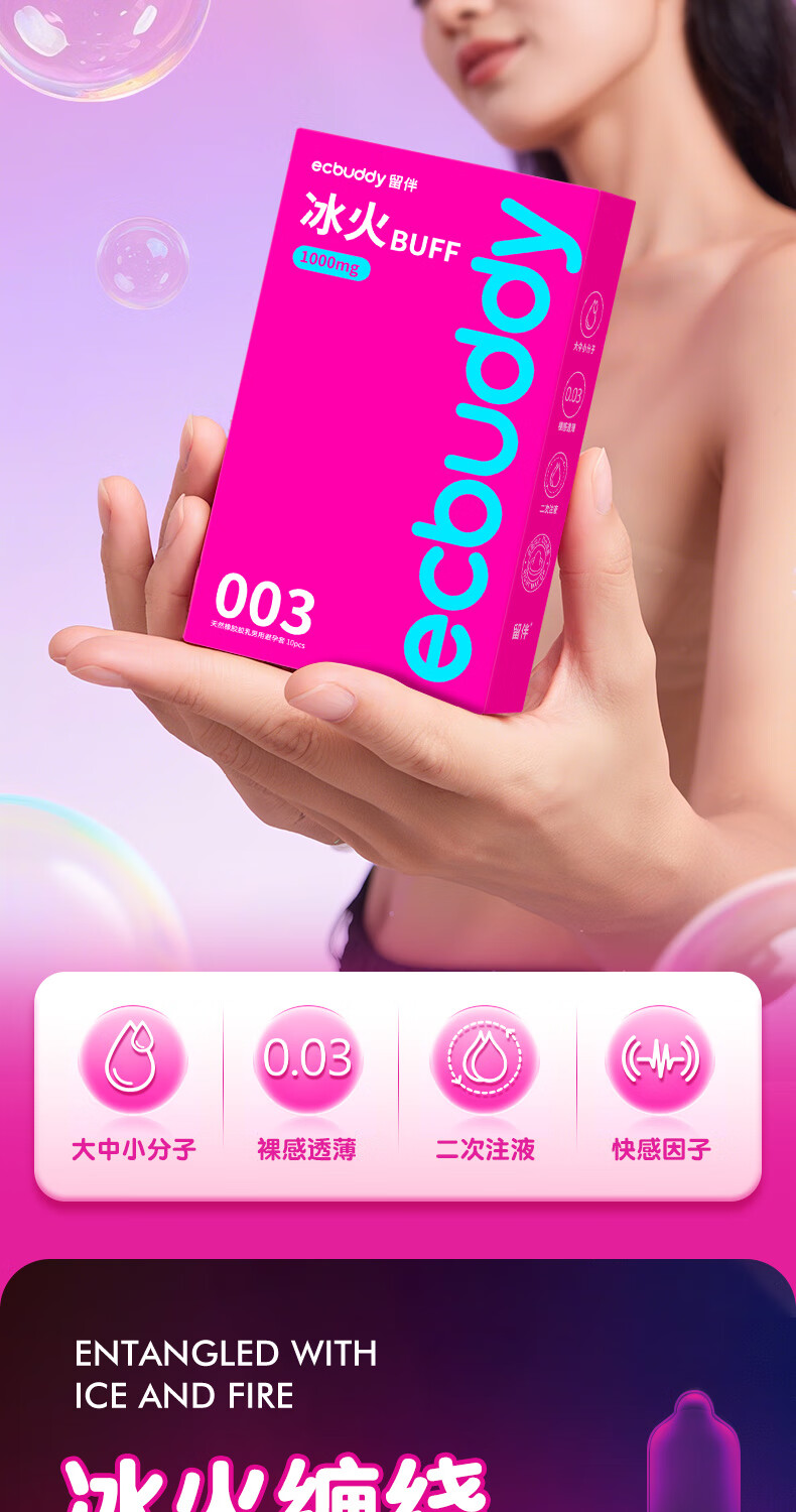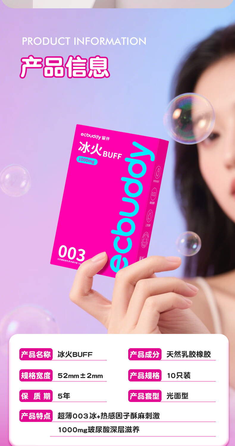 留伴玻尿酸避孕套安全套超薄003冰火交融高潮成人计生情趣用品 专治性冷淡【11只】冰火10只+赠1只