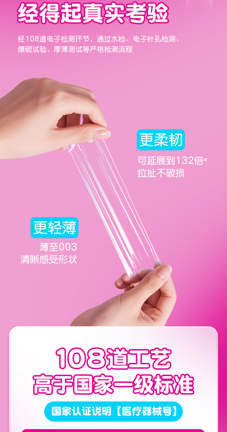 名流避孕套大号55mm男专用超薄003裸感XL安全套玻尿酸裸入情趣套套byt MO超薄003玻尿酸加大号10只