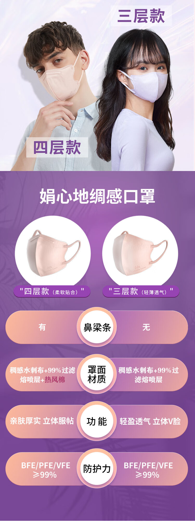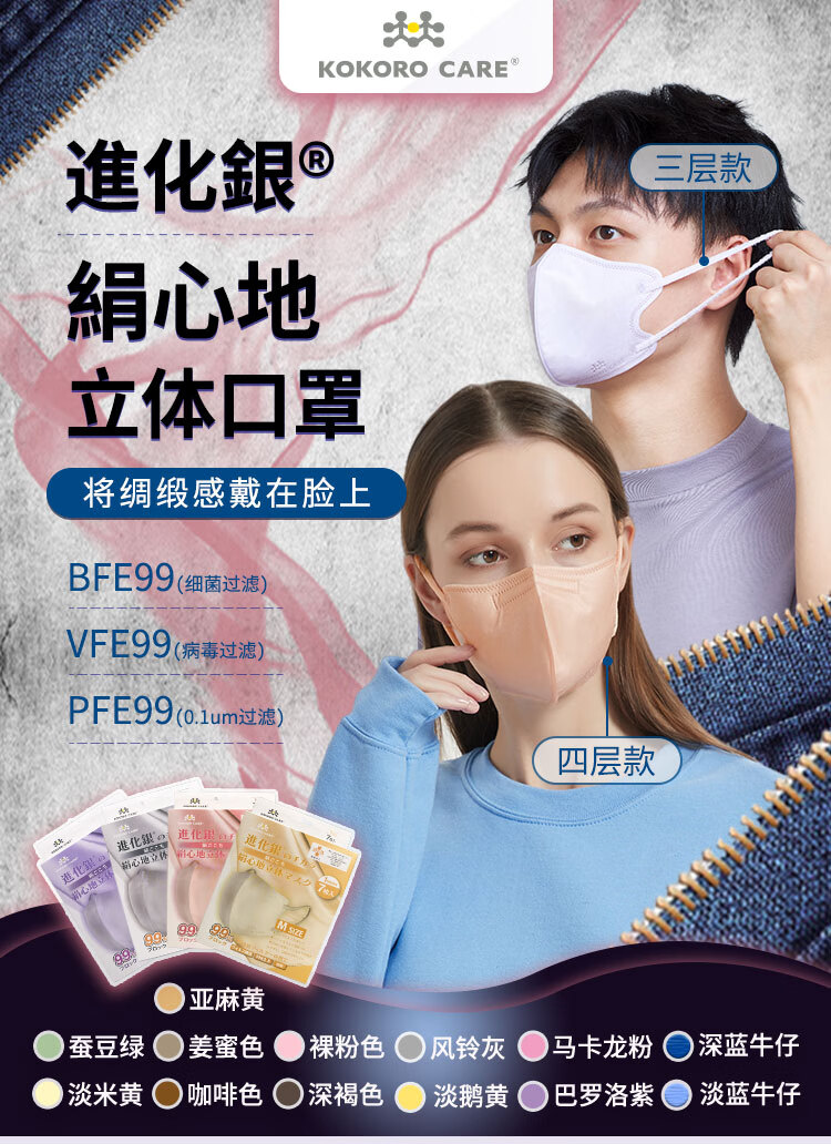 進化银娟心地3D立体一次性口罩冬季加厚四层绸感亮色熔喷独立包装显脸小 三层款-淡蓝牛仔(7枚入*4)