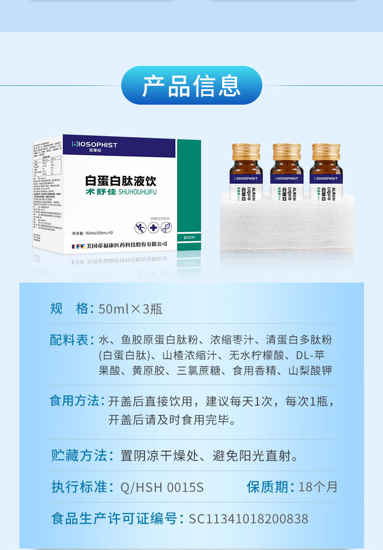 百草纪白蛋白肽口服液老年人营养品放化疗及术后恢复补品